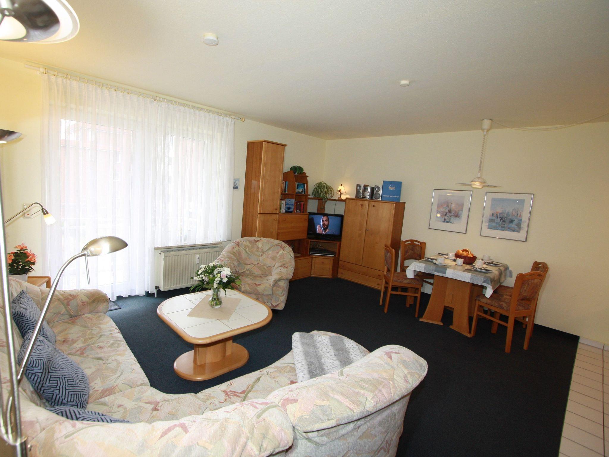 • Geräumiges Wohn-/Esszimmer mit Flachbild-TV, DVD-Rekorder und HiFi-Stereoanlage mit CD, USB- und SD-Card-Anschluss