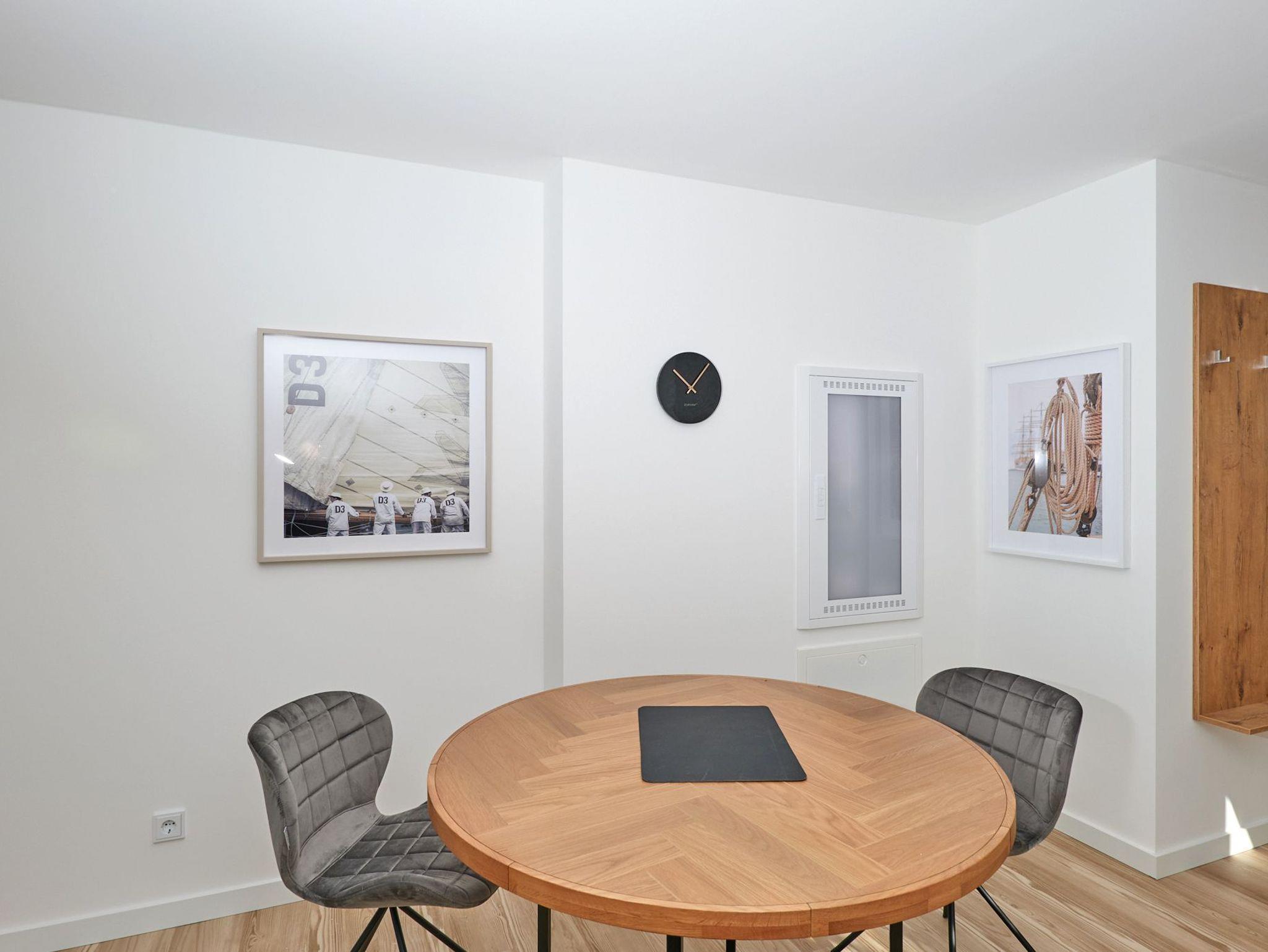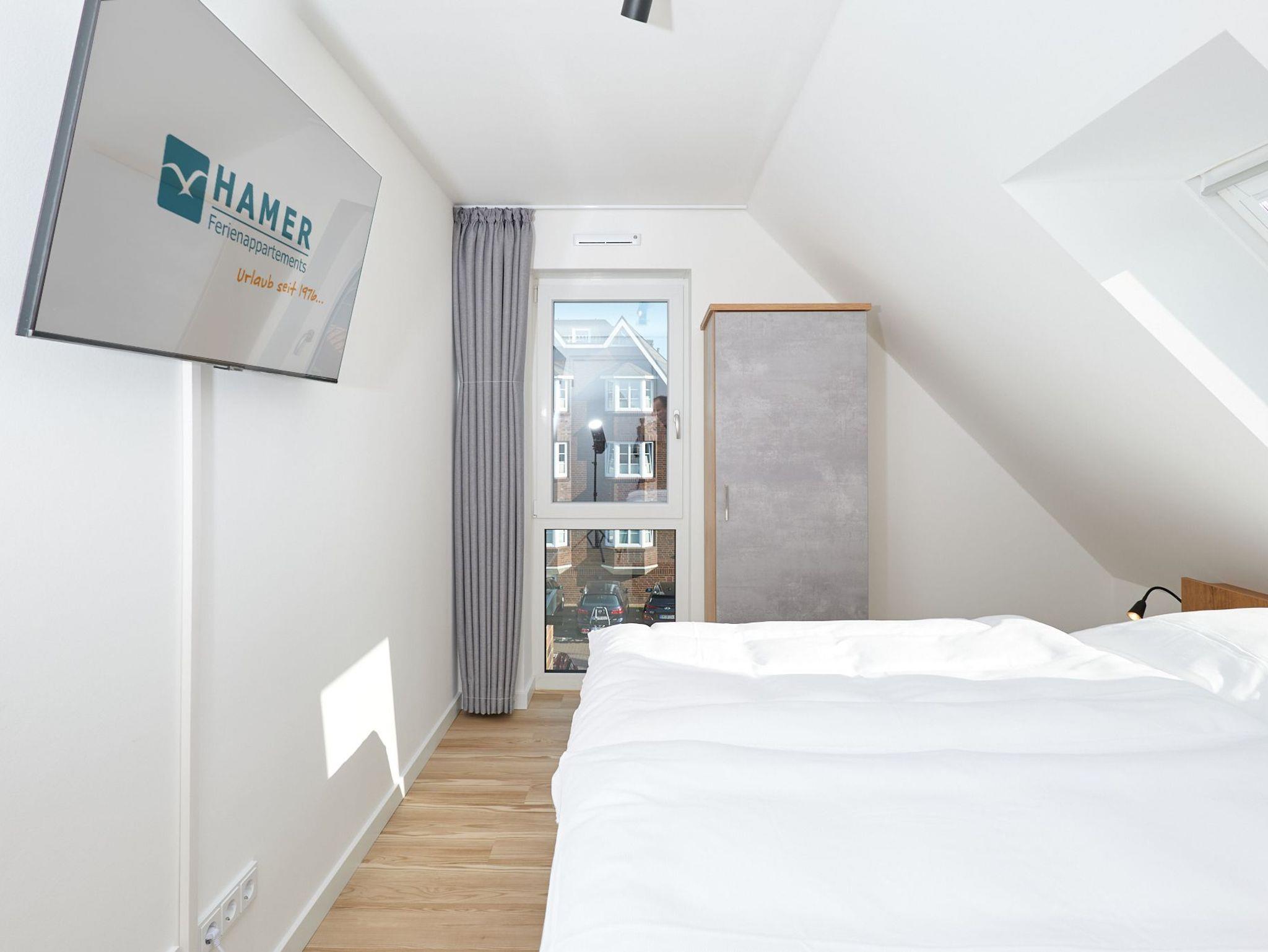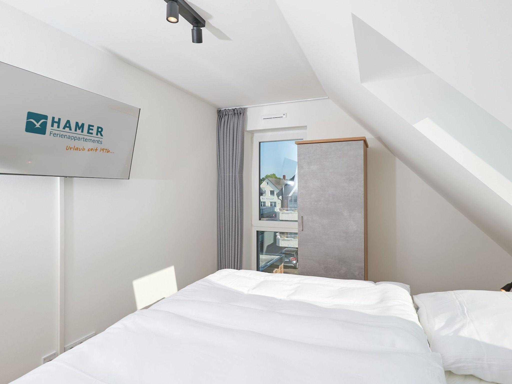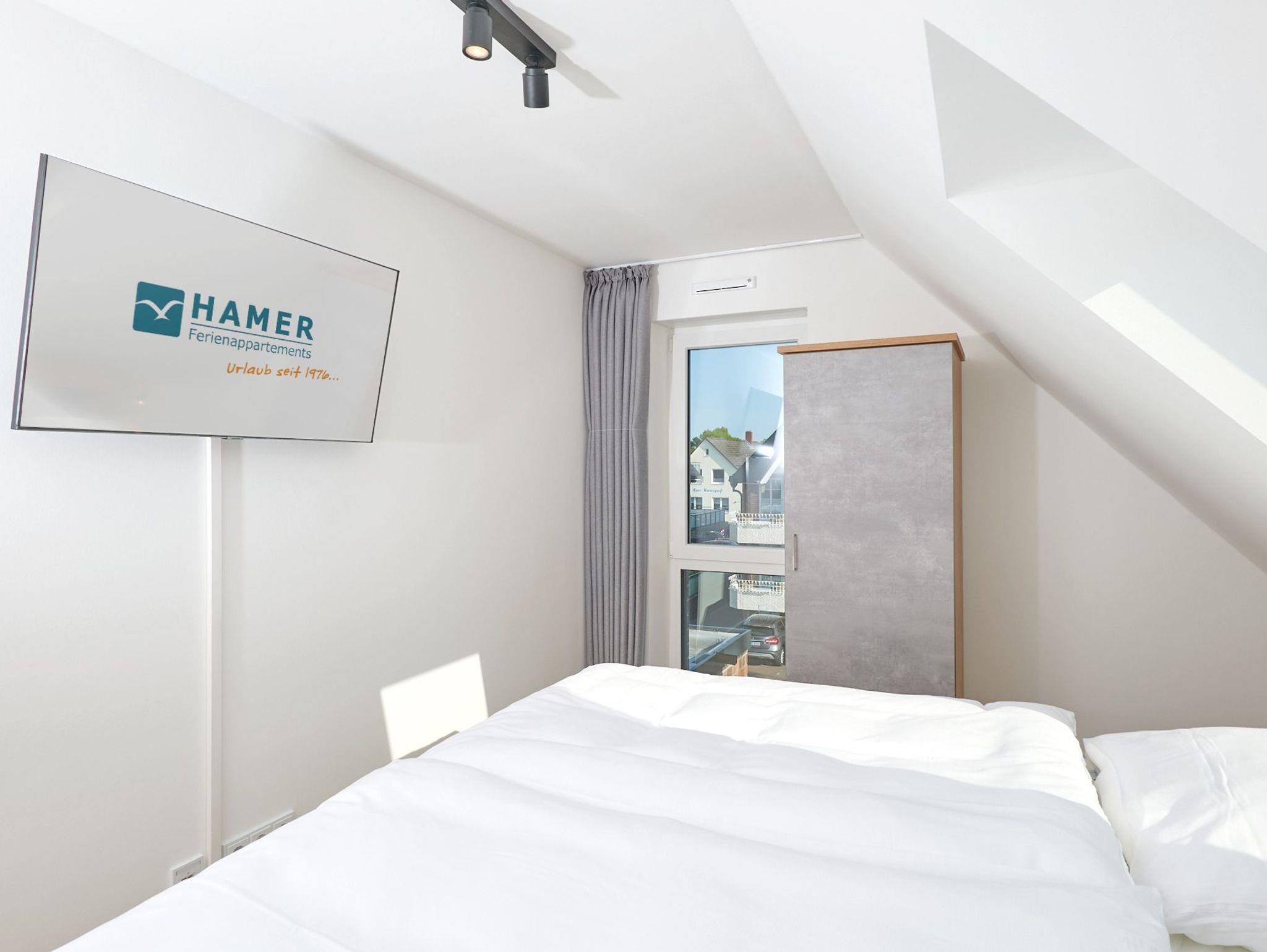 Neubau Mai 2023! Sehr schöne, moderne 2-Raum-Wohnung bis 2 Pers. voll ausgestattet auf ca. 49 m² in der 3.Etage gelegen, 1 Schlafzimmer mit komfortablen Doppelbett (Bettwäsche inkl.) und Außenjalousien an allen Fenstern (Veluxfenster mit Rollo innen), ebenerdige Dusche/WC, Wohnzimmer mit Küchenzeile (2 Platte, Mikrowelle/Backkombi, Geschirrspüler) 2x Kabel-TV, Radio, kostenfreies W-LAN-Internet, großer Balkon mit Teilseesicht (nord/west), beide Zimmer mit Dachschrägen, Personenaufzug, die Wohnung ist barrierefrei erreichbar, reservierter Pkw-Stellplatz in der Tiefgarage inkl., es sind keine Haustiere erlaubt und natürlich Nichtraucher. Durchfahrtshöhe Tiefgarage: 2,05m.
