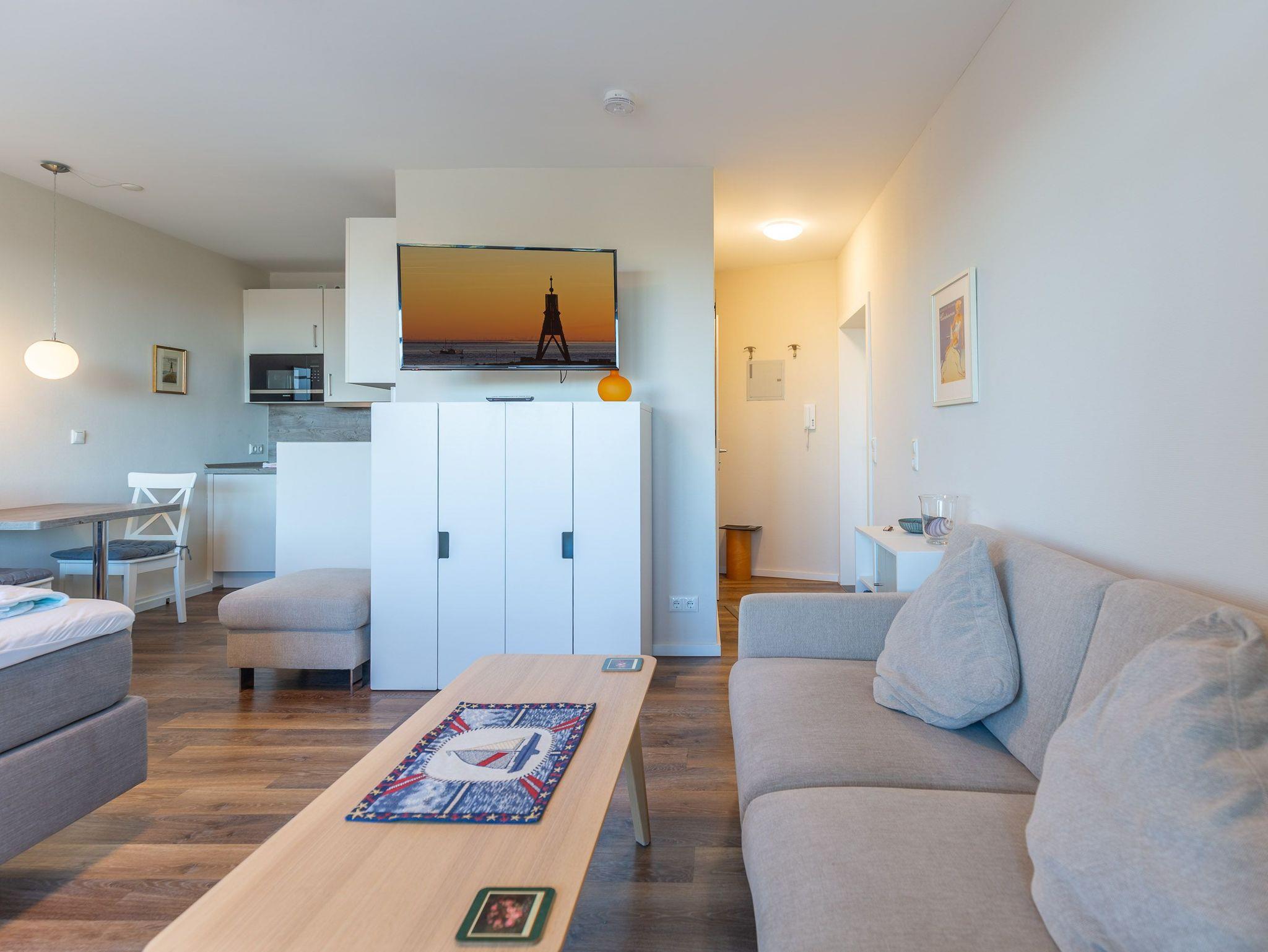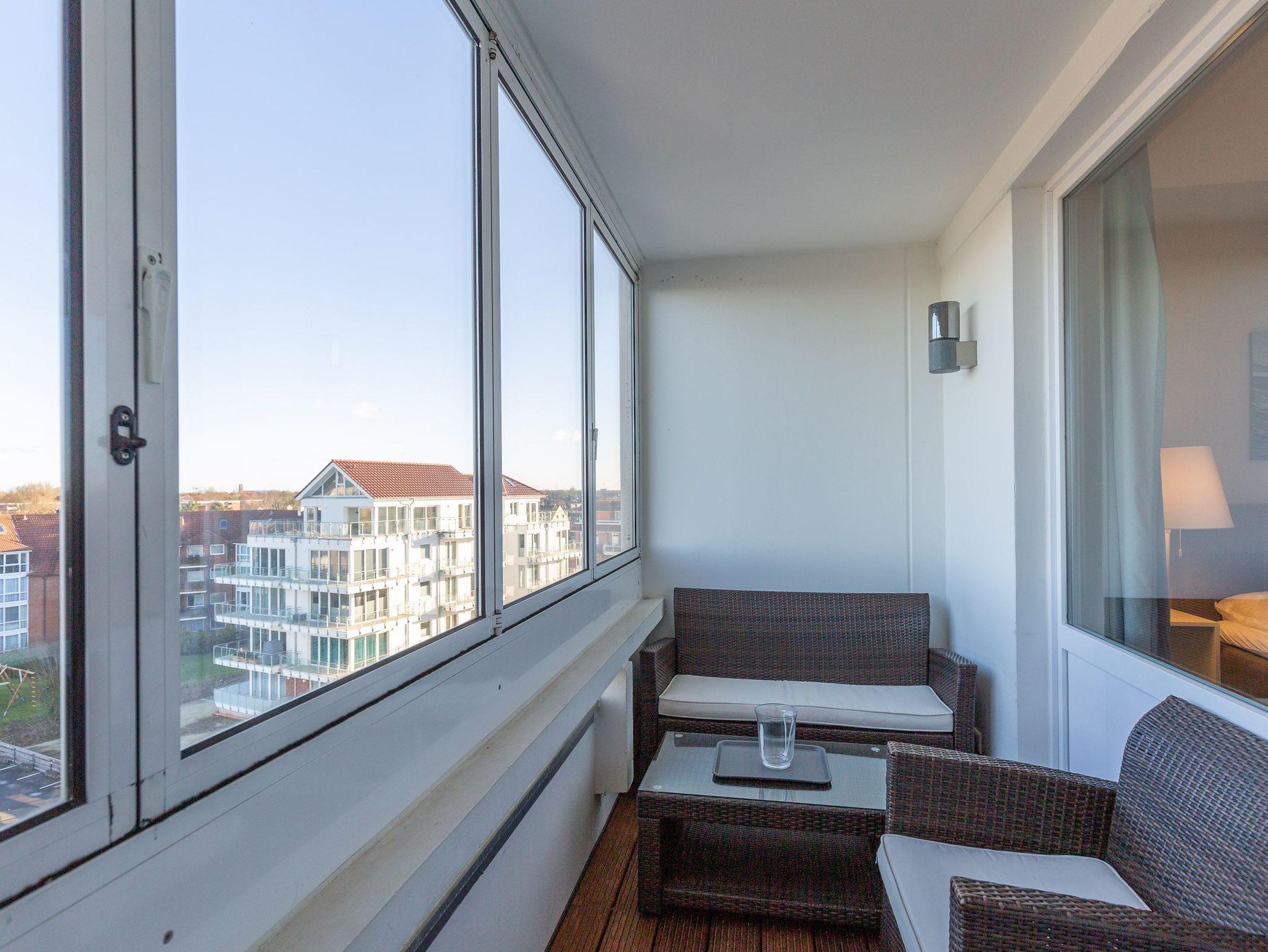 Ferienwohnung Atlantic 513 in Cuxhaven bietet Meerblick, Balkon, WLAN und Schwimmbad nur 100 m vom Strand entfernt.