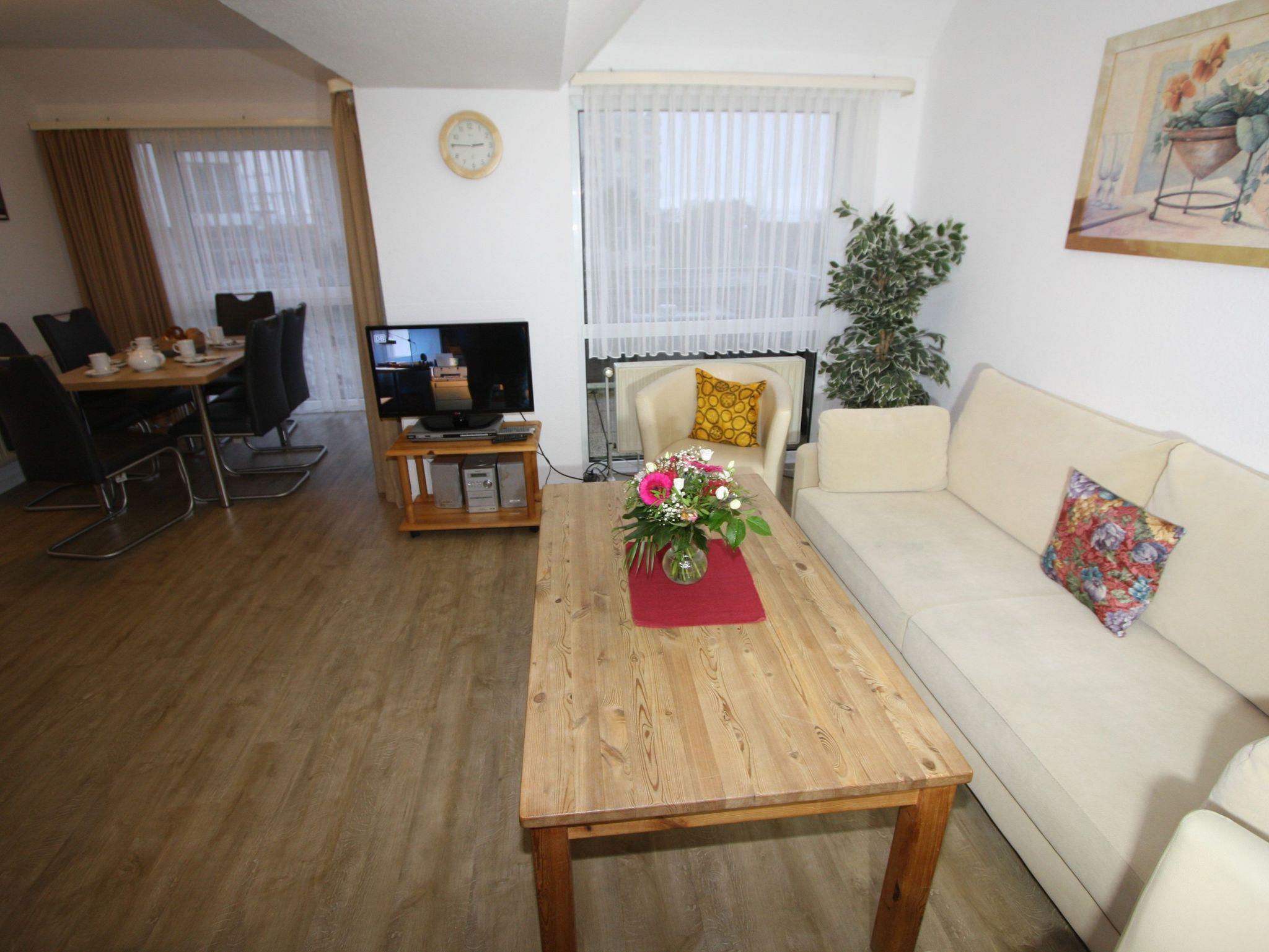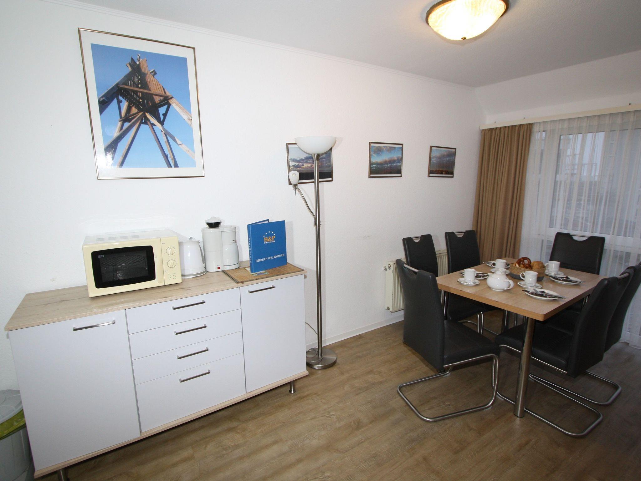 3-Zimmer-Appartement für bis zu 6 Personen auf ca. 70 m². Zwei Schlafräume mit Doppelbett oder Einizelbetten. Wohnraum mit Schlafcouch, TV, separatem Essplatz, Küchenbereich, Balkon. Bad mit Dusche/WC. PKW-Stellplatz vorhanden.