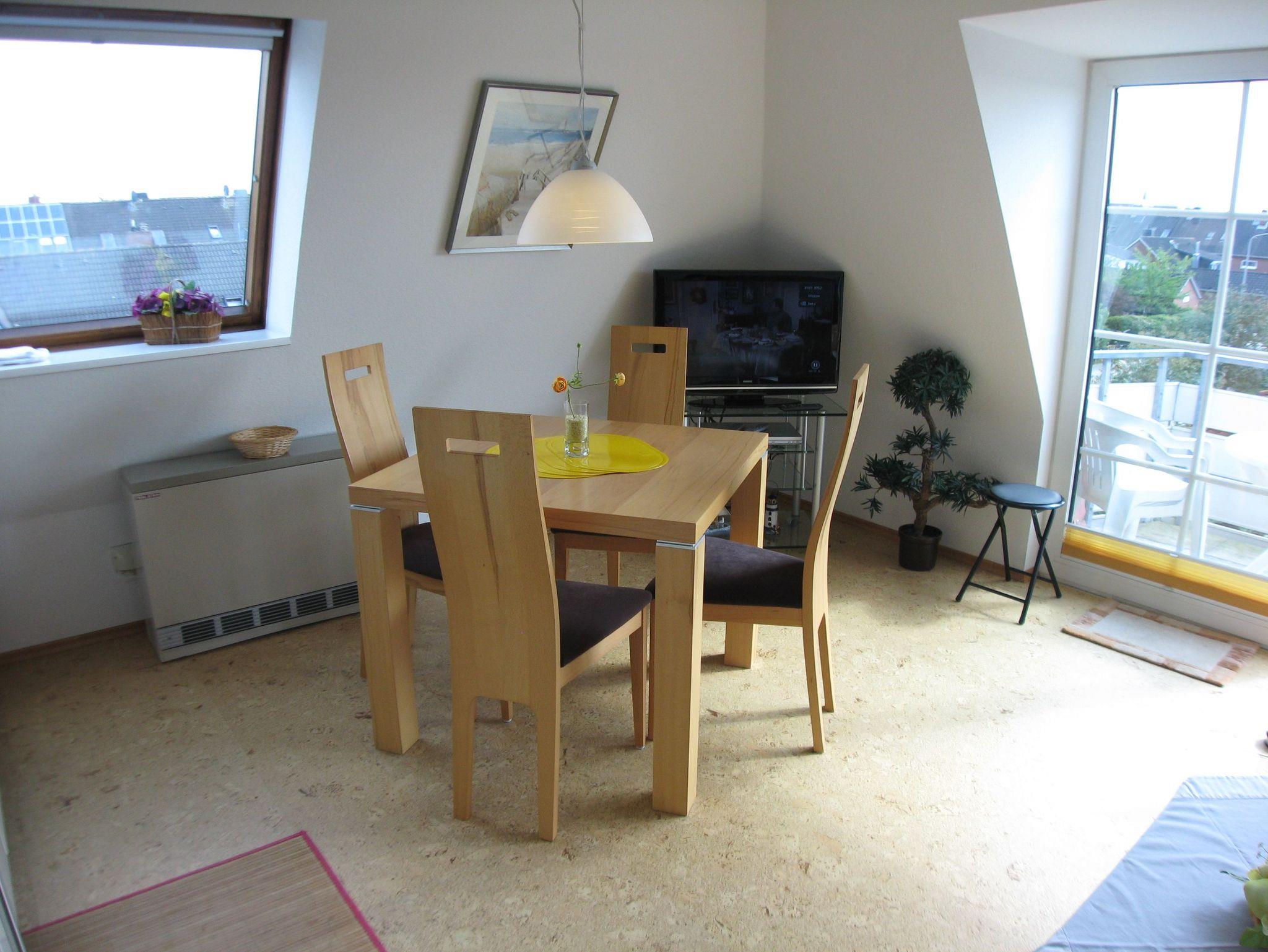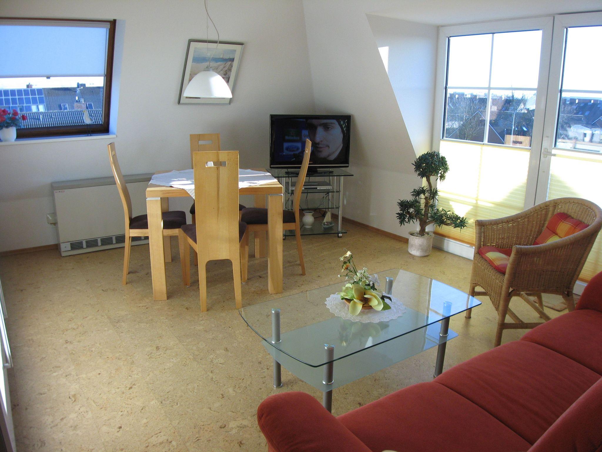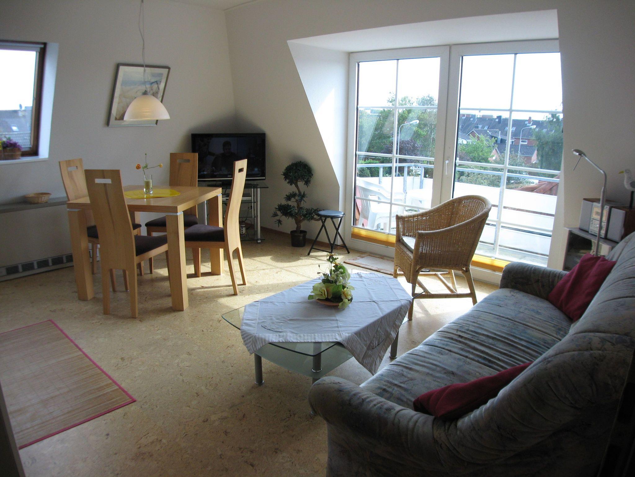 Die sonnige und gemütlich eingerichtete Ferienwohnung ist ca. 49 m² groß, verfügt über drei Zimmer und bietet Platz für bis zu 4 Personen. Sie zeichnet sich aus durch ein Schlafzimmer mit Doppelbett (Boxspringbett), einem Schlafzimmer mit zwei getrennten Betten, einem Wohnraum mit Küchenbereich, Dusche/WC, Südbalkon, Sat-Flachbild-TV, DVD-Player, Stereoanlage mit CD-Spieler, 2. Flachbild-TV im Schlafzimmer, Laminat-und Korkfußboden u.v.m. CDs und Bücher stehen ebenso zur Verfügung wie Gesellschaftsspiele.
