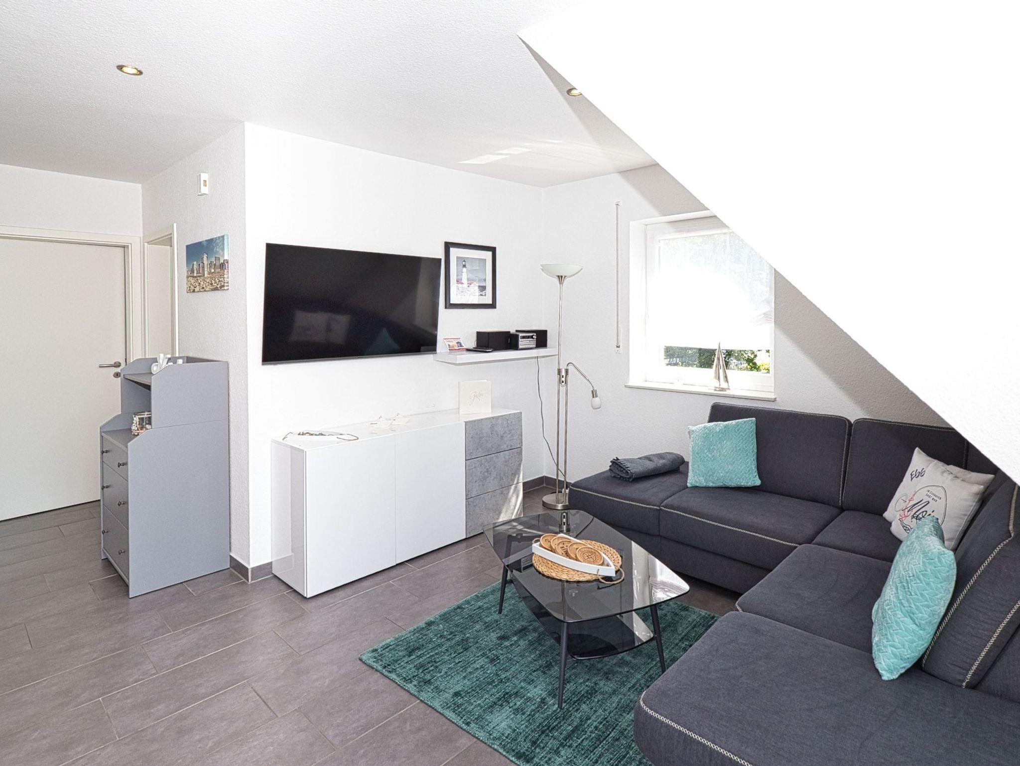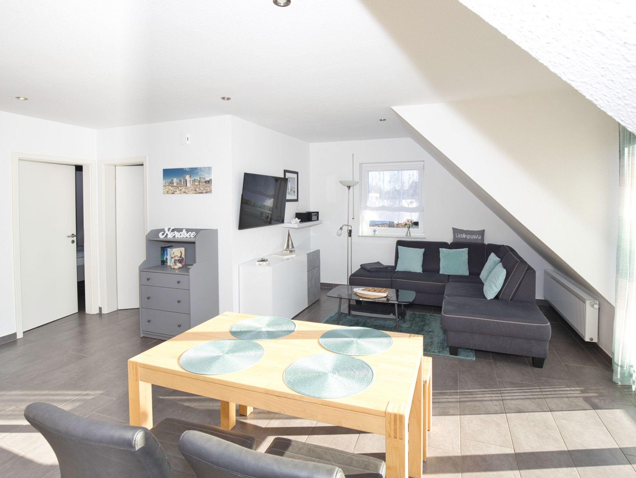Stilvolle Maisonette-Ferienwohnung Elbwelle in Cuxhaven-Döse mit Balkon, moderner Ausstattung und Thalasso-Zugang.