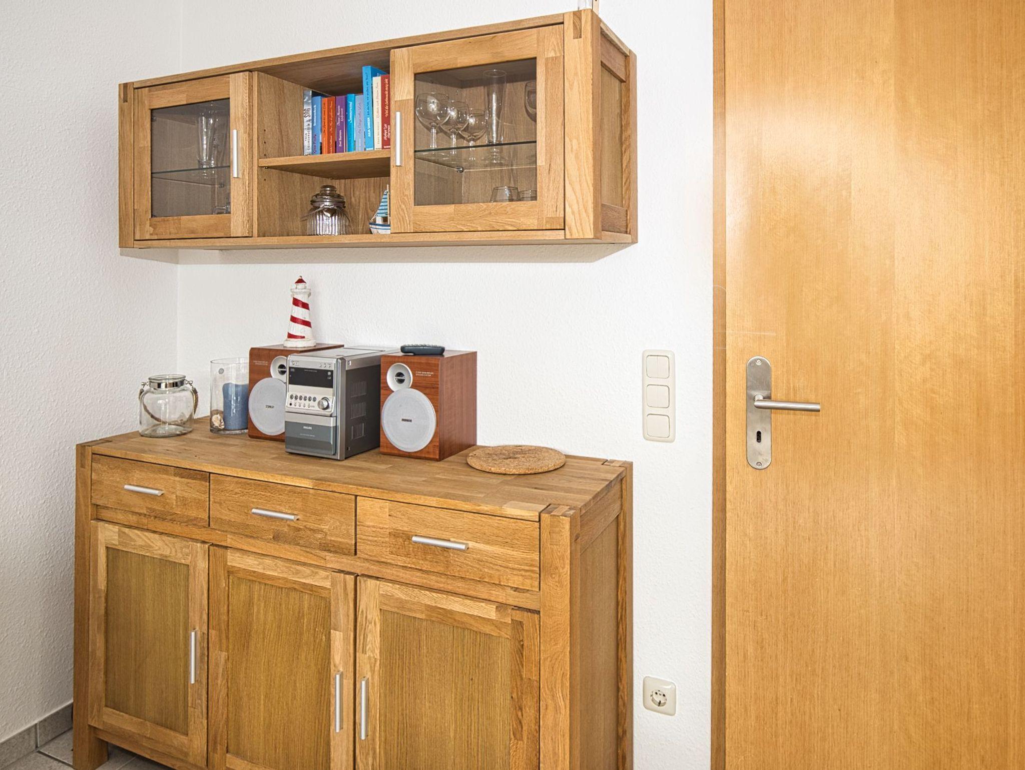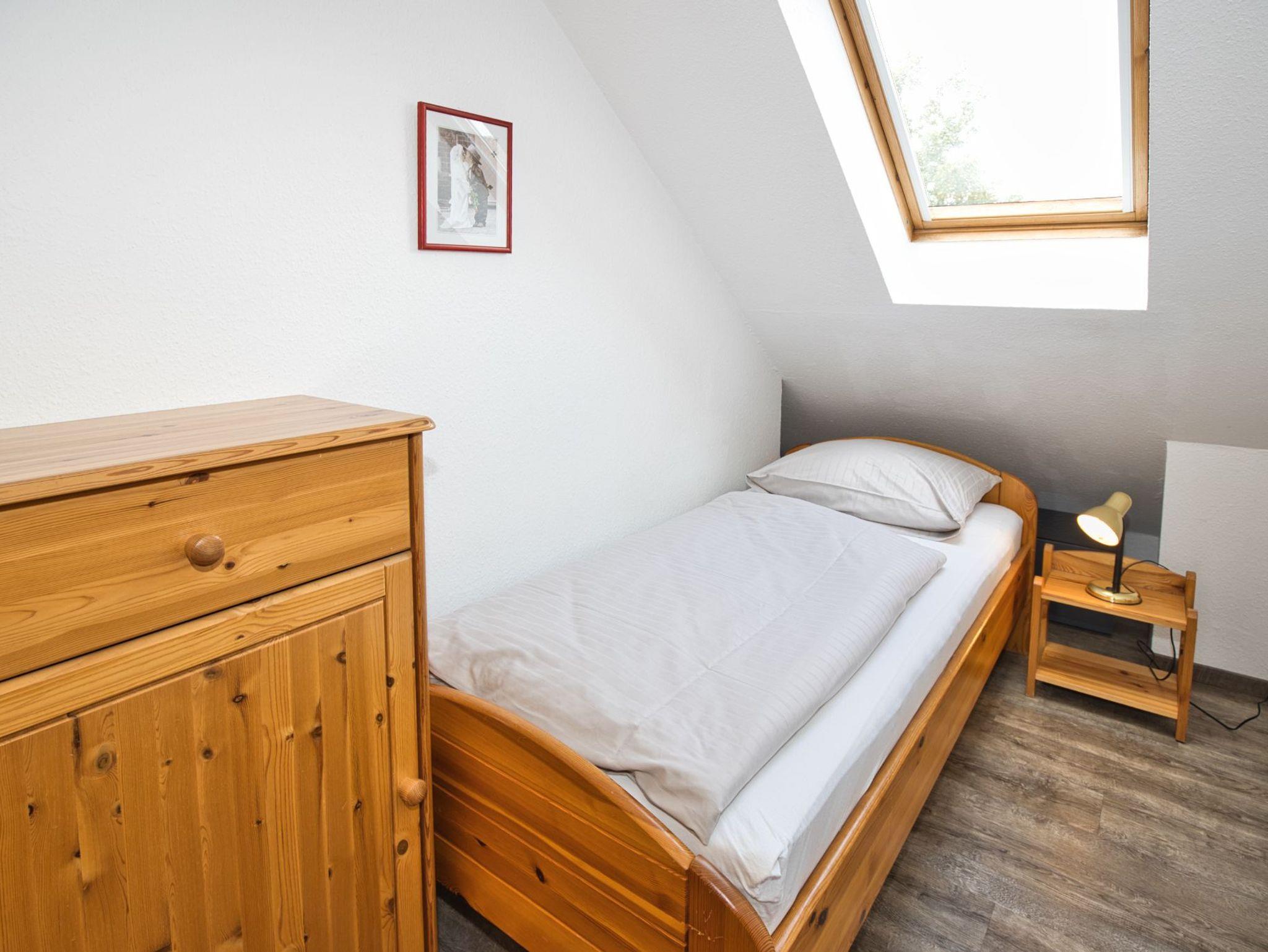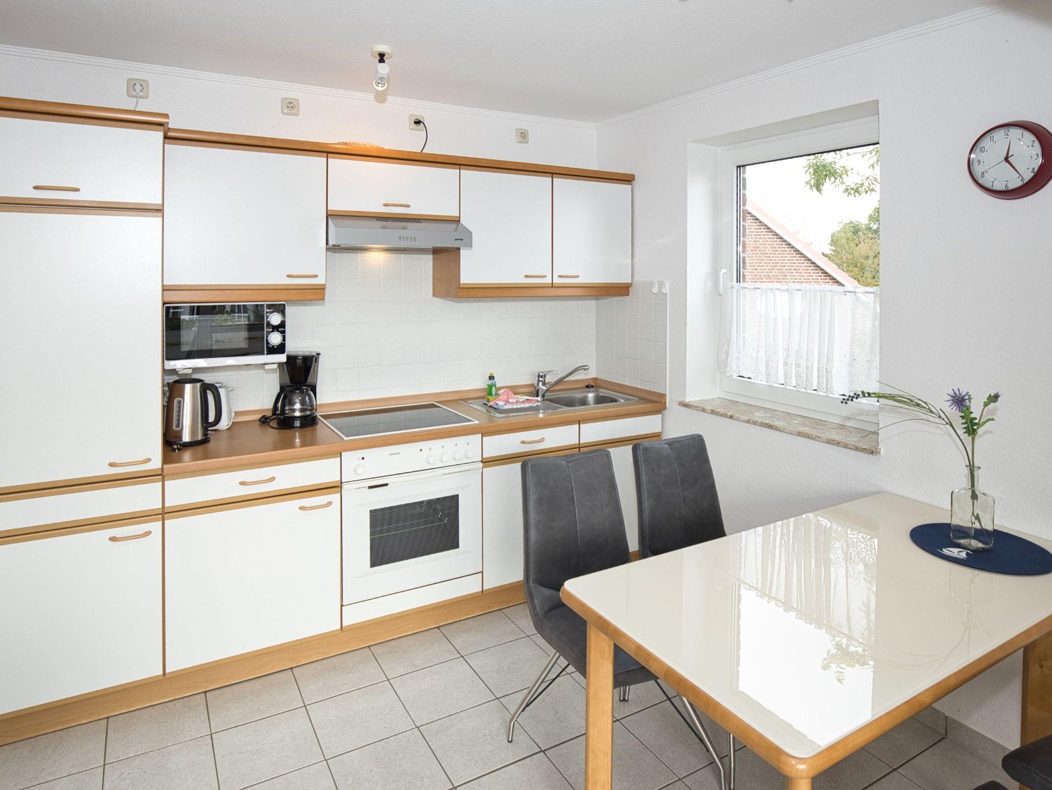 Maike 15b, 3-Raum, ca. 54m², 1.OG, bis zu 3 Personen. Die gemütlich ausgestattete Ferienwohnung empfängt Sie im 1.OG und ist aufgeteilt mit einem kleinen Flur, Duschbad/WC, Schlafzimmer mit Doppelbett, einem weiteren kleinen Schlafbereich mit einem Einzelbett. dieser Bereich ist ebenfalls durch eine Tür getrennt und vom Flur aus erreichbar. Des Weiteren ein Wohnbereich mit großem Esstisch und der gut ausgestatteten Einbauküche. Vom Wohnbereich geht es auf den sonnigen Süd Balkon (mit Balkonmöbeln). Die Wohnung hat einen eigenen Eingang mit einer direkt dahinterliegende Treppe zum 1. OG, in die Wohnung.