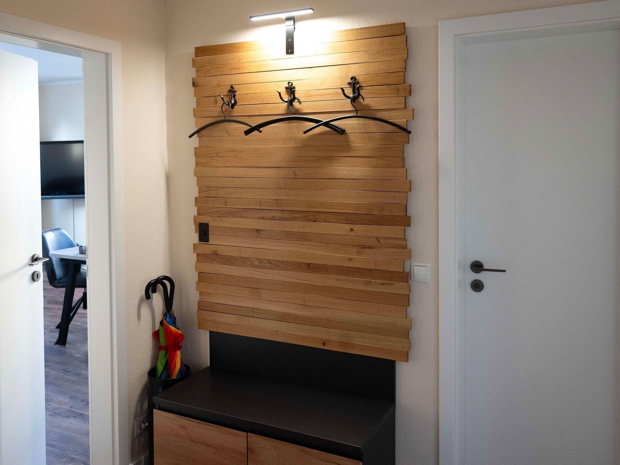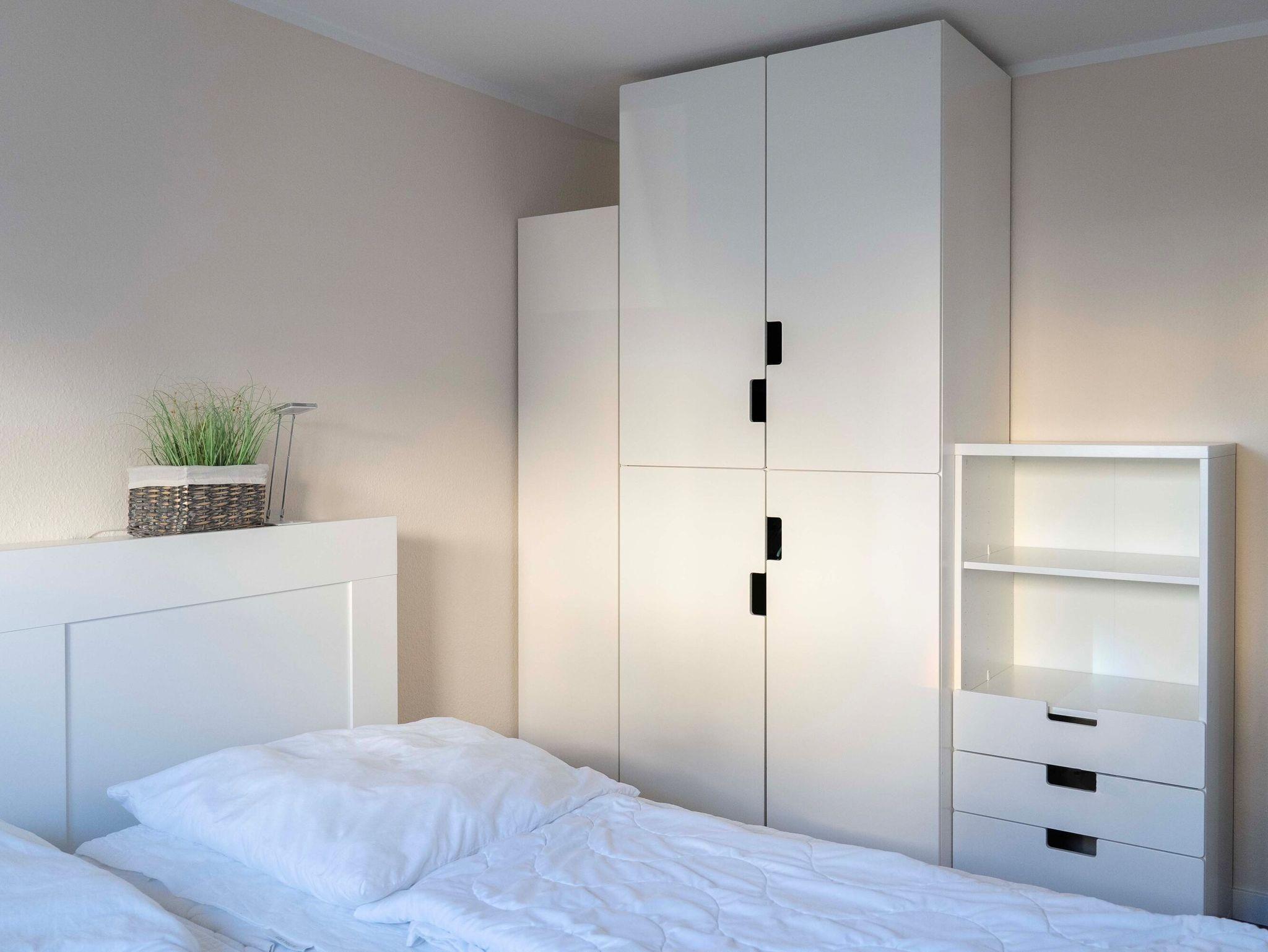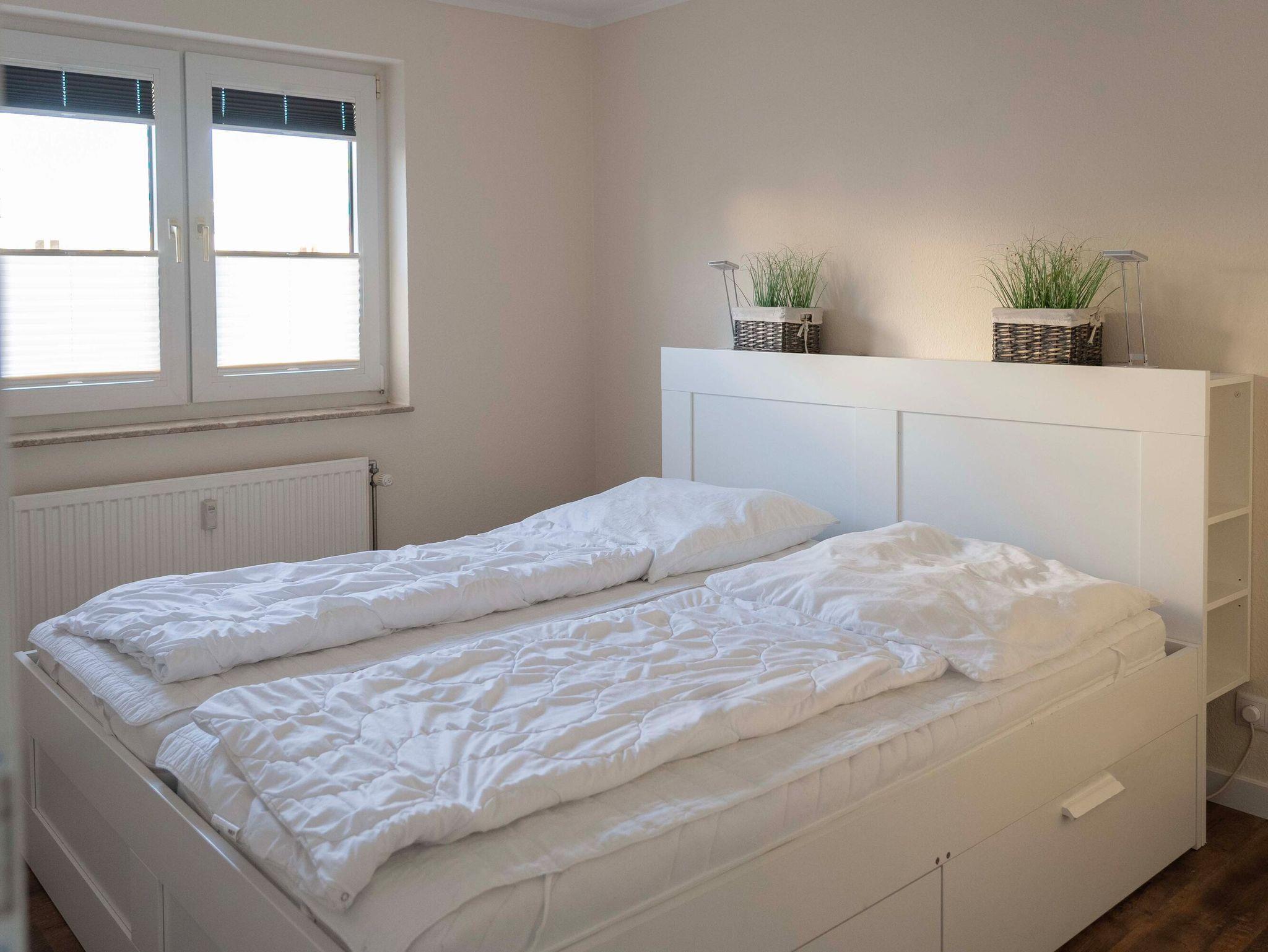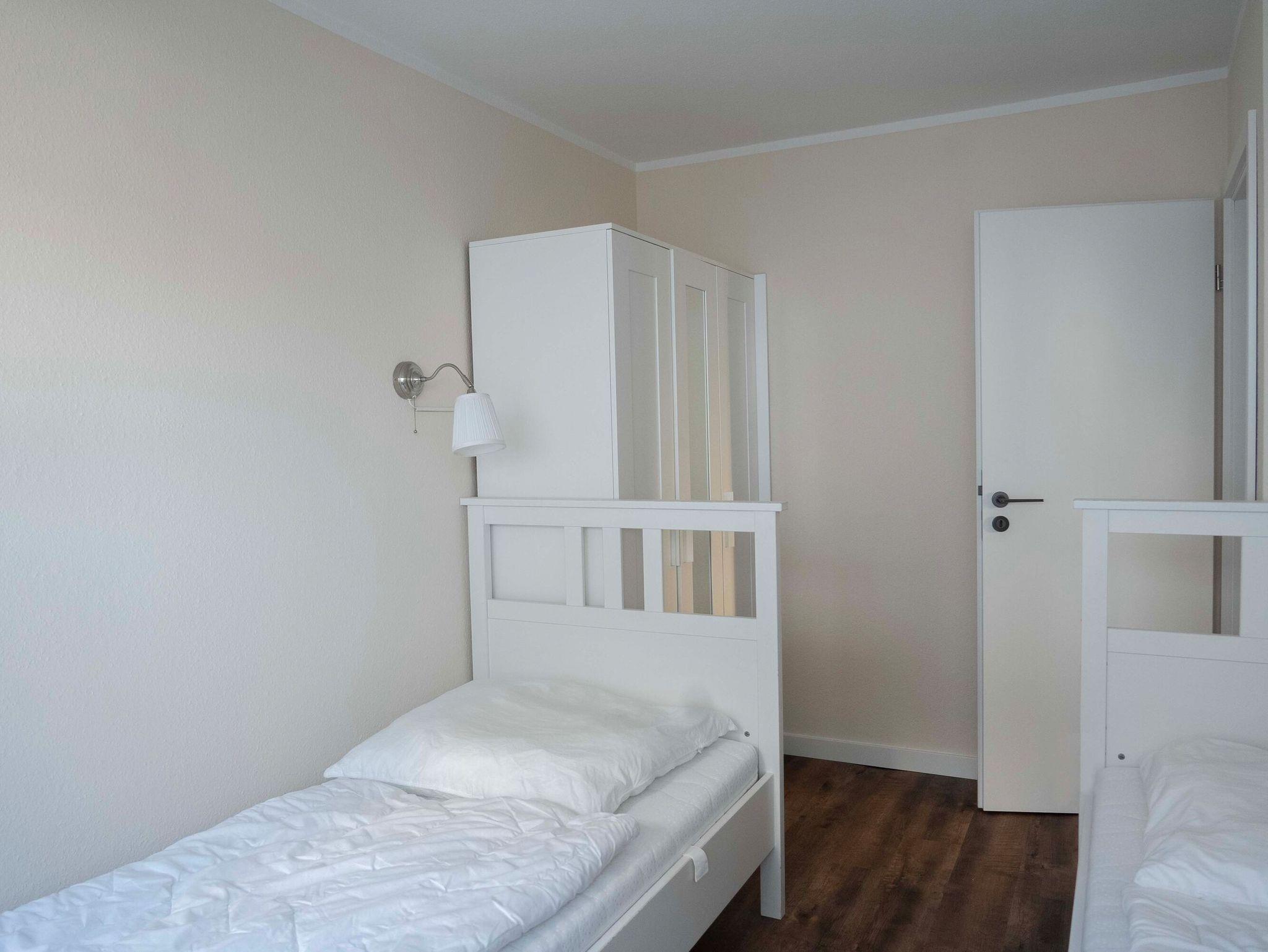 Die 3-Raum-Wohnung im Erdgeschoss mit ca.55 m² Wohnfläche, ist komplett für bis zu 4 Personen ausgestattet. 1 Schlafzimmer mit Doppelbett, ein Kinderzimmer mit 2 Einzelbetten, großzügiges Wohnzimmer mit Einbauküche (Ceranfeld, Backofen, Mikrowelle, Kühlschrank mit Gefrierfach, Toaster, Wasserkocher und Kaffeemaschine, Geschirrspüler), Essplatz, gemütliches Sofa und Flatscreen TV.