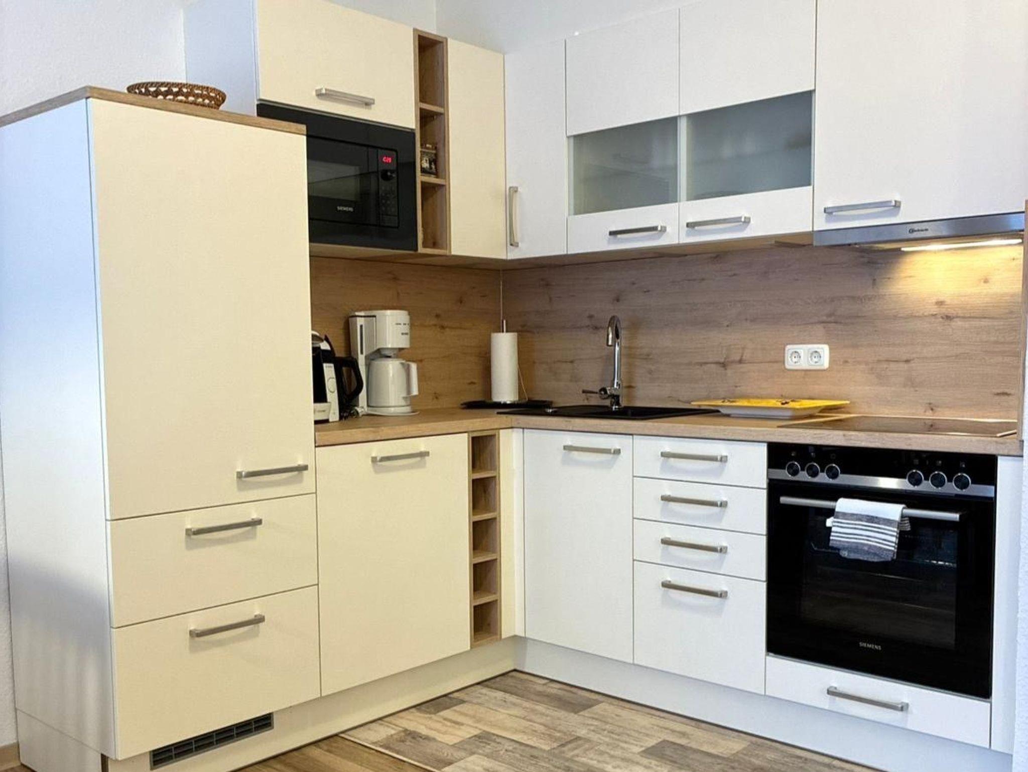 Küchenbereich:mit Kühlschrank (3*-Gefrierfach), Ceran-Kochfeld, Backofen, Mikrowelle,Minibackofen, Geschirrspüler, Kaffeemaschine, Toaster, Wasserkocher, Eierkocher, zusätzliche Tassimo - Kaffeemaschine