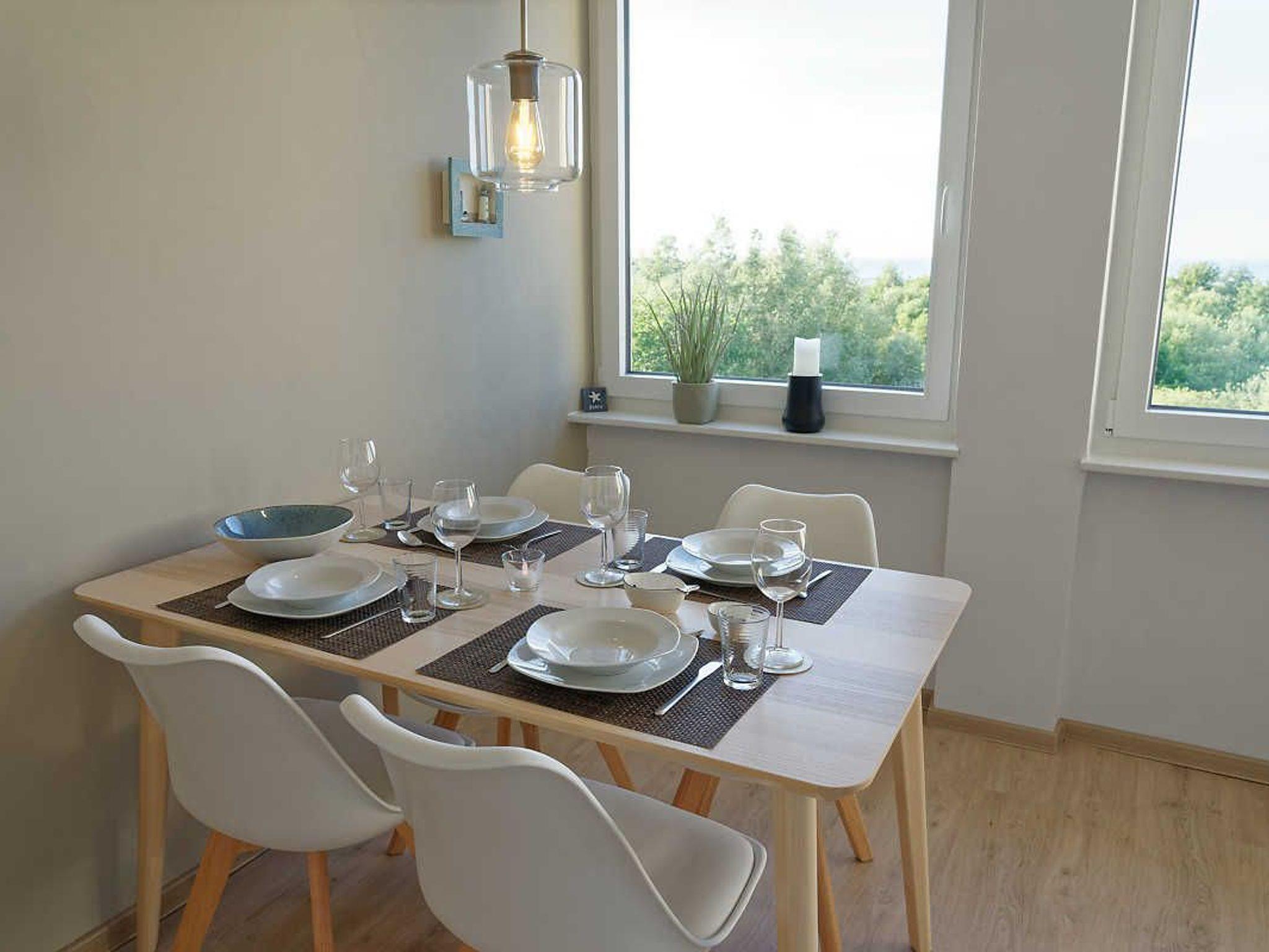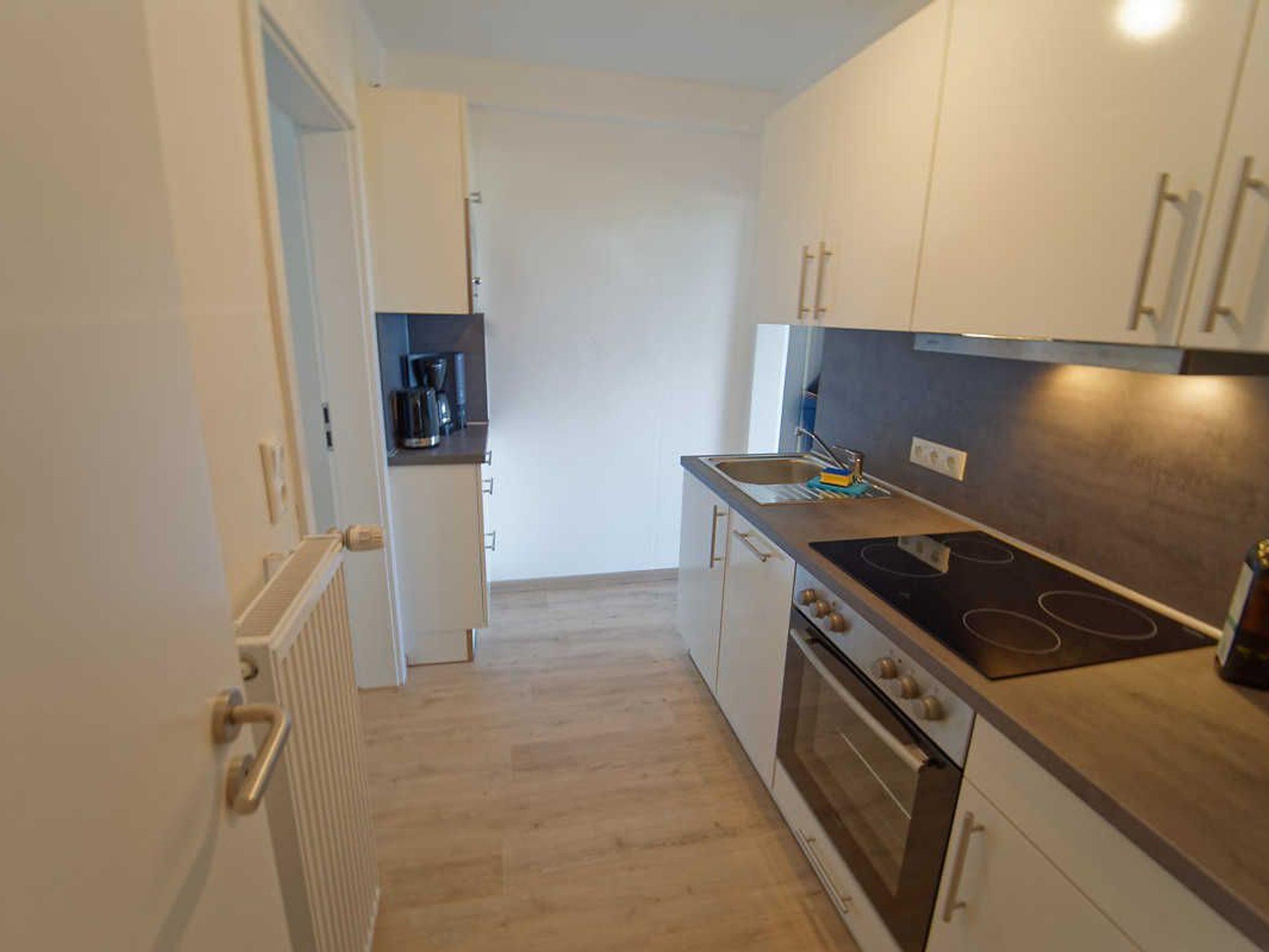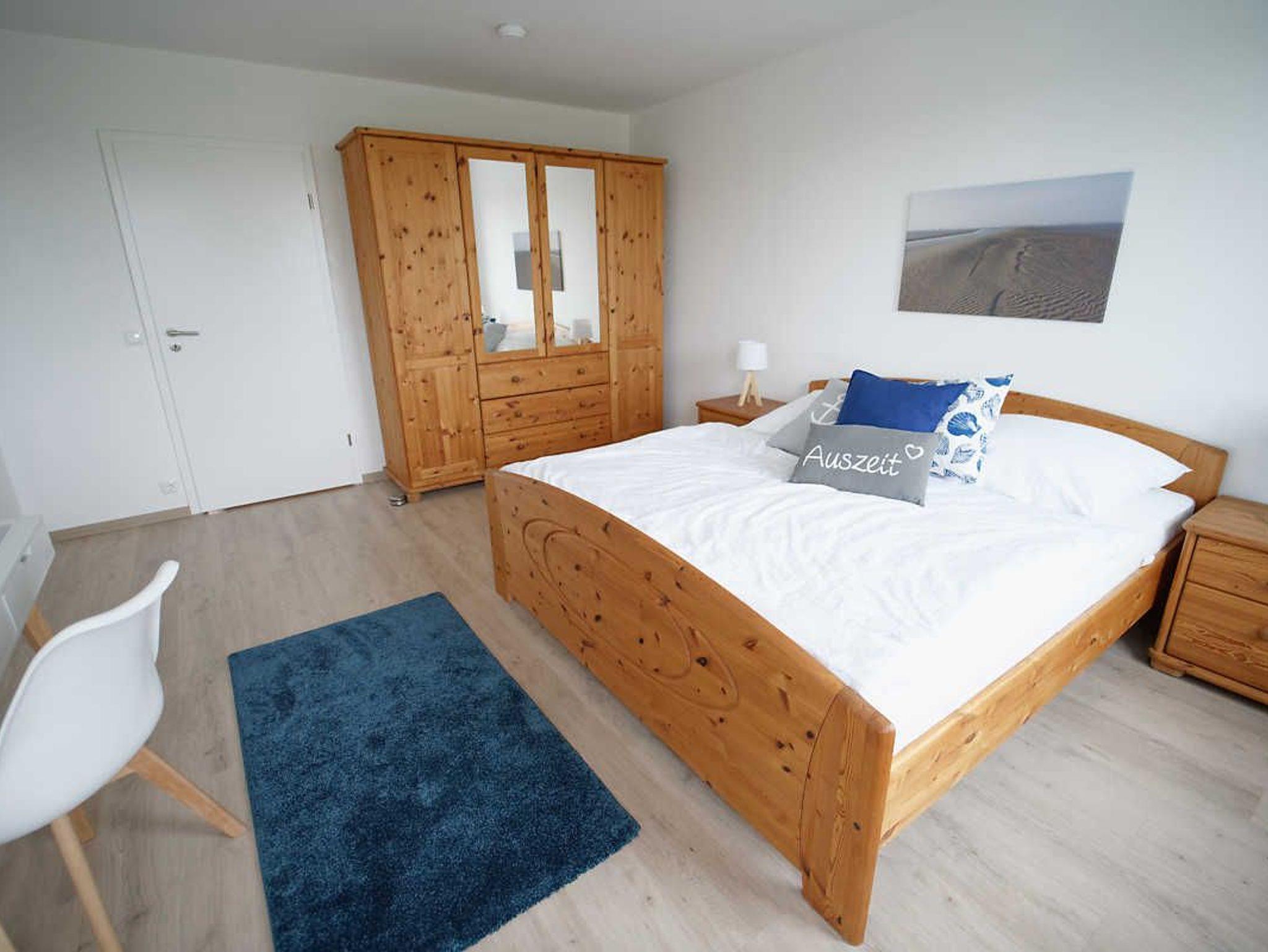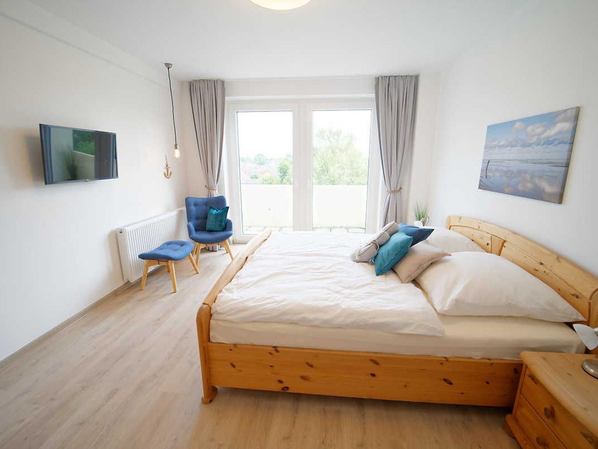 Zwei großzügige Schlafzimmer mit Doppelbetten sorgen für erholsame Nächte. Im Wohn- und Esszimmer genießen Sie dank der großen Fensterfront einen herrlichen Panoramablick auf die Nordsee und den Weltschifffahrtsweg. Das modern renovierte Badezimmer verfügt über Dusche, WC und eine Waschmaschine. Die voll ausgestattete Küche bietet mit Cerankochfeld, Backofen, Mikrowelle, Spülmaschine und Kühlschrank mit Gefrierfach allen Komfort für Ihren Aufenthalt. Auf dem sonnigen Südbalkon blicken Sie ins Grüne und können wunderbar entspannen.