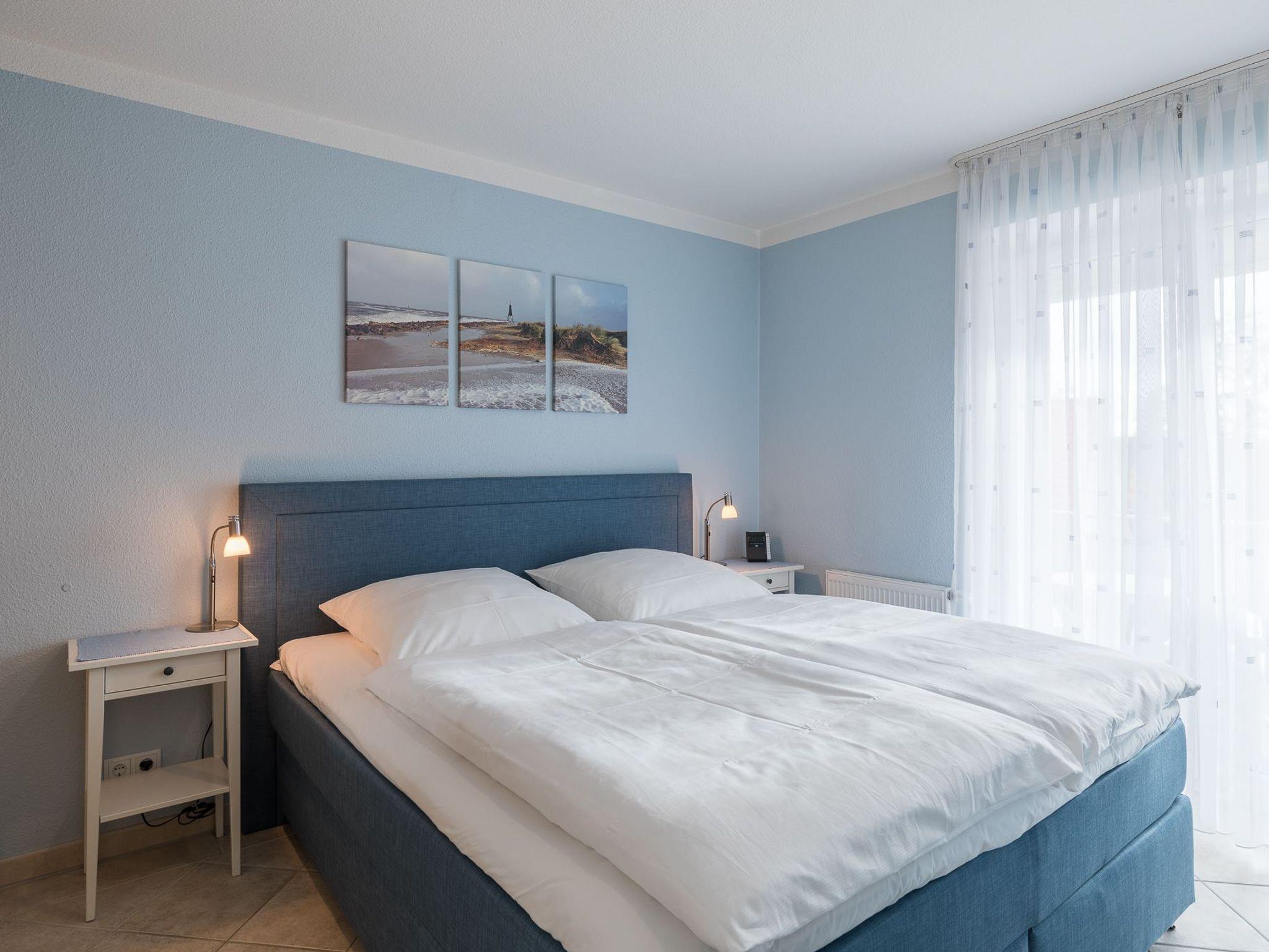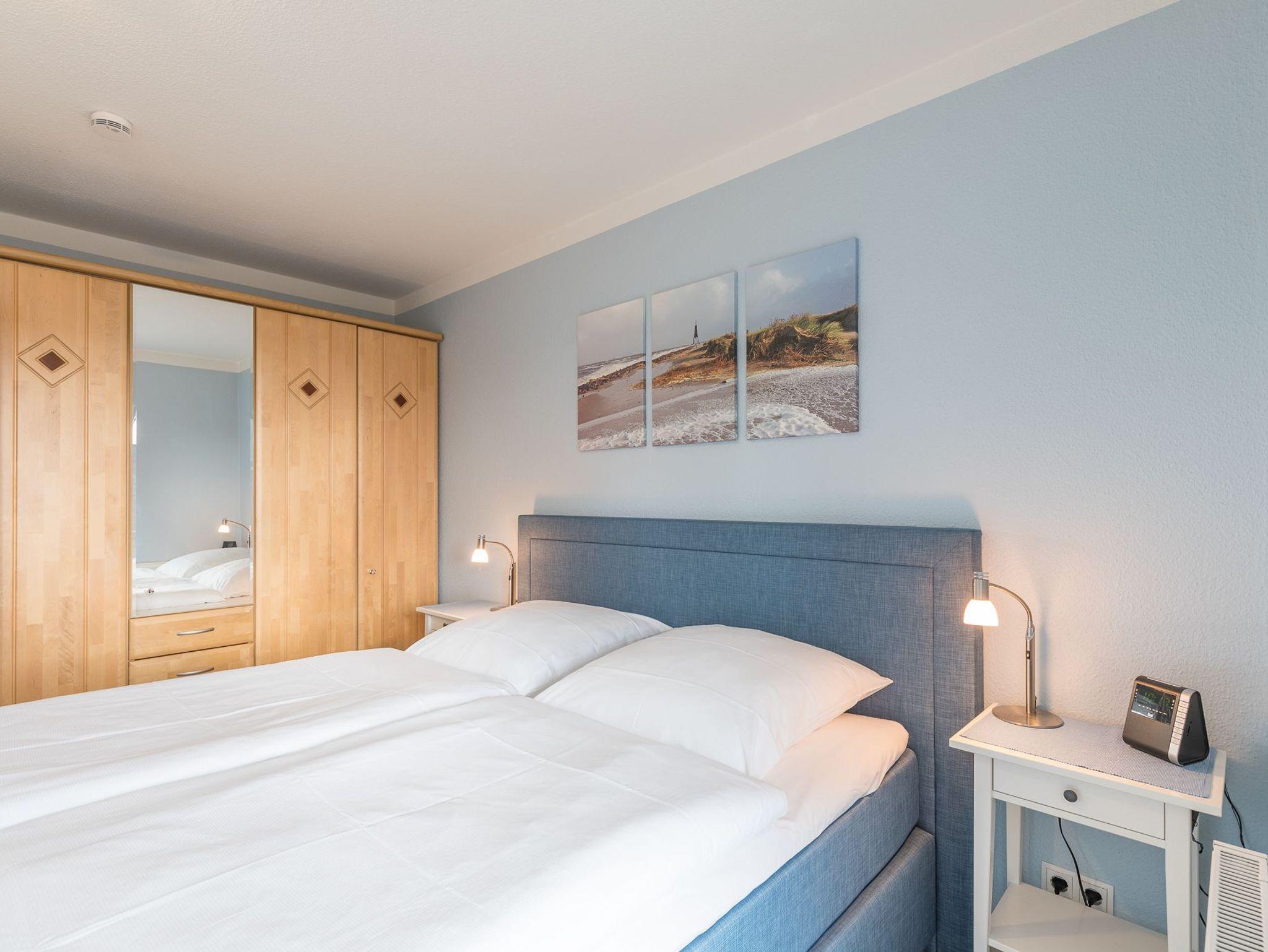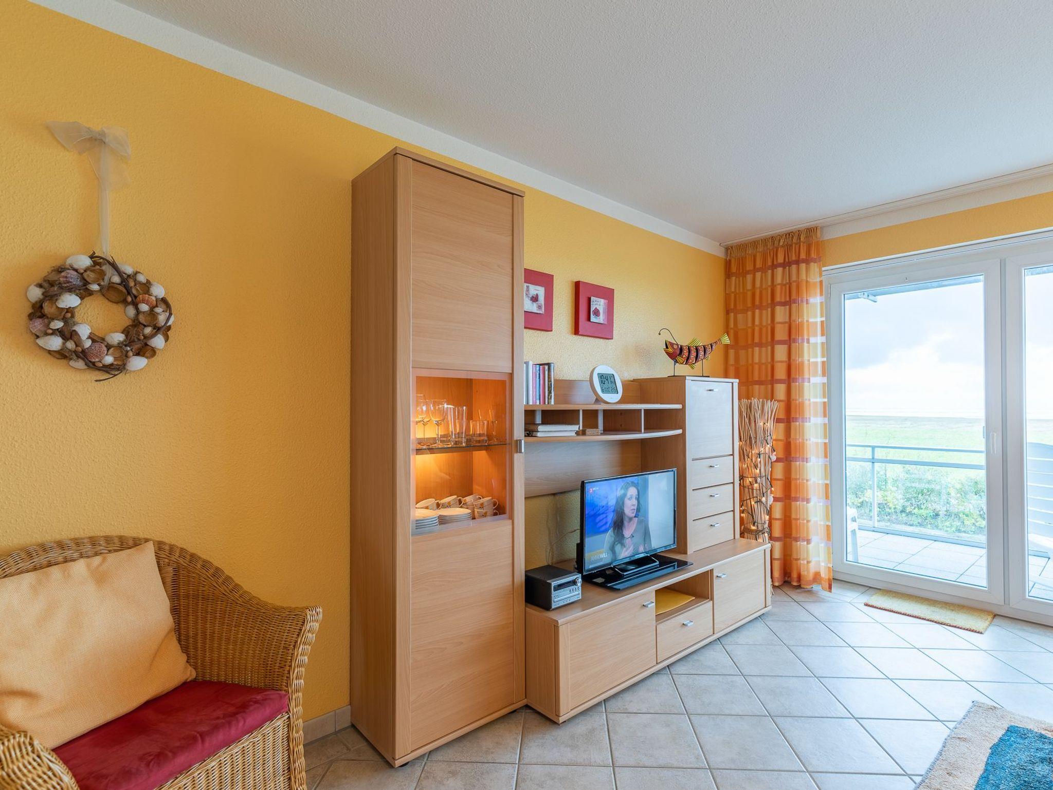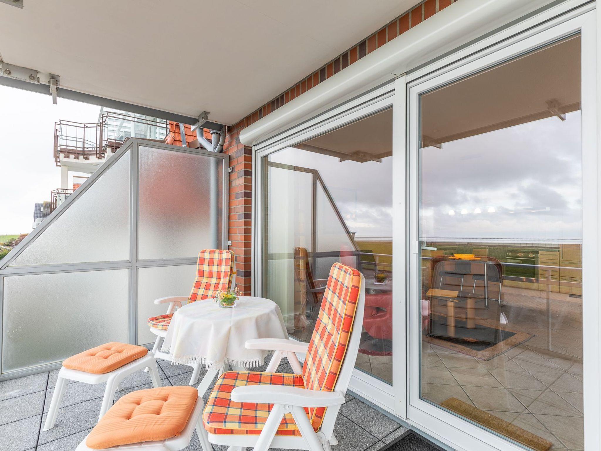 Schöne 2 Raum Wohnung mit einer Größe von ca. 55 m² Wohnfläche im 1. OG (Fahrstuhl im Haus), ist komplett für bis zu 2 Personen ausgestattet. 1 Schlafzimmer mit Box Springbett (180x200cm) und großem Kleiderschrank (mit elektrischen Aussenrollos am Fenster), großzügiges Wohnzimmer mit Einbauküche (Geschirrspüler, Ceranfeld, Backofen, Mikrowelle, Kühlschrank mit Gefrierfach, Wasserkocher, Toaster und Kaffeemaschine), Essplatz mit Blick auf die Nordsee,[nbsp][nbsp]gemütliches Sofa, Relax Sessel und Flatscreen TV, Tageslichtbad mit Dusche (niedriger Einstieg), WC und Handtuchheizkörper. Die Wohnung verfügt über 2 Balkone. Auf dem hinteren Balkon, den Sie vom Schlafzimmer oder Flur aus erreichen können, haben Sie die Morgensonne bis ca. 14.00 Uhr (dieser Balkon verfügt über eine elektrische Markise), vom vorderen Balkon aus haben Sie direkten Blick auf die Nordsee, das Wattenmeer und die Insel Neuwerk, ab ca. 16.00 Uhr kann man dort auch die Sonne genießen. Die Balkone sind mit Balkonmöbeln ausgestattet.