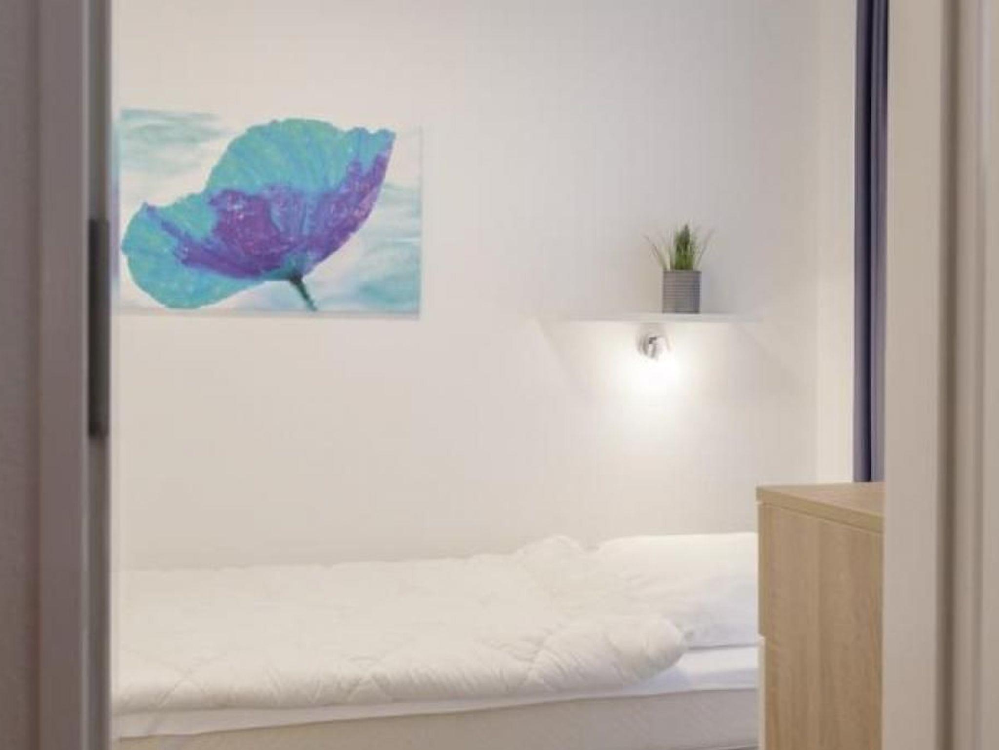2-Raum-Wohnung auf ca. 40m², 3. Etage, sehr schön renoviert und komplett ausgestattet bis 3 Pers., 1 Schlafzimmer mit 2 Einzelbetten (2,00 m), 1 kombiniertes Wohn/Schlafzimmer mit Eckschlafcouch, Sat-TV, kostenloses W-Lan, gute Einbauküche mit Mikrowelle u. Geschirrspüler , Dusche/WC, Fön, Flur, komplett gefliest, Balkon (ost) mit Teilseesicht, keine Haustiere, Nichtraucher, Tiefgarage #305.