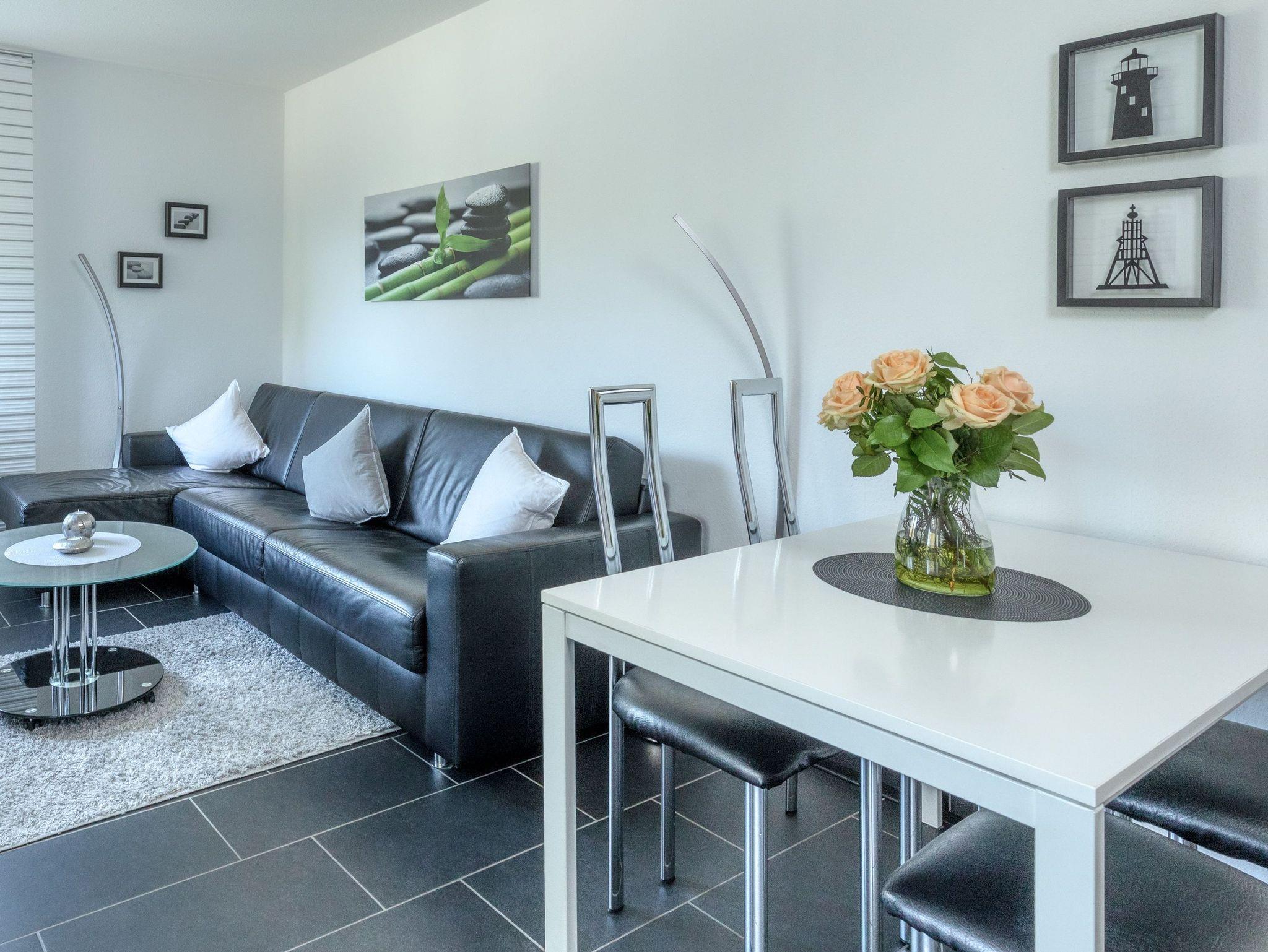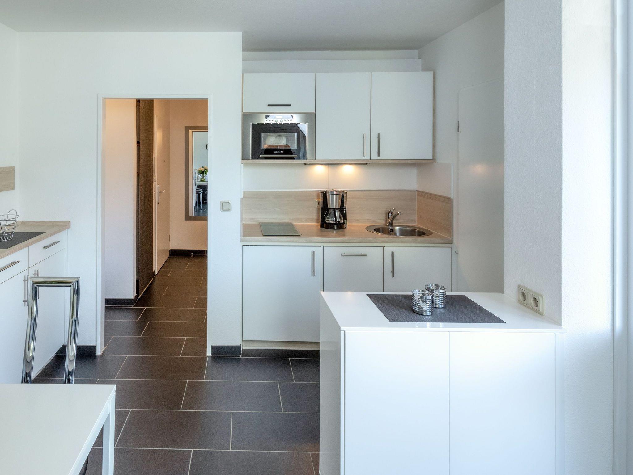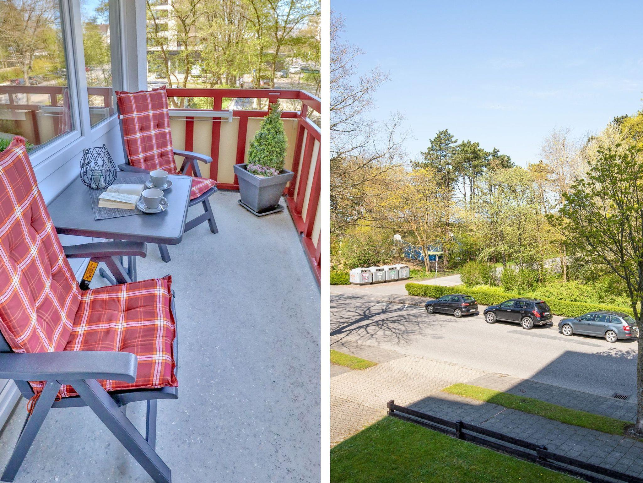 Das Appartement 20 ist ein 2-Raum-Appartement im 2. Obergeschoss für bis zu 3 Personen mit 39 qm. Der möblierte Westbalkon bietet morgens Schatten und nachmittags Sonne.