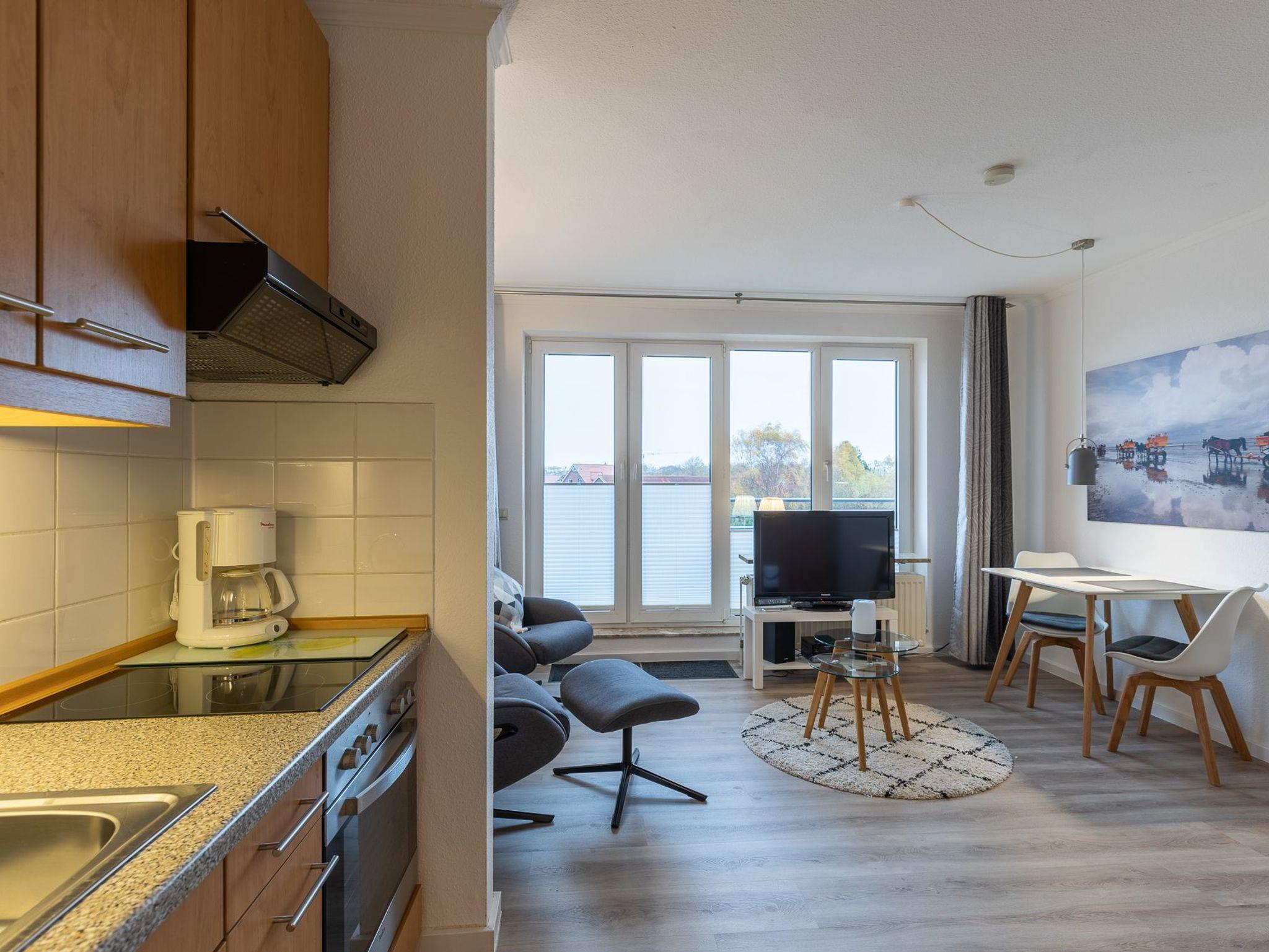 Die Wohnung 447, Lütt Utkiek, im Haus Knechtsand befindet sich in einer kinderfreundlichen Ferienanlage. In nur ca.750 Metern erreichen Sie die Nordsee mit dem Sandstrand und die Promenade.