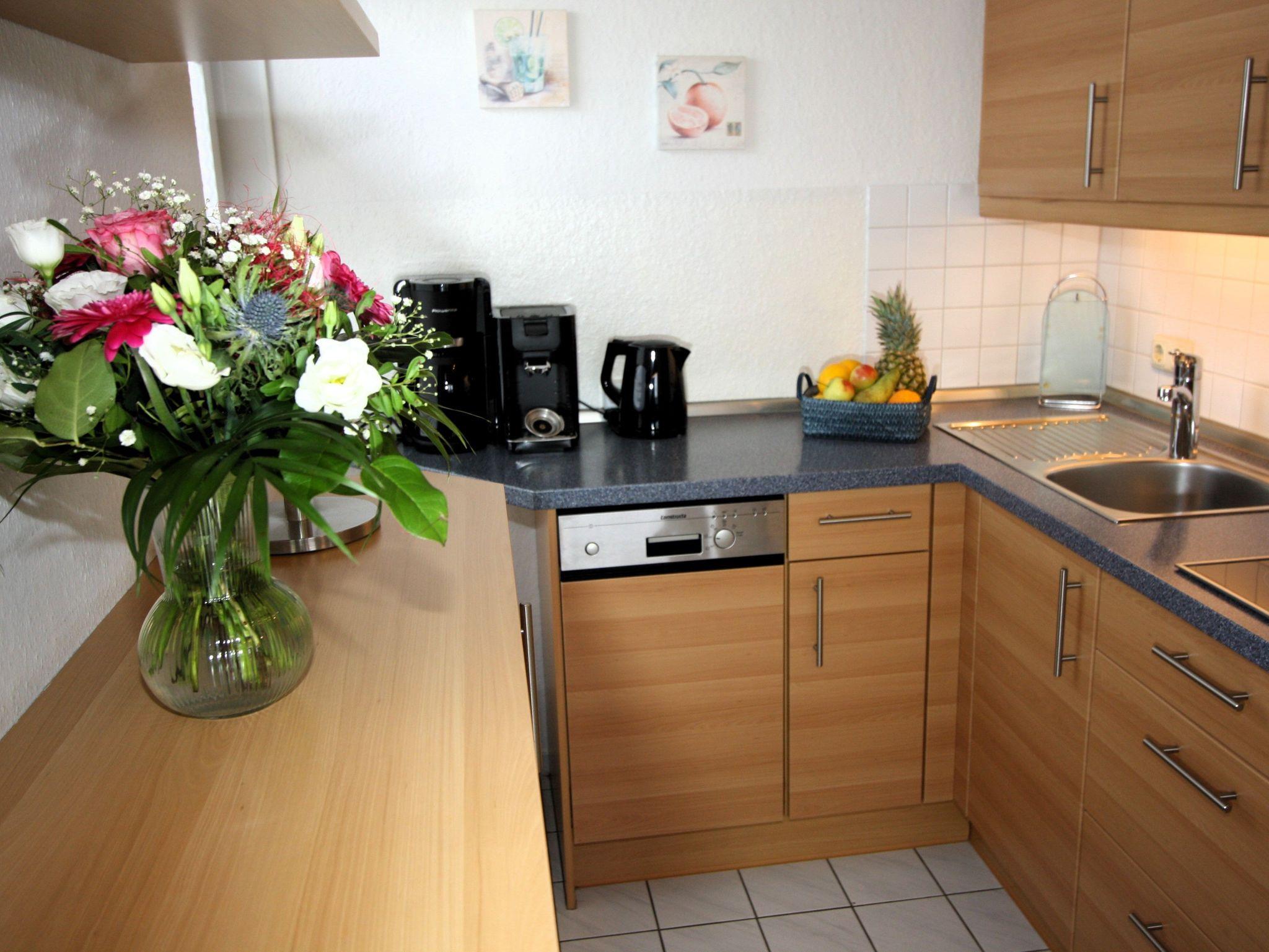 Der Wohn-/Schlafraum ist mit hochwertigen Möbeln ausgestattet. Die sehr bequeme Eckcouch ist schnell und einfach in ein Doppelbett mit der Größe 180 cm x 200 cm umzuwandeln. Der separierte Essbereich, LCD-TV, DVD-Player gehören ebenfalls zur hellen Wohnung dazu. Der voll ausgestattete Küchenbereich (mit 2-Platten Induktionskochfeld (ohne Backofen), Geschirrspüler, Mikrowelle mit Grill- und Backfunktion, Kaffeemaschine, Wasserkocher, Toaster, Eierkocher, ausreichend Geschirr und Besteck) sowie ein großer Eckbalkon runden das Angebot ab.