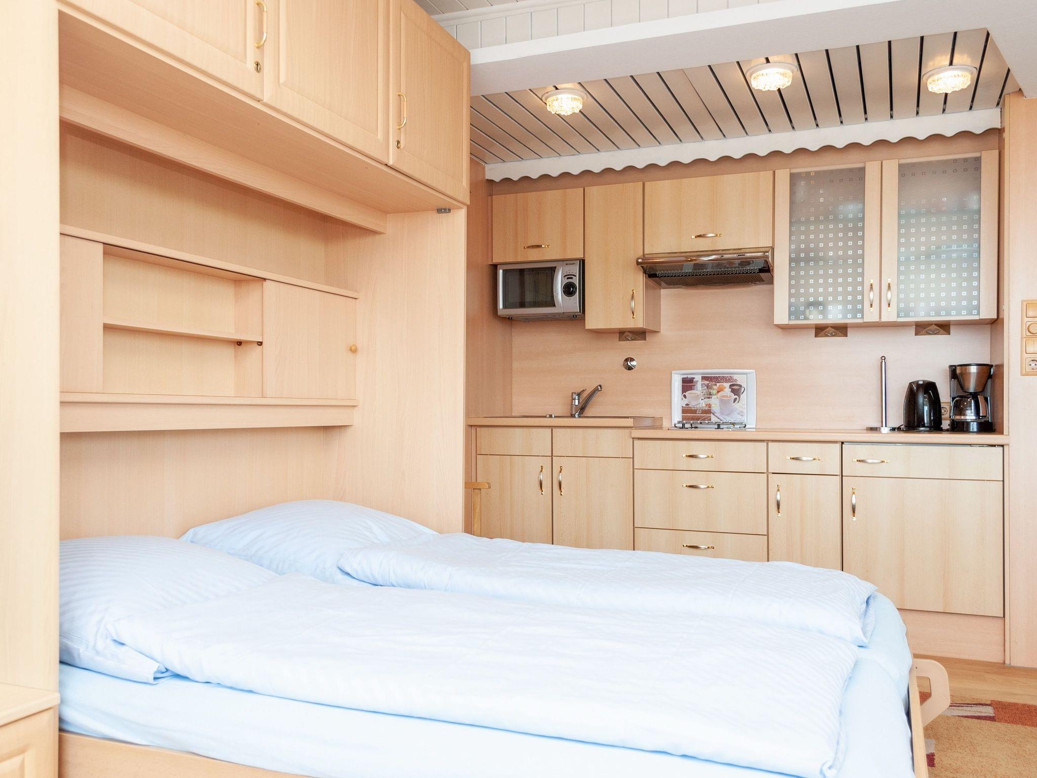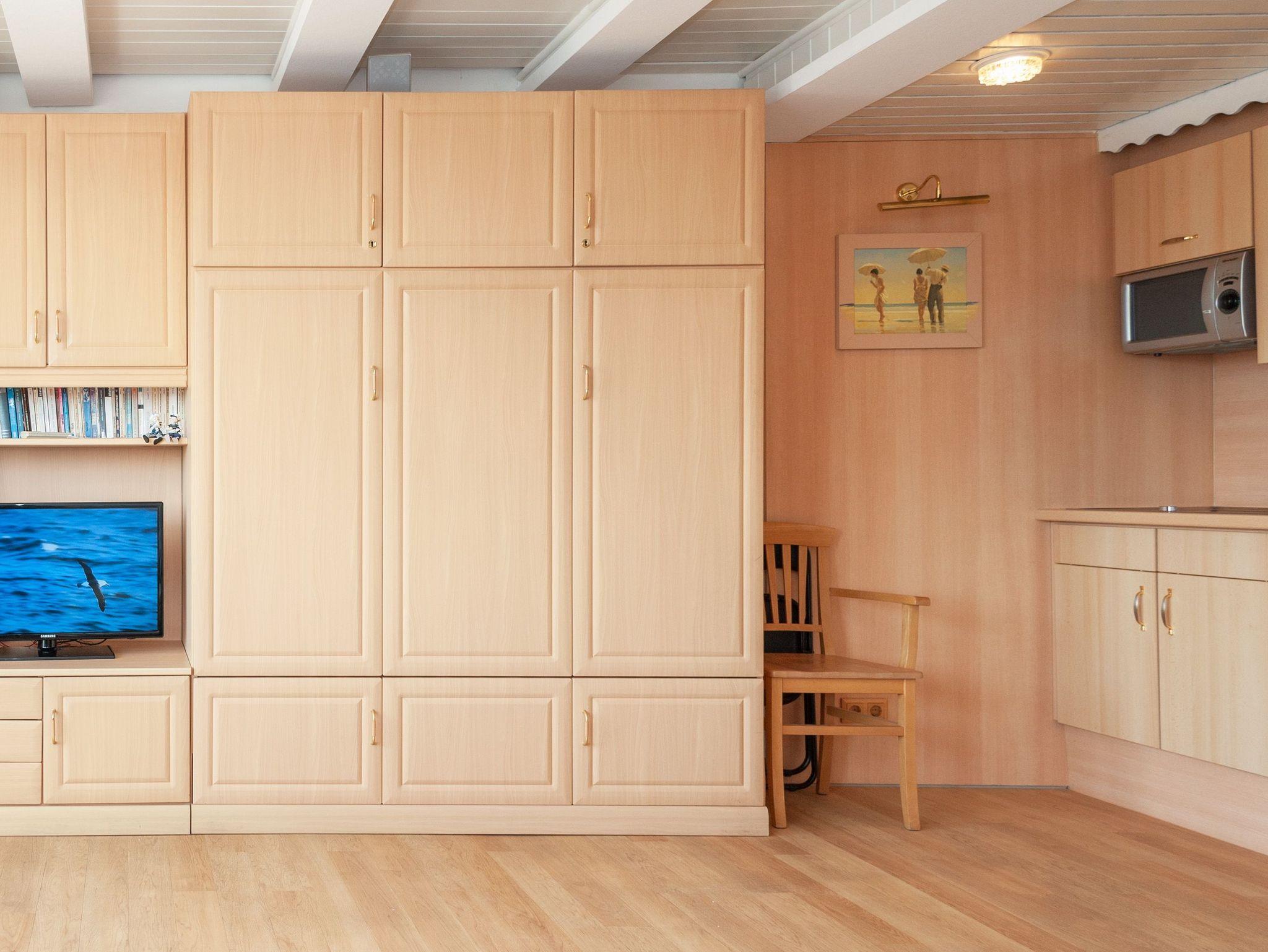 Das Apartment besteht aus einem Wohnbereich mit Schrankbett für 2 Personen, und einem Badezimmer mit Dusche sowie WC. Die Ferienwohnung beinhaltet eine voll ausgestattete offene Küche.