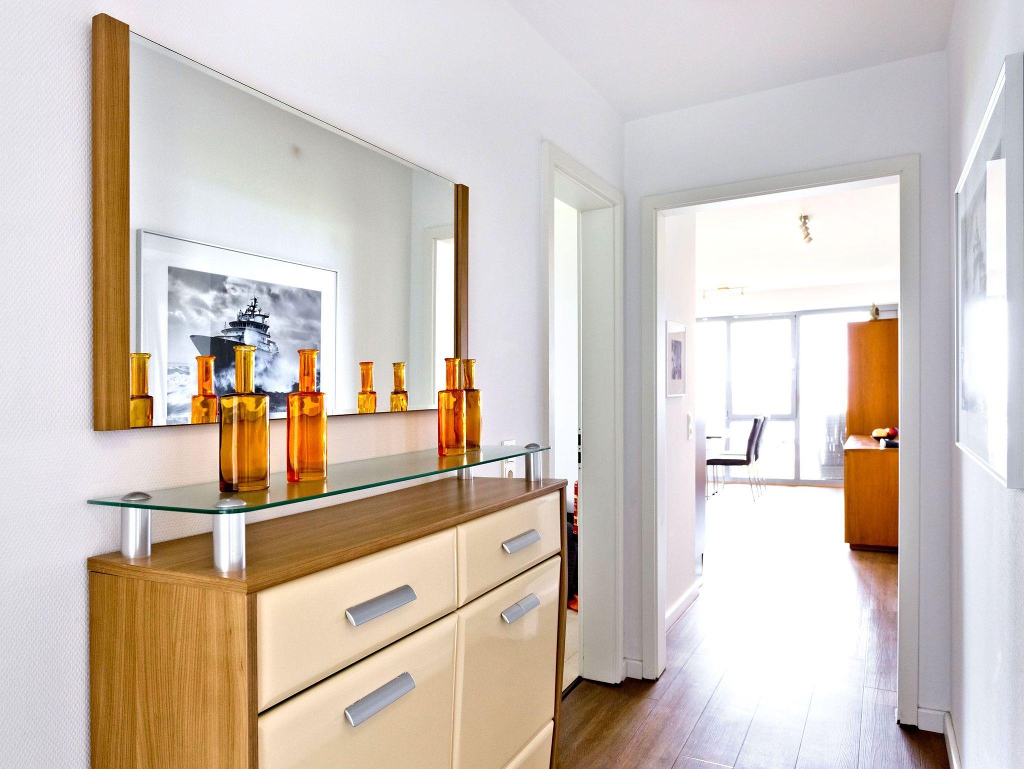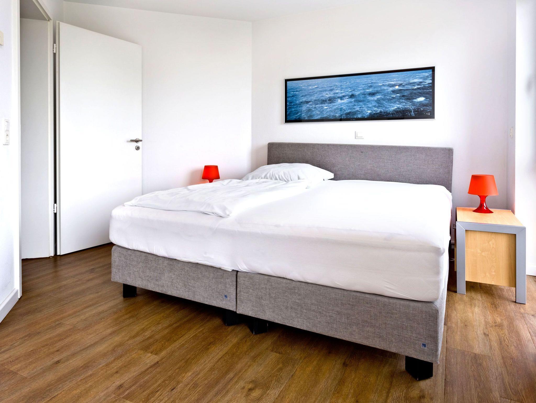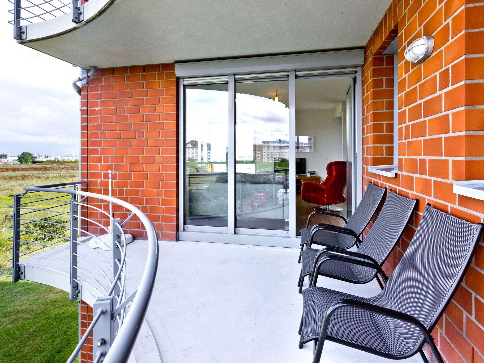 Aus allen drei Räumen dieser 105m² Wohnung in der 1.Etage haben Sie die Traumseesicht auf den Weltschifffahrtsweg. 2 Schlafzimmer jeweils mit Doppelbett (Boxspringbett), Bad/Du/Wc, Gäste-WC, großes Wohnzimmer mit komplett ausgestatteter Küchenzeile, 2xKabel/TV/DVD, 2 Balkone (nord+süd) mit Balkonmöbeln und Sonnenschirm (saisonabhängig). Alle Räume sind hochwertig gestaltet und verfügen über Rollladen. Wama i.d. Whg. Zur Wohnung gehört ein nummerierter Stellplatz auf dem Außengelände. Nichtraucher und keine Haustiere.