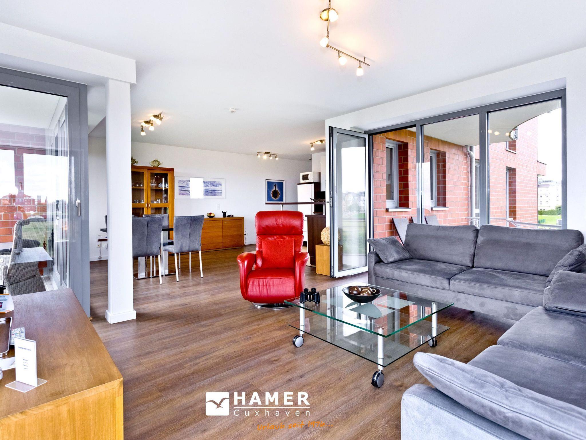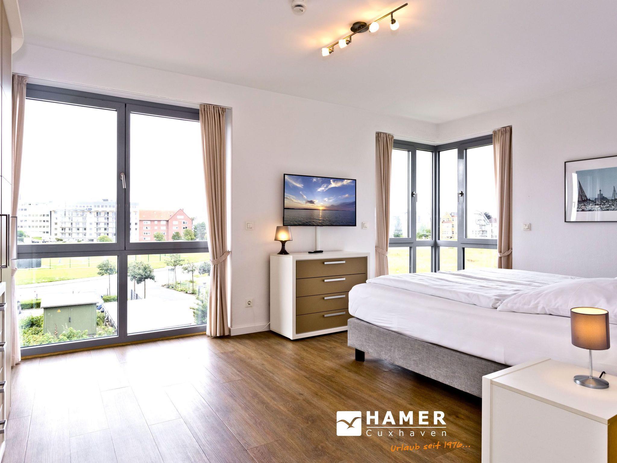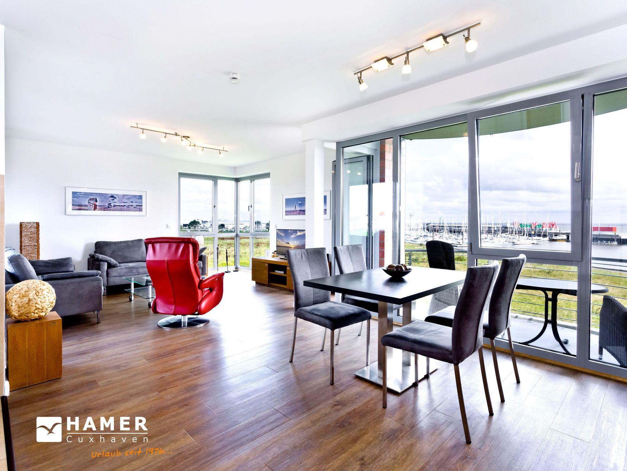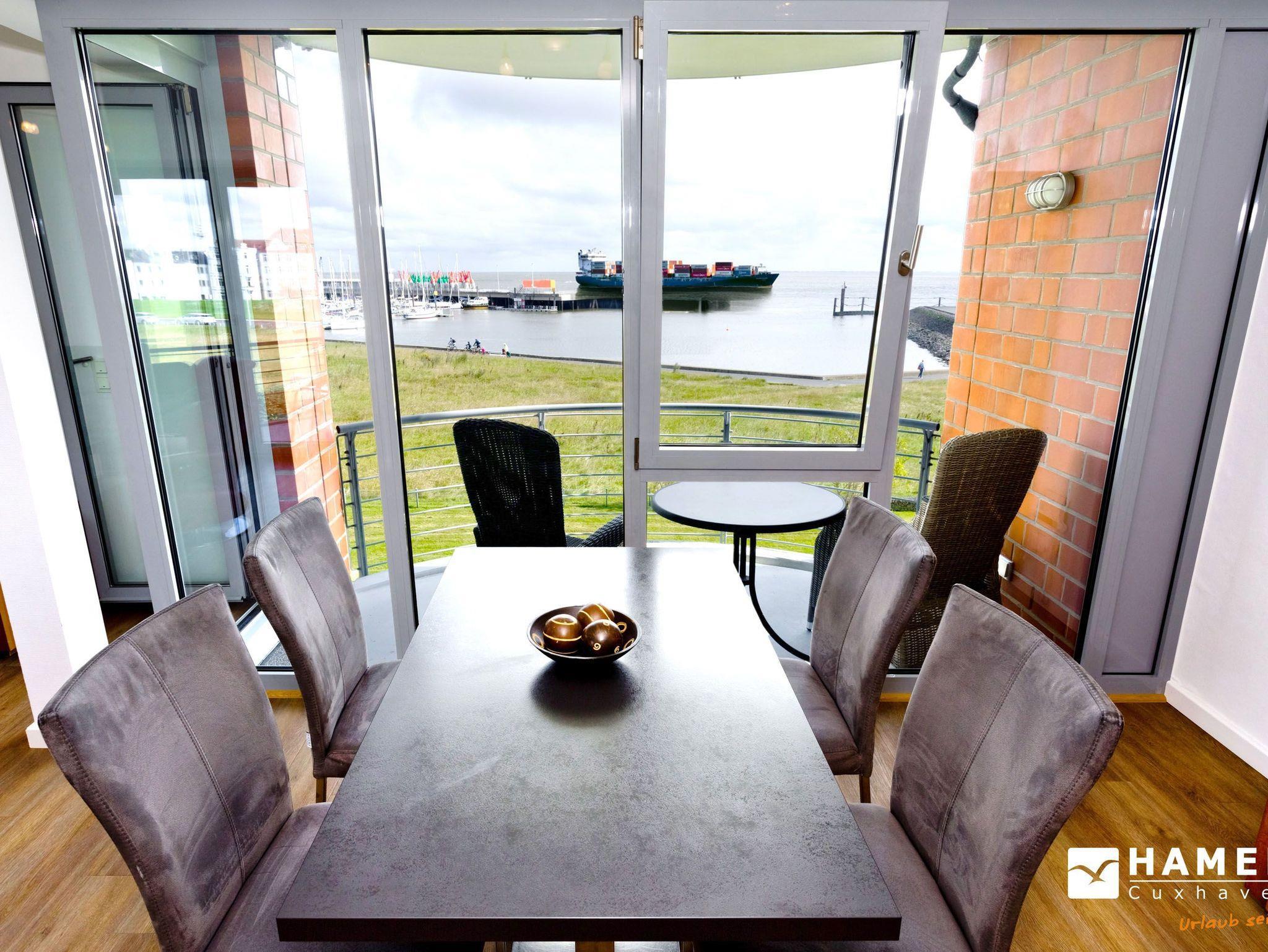 Genießen Sie 105m² Luxuswohnung mit traumhaftem Seeblick auf den Weltschifffahrtsweg in Cuxhaven.