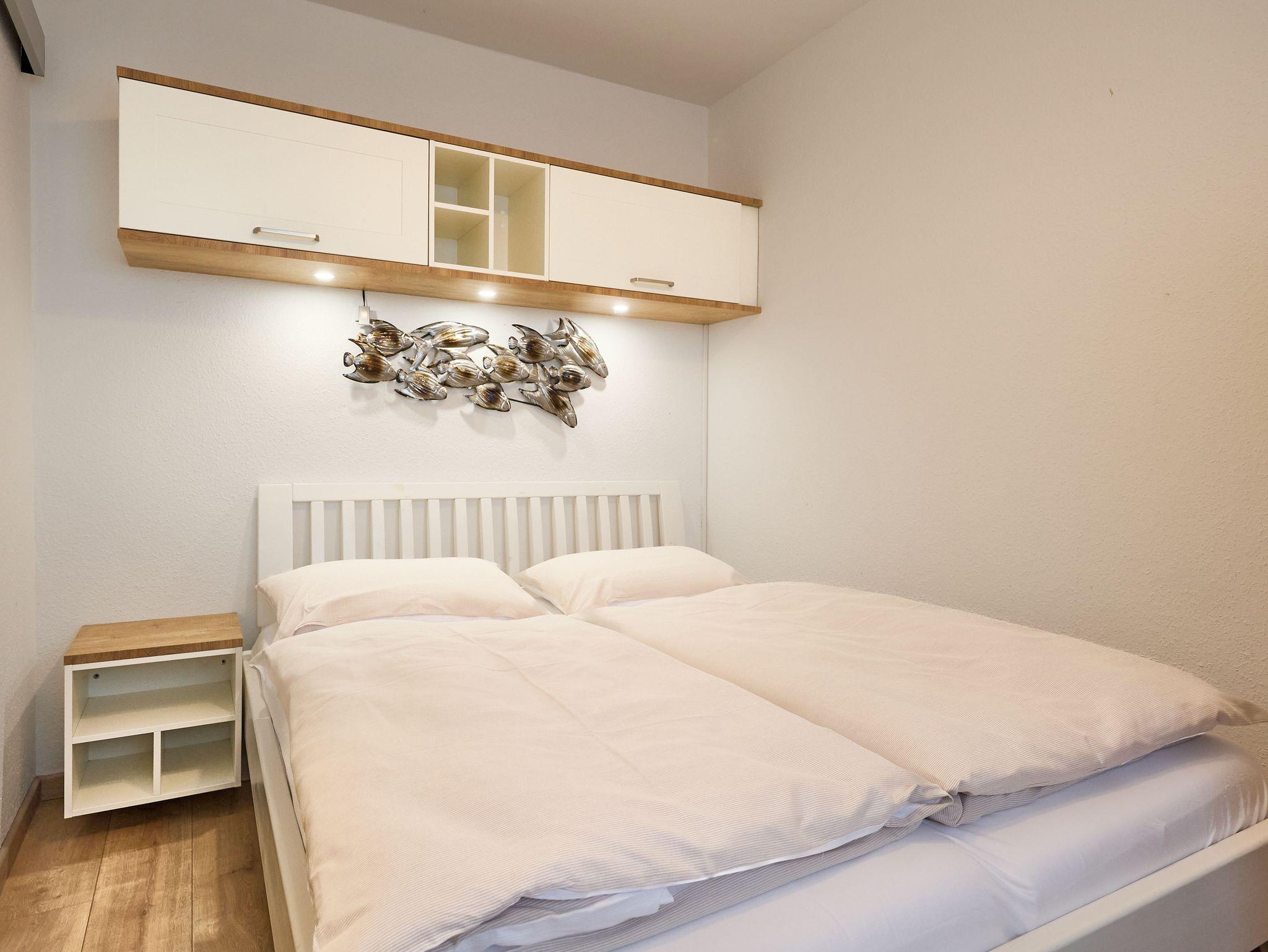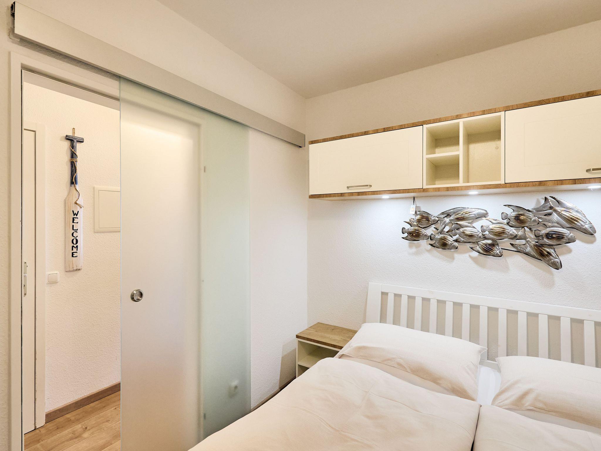 Das separate Schlafzimmer ermöglicht erholsamen Schlaf und bietet ausreichend Stauraum für Gepäck.