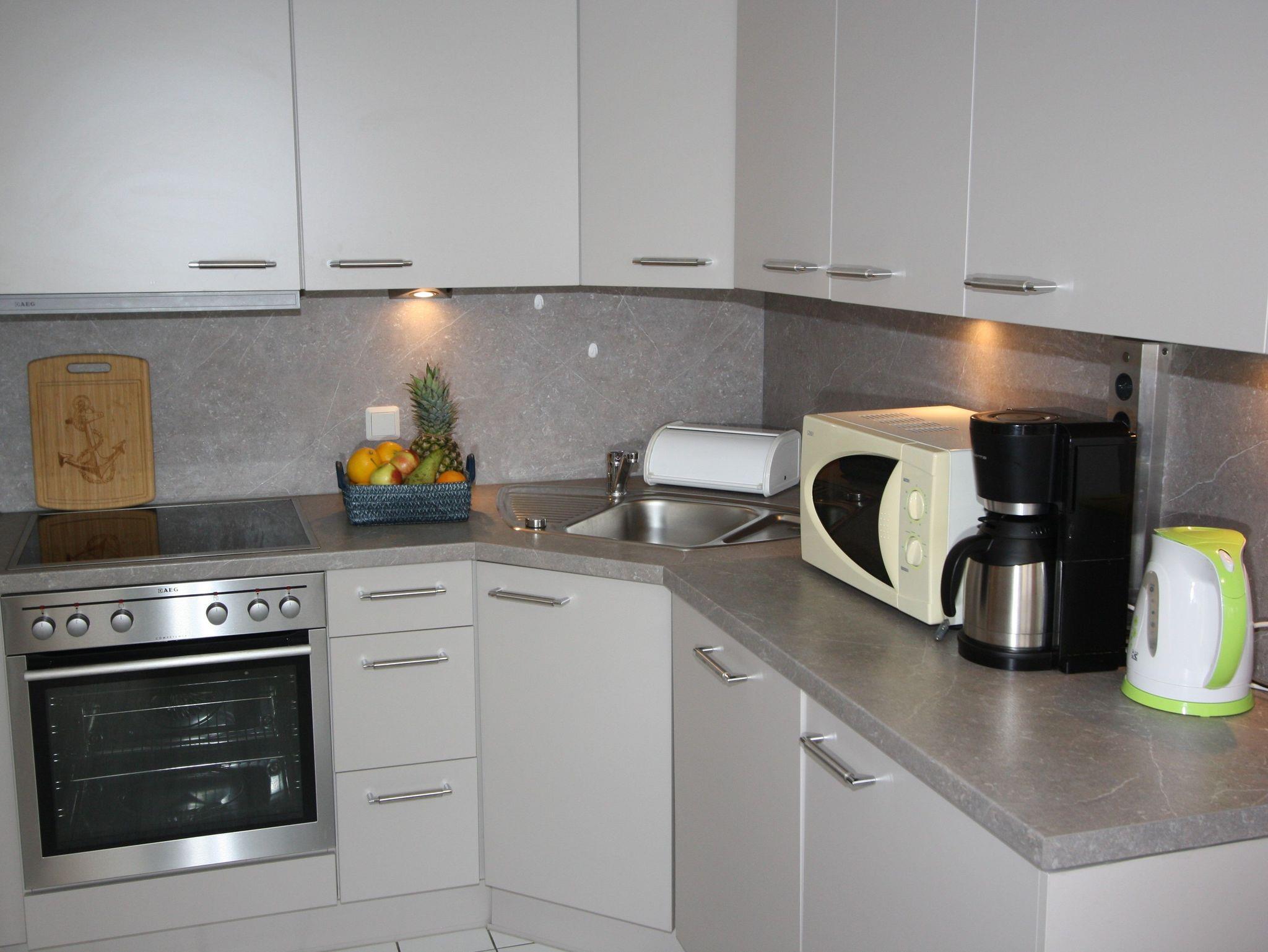 Sie wohnen in einem großzügigen 2-Zimmer-Appartement für bis zu 4 Personen auf 53 m² Wohnfläche im 2. Obergeschoss: ein separates Schlafzimmer mit zwei Einzelbetten, Wohnraum mit integriertem Schlafbereich und Doppelbett, Flachbild-TV, HiFi-Anlage, DVD-Player, separater Essplatz, voll ausgestatteter Küchenbereich mit Geschirrspüler, Ceranfeld, Backofen und Mikrowelle. Dusche/WC, Süd-Balkon, Tresor, WLAN.