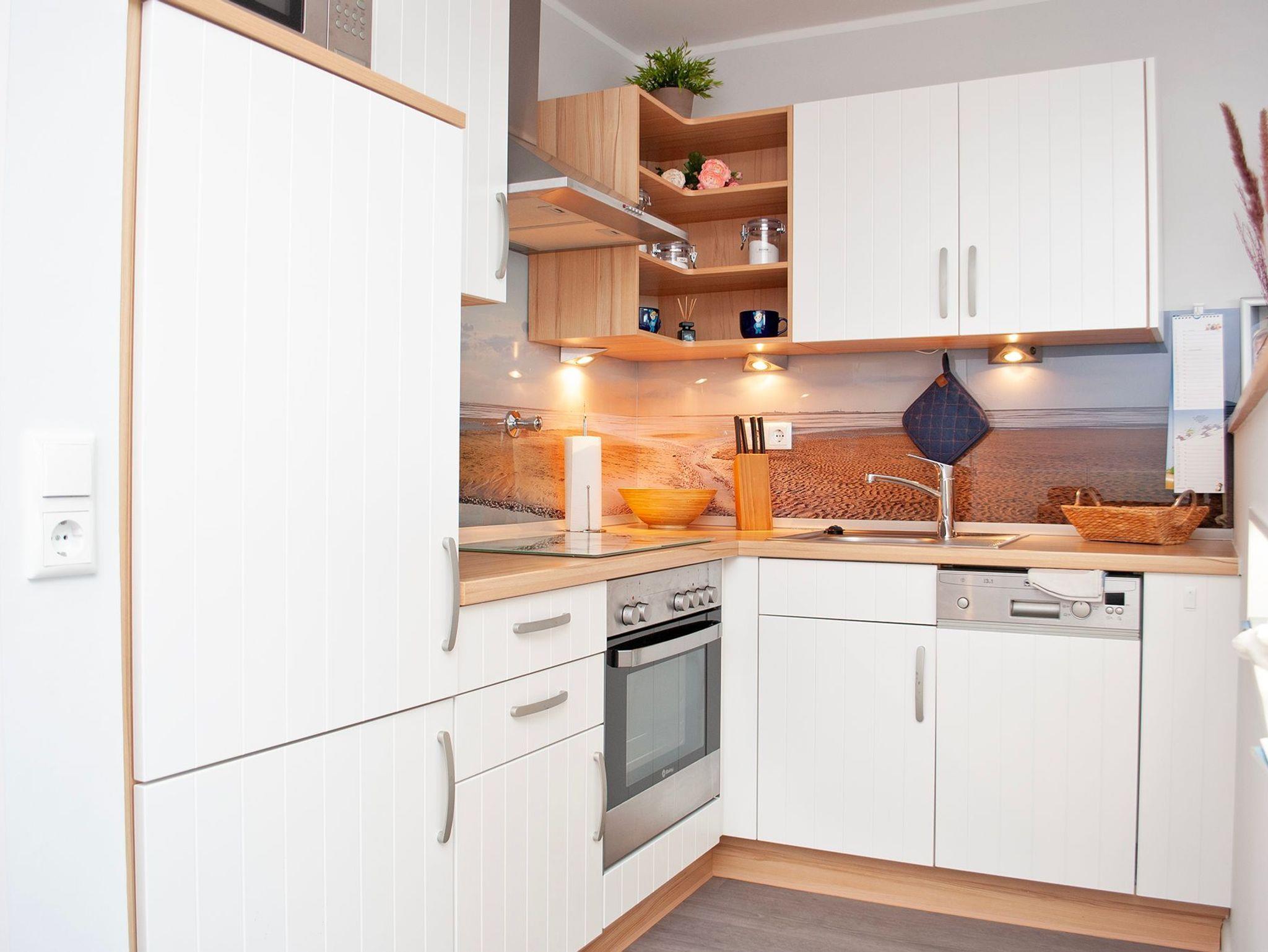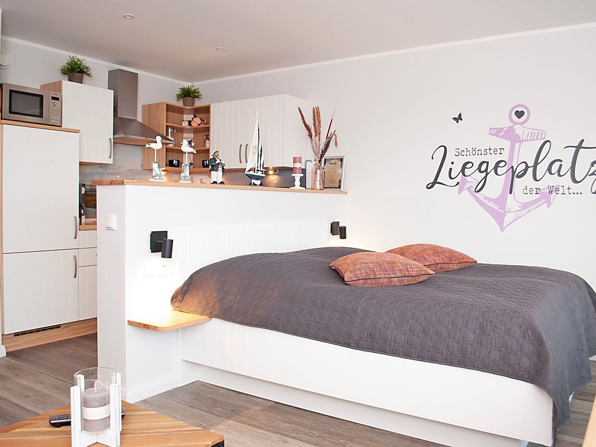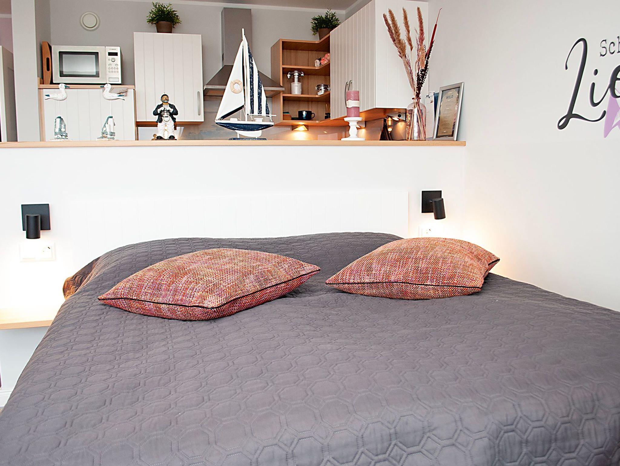 Das Apartment besteht aus einem Wohnbereich mit franz.bett für 2 Personen und einem Badezimmer mit Dusche sowie WC. Die Ferienwohnung beinhaltet eine voll ausgestattete offene Küche.