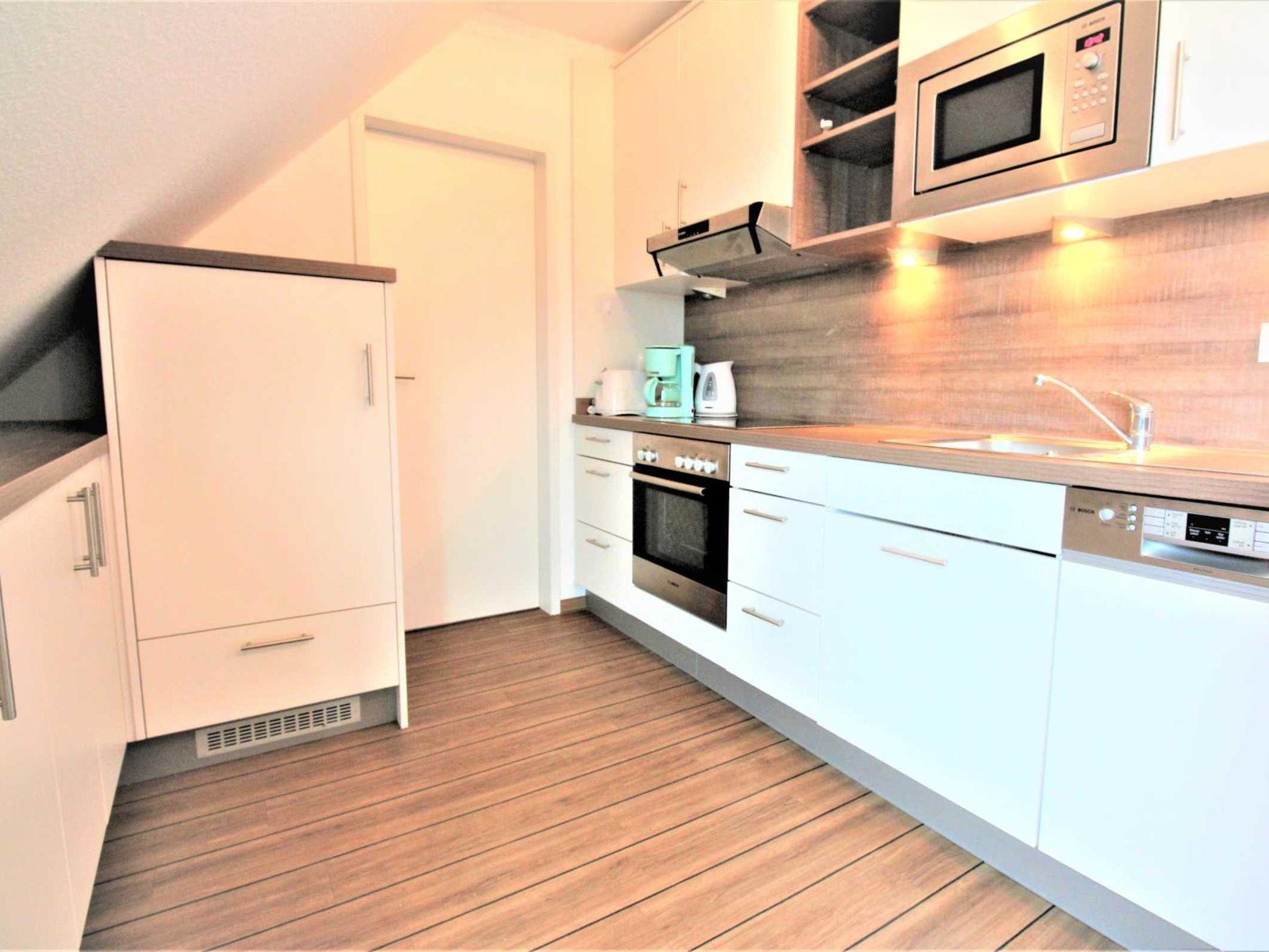 Sie erwartet eine moderne, nach Südwesten ausgerichtete Galeriewohnung mit 75 m² Wohnfläche. Im 4. OG und ruhig gelegen, Sonne den ganzen Tag und in unmittelbarer Nähe zum Strand sowie zum Ortskern.