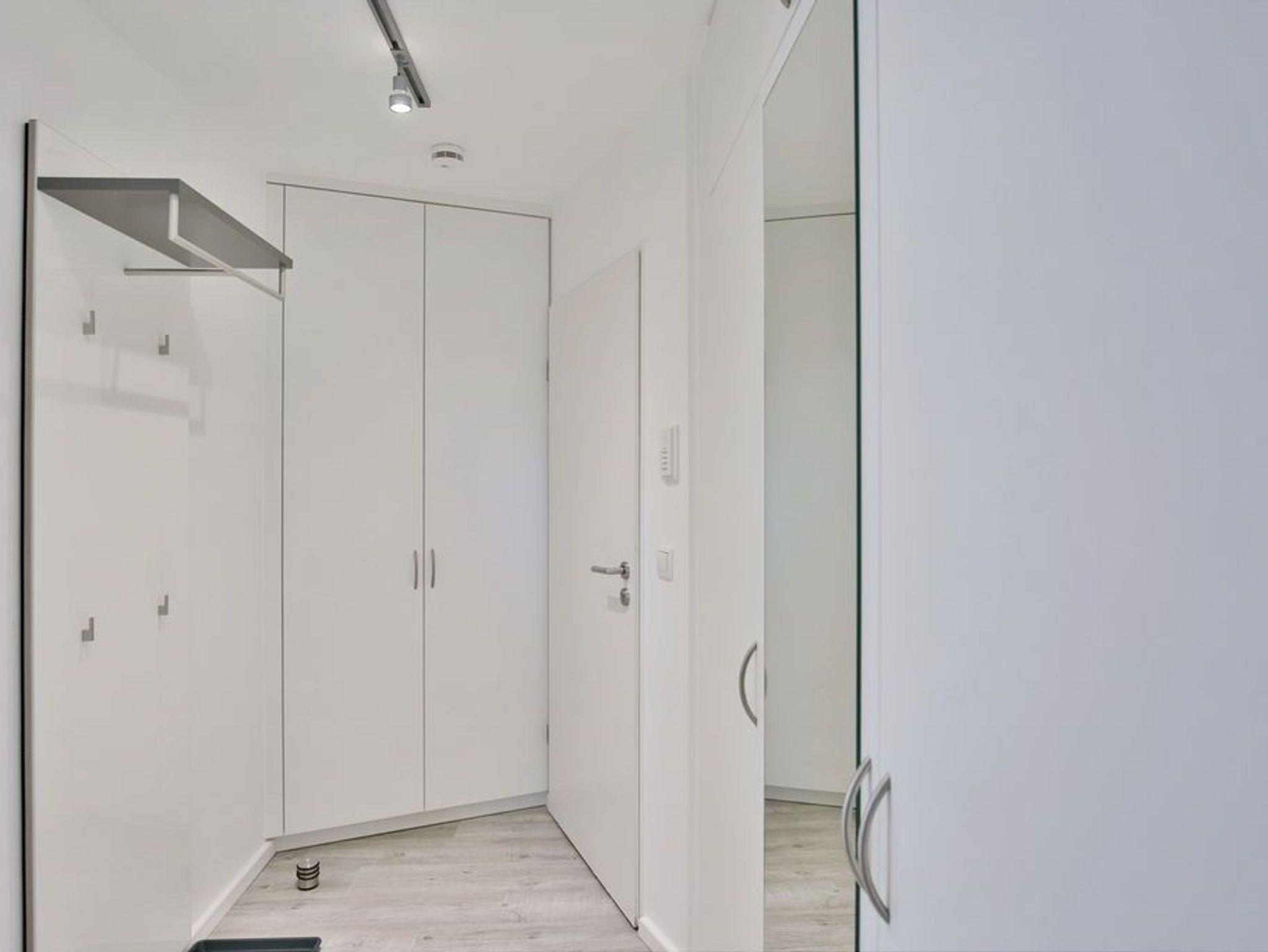 2-Raum-Eckwohnung auf ca. 42m², Nichtraucher, 3. Etage, komplett ausgestattet für 2 Pers., 1 Schlafzimmer mit 2 Einzelbetten (1,90m), 1 kombiniertes Wohn/Schlafzimmer mit Doppelbetteckcouch, Sat-TV, kostenloses W-Lan, neue Küchenzeile mit Gefrierf. u. Mikrowelle, Dusche/WC, Flur, Balkon (ost) mit Seesicht, keine Haustiere, Tiefgaragenstellplatz #301.