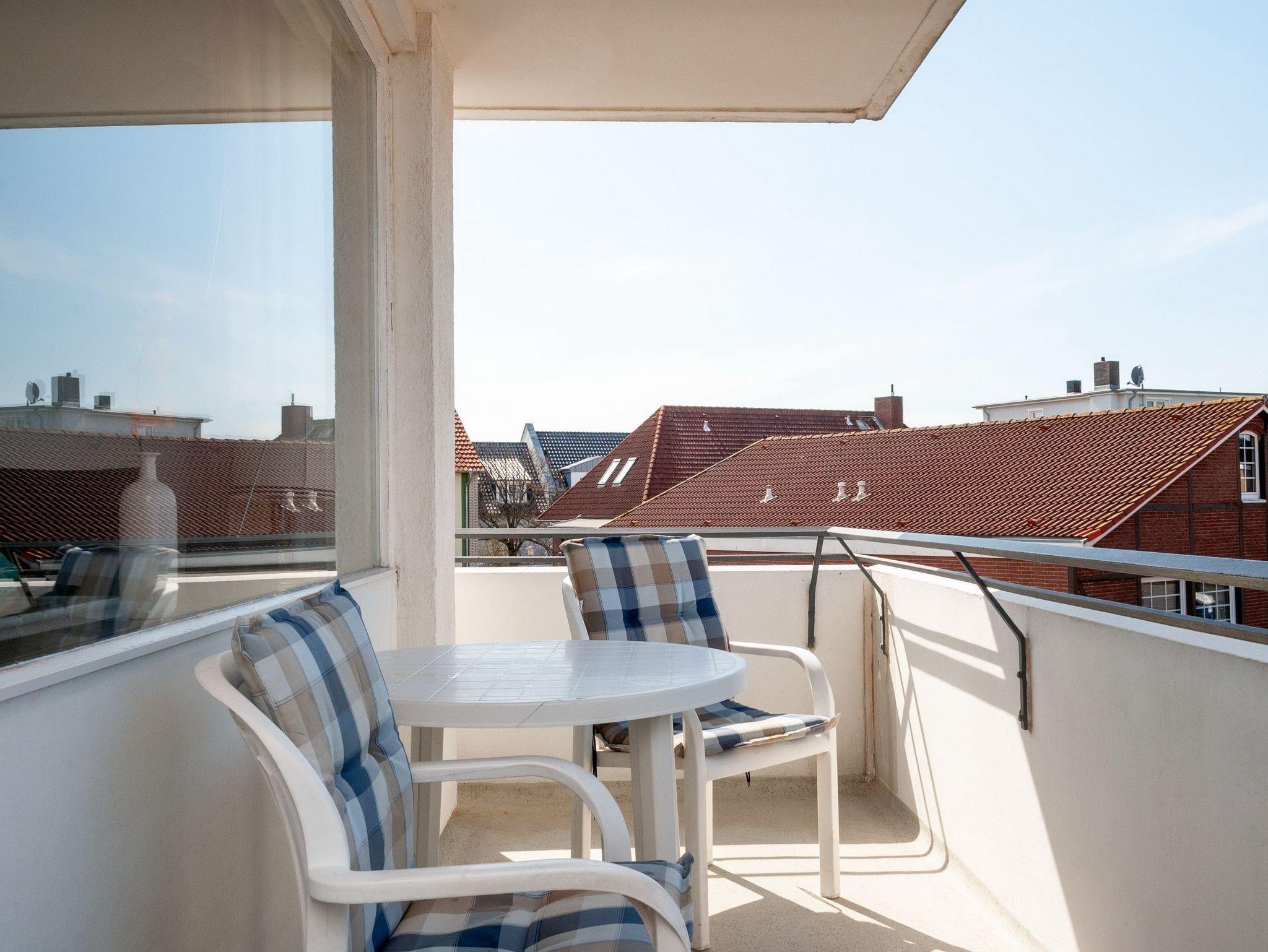 Das Apartment 201 ist ein 2-Raum-Apartment im 2. Obergeschoss für bis zu 4 Personen mit 50 qm. Der Westbalkon mit Meerblick bietet Ihnen vormittags Schatten und nachmittags Sonne .