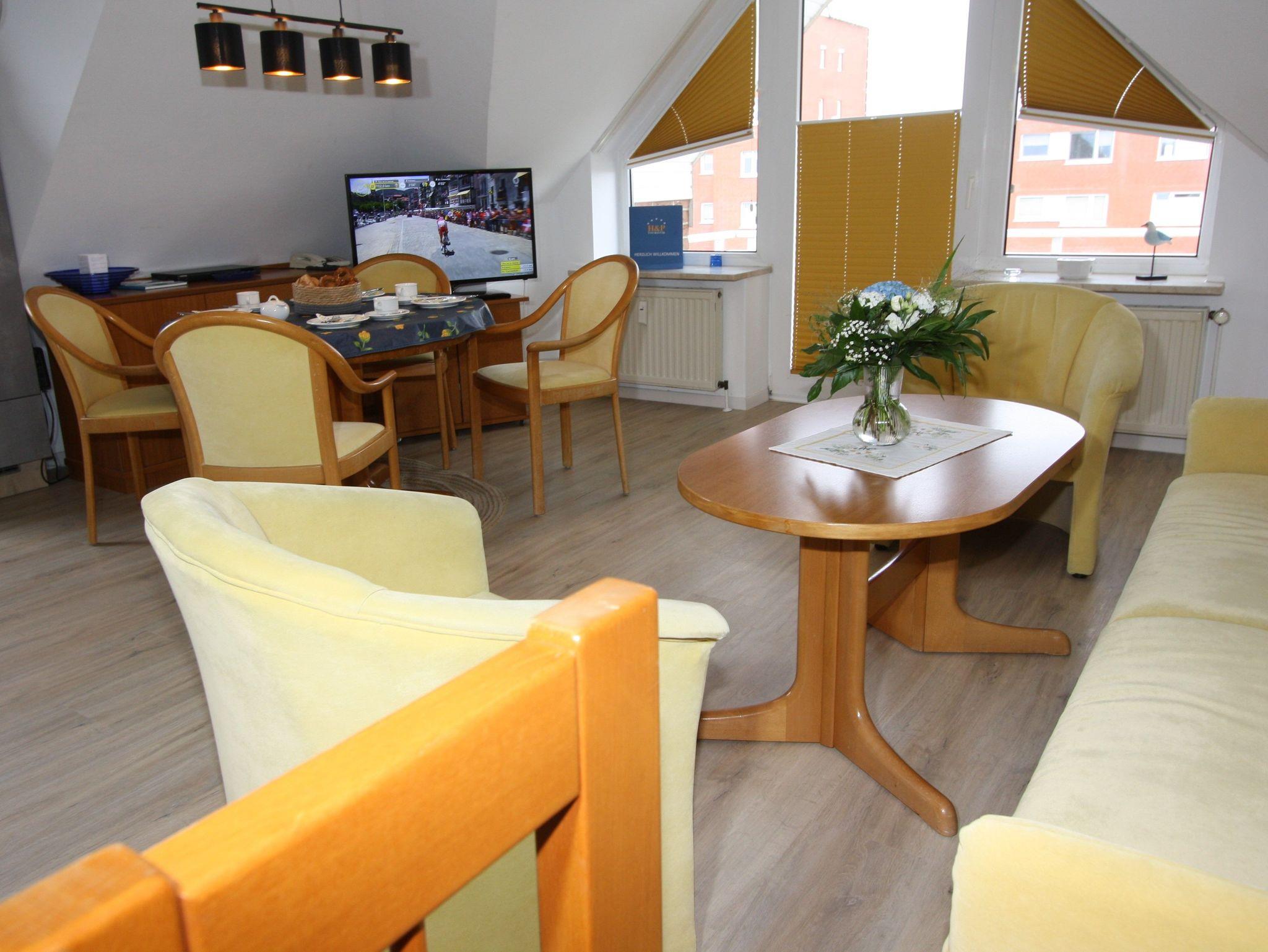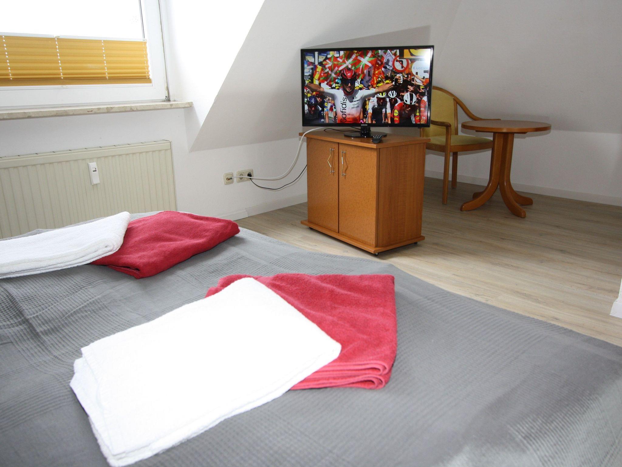 Jeder Raum verfügt über einen Flachbildschirm mit Sat, ab September 2023 steht wieder Internet zur Verfügung. Im oberen Kleiderschrank ist ein Safe nutzbar.