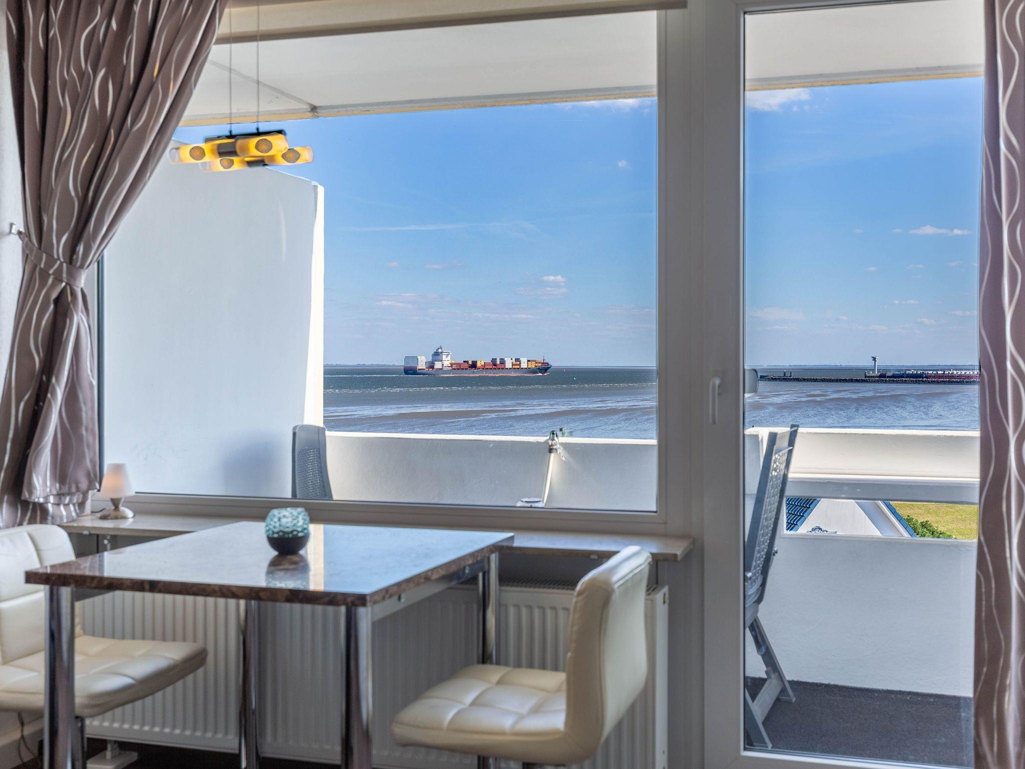 Erleben Sie in der Ferienwohnung Nautic 505 in Cuxhaven traumhaften Meerblick und entspannen im hauseigenen Schwimmbad und Sauna.