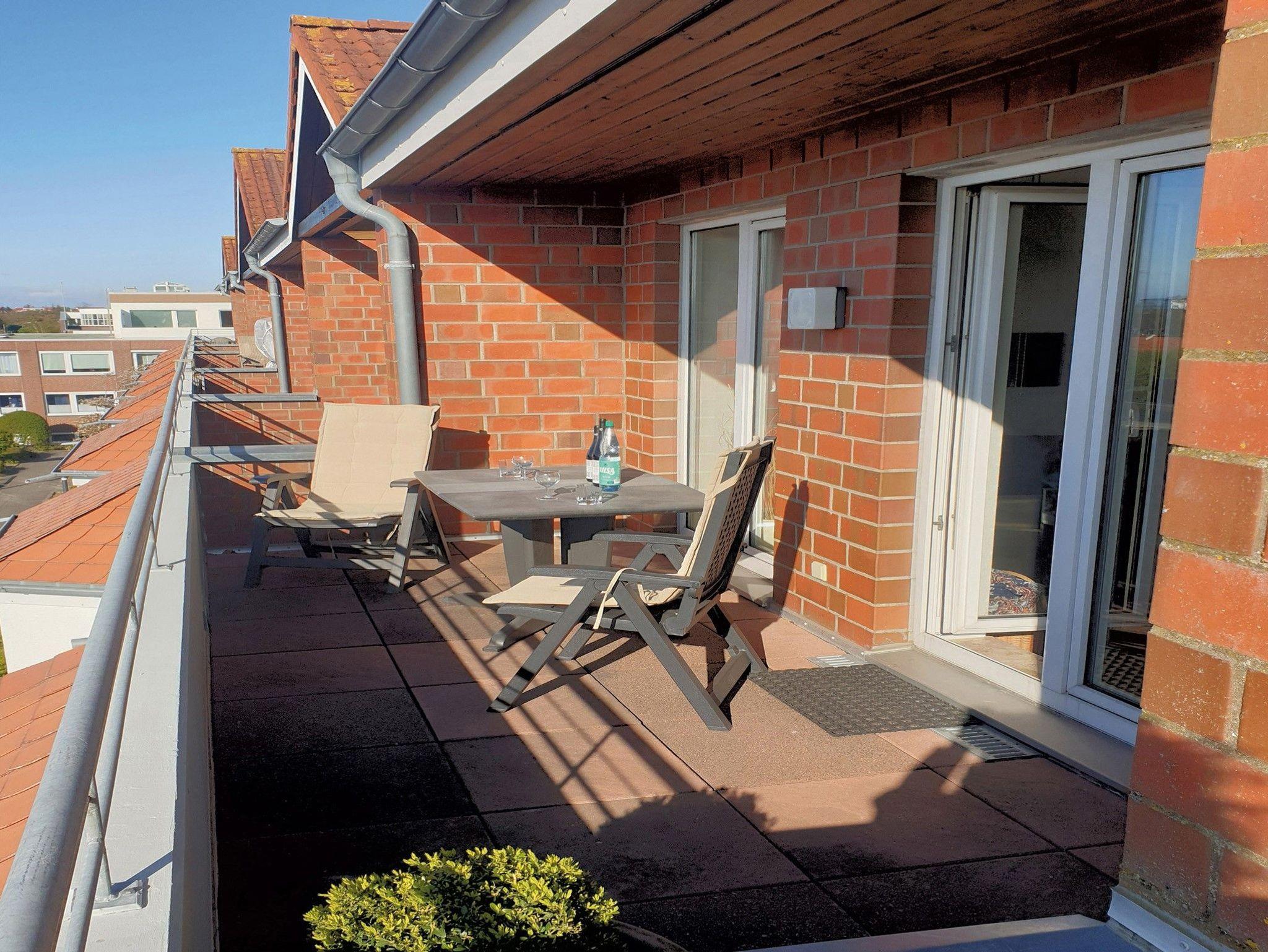 Die moderne Ferienwohnung in Cuxhaven bietet eine sonnige Dachterrasse und zahlreiche Freizeiteinrichtungen für einen erholsamen Nordseeurlaub.