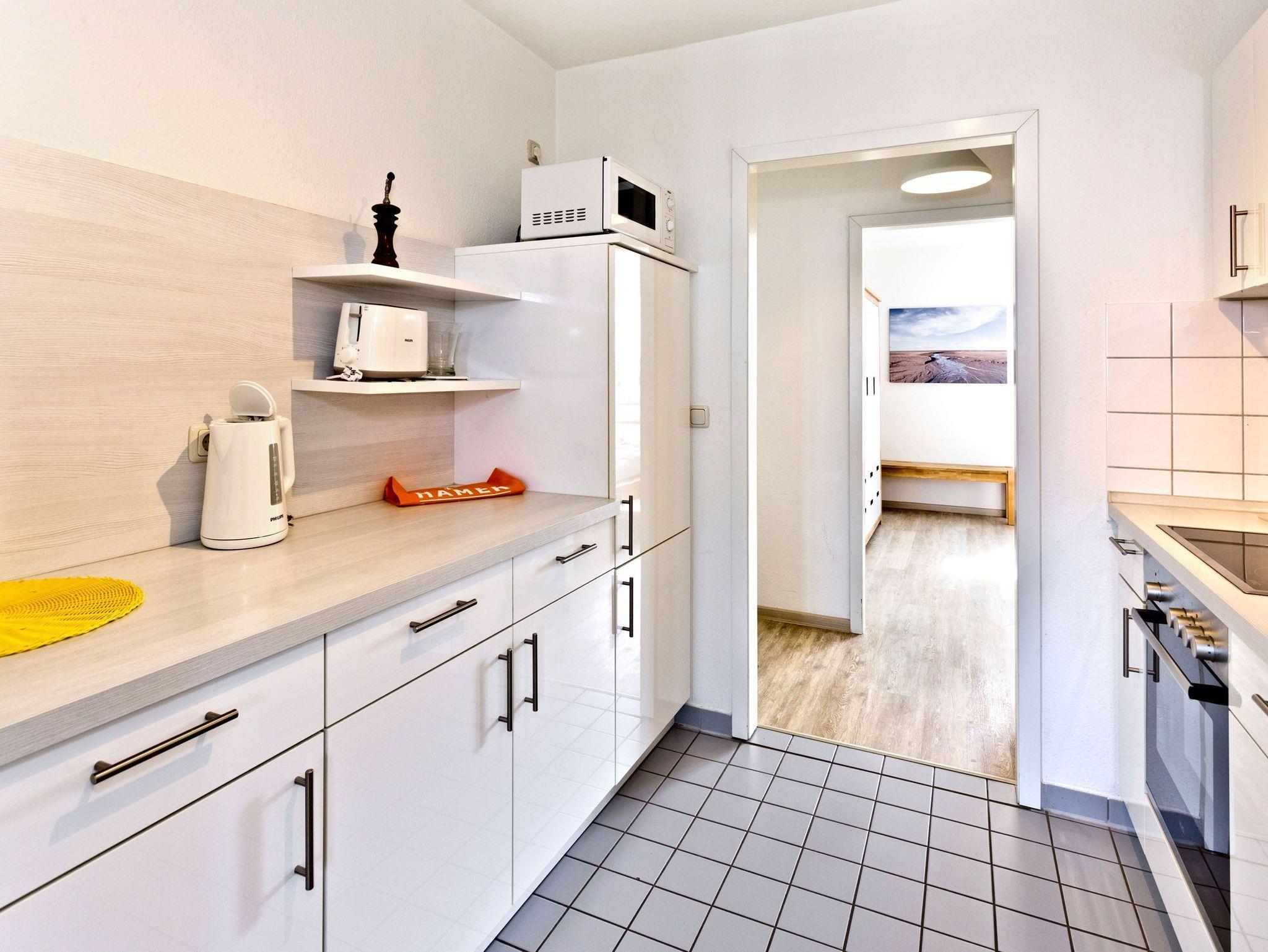 Großzügige 2-Raum-Wohnung für 2 Personen auf der 1. Etage (mit Aufzug) mit voller Seesicht bis hin zur Kugelbake. Wohnzimmer mit großzügigem Sofa, Kabel-TV, Radio, und Essplatz. Separate Küche inkl. Geschirrspüler, kleiner überdachter Balkon zur See (Nordseite), großes Schlafzimmer, Bad/Dusche/WC, kostenfreies W-lan, Stellplatz #13 auf dem Außengelände. Nichtraucher und keine Haustiere.