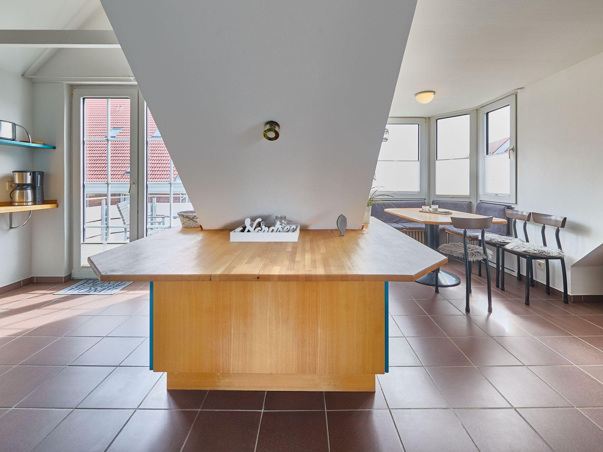 Zwei Sonnenbalkone laden dazu ein, die frische Nordseeluft in vollen Zügen zu genießen. Im Frühjahr und Herbst/Winter gewähren der Erker und der seitliche Balkon durch die umliegenden Bäume sogar einen kleinen Blick auf die Nordsee.
