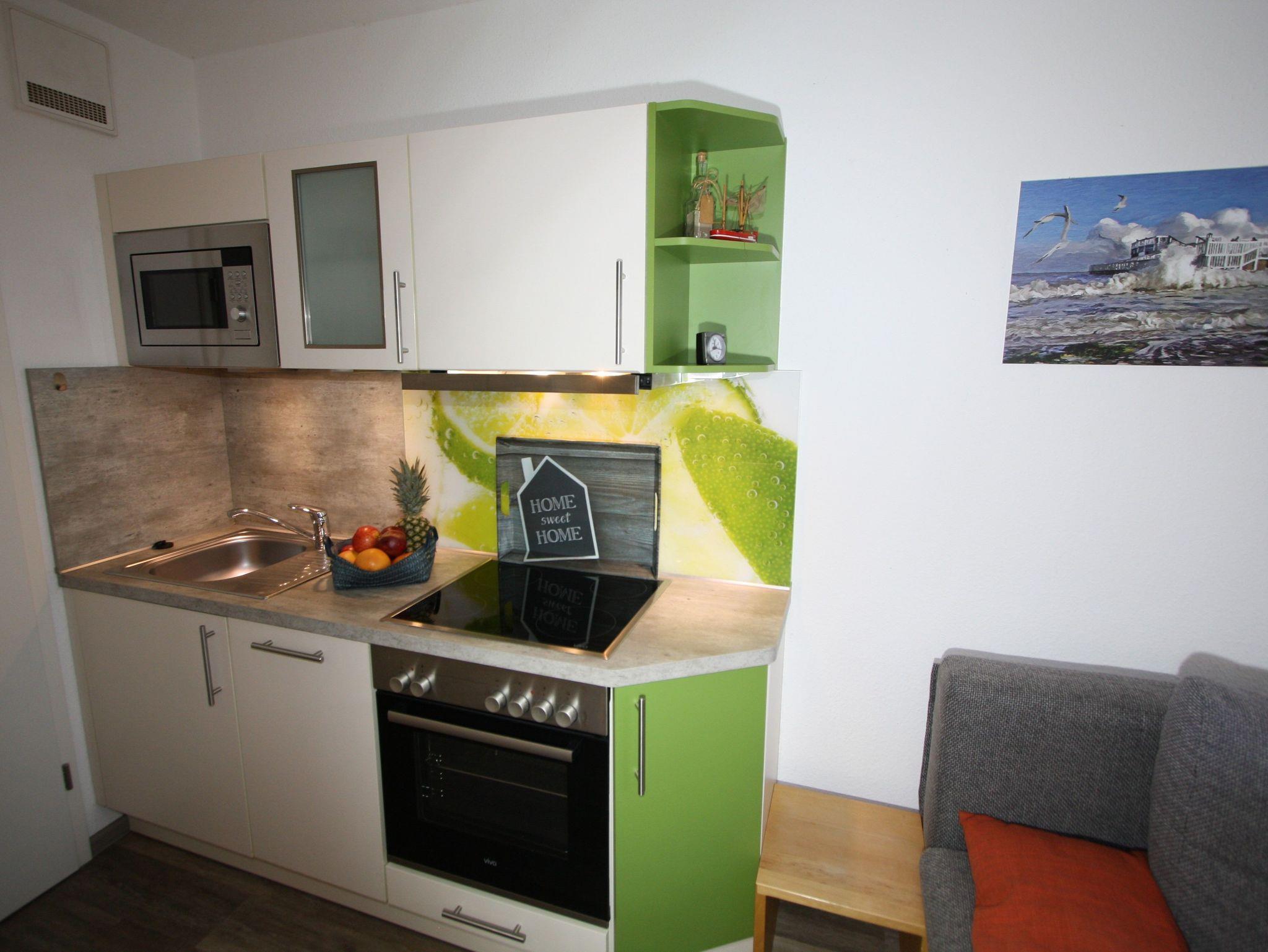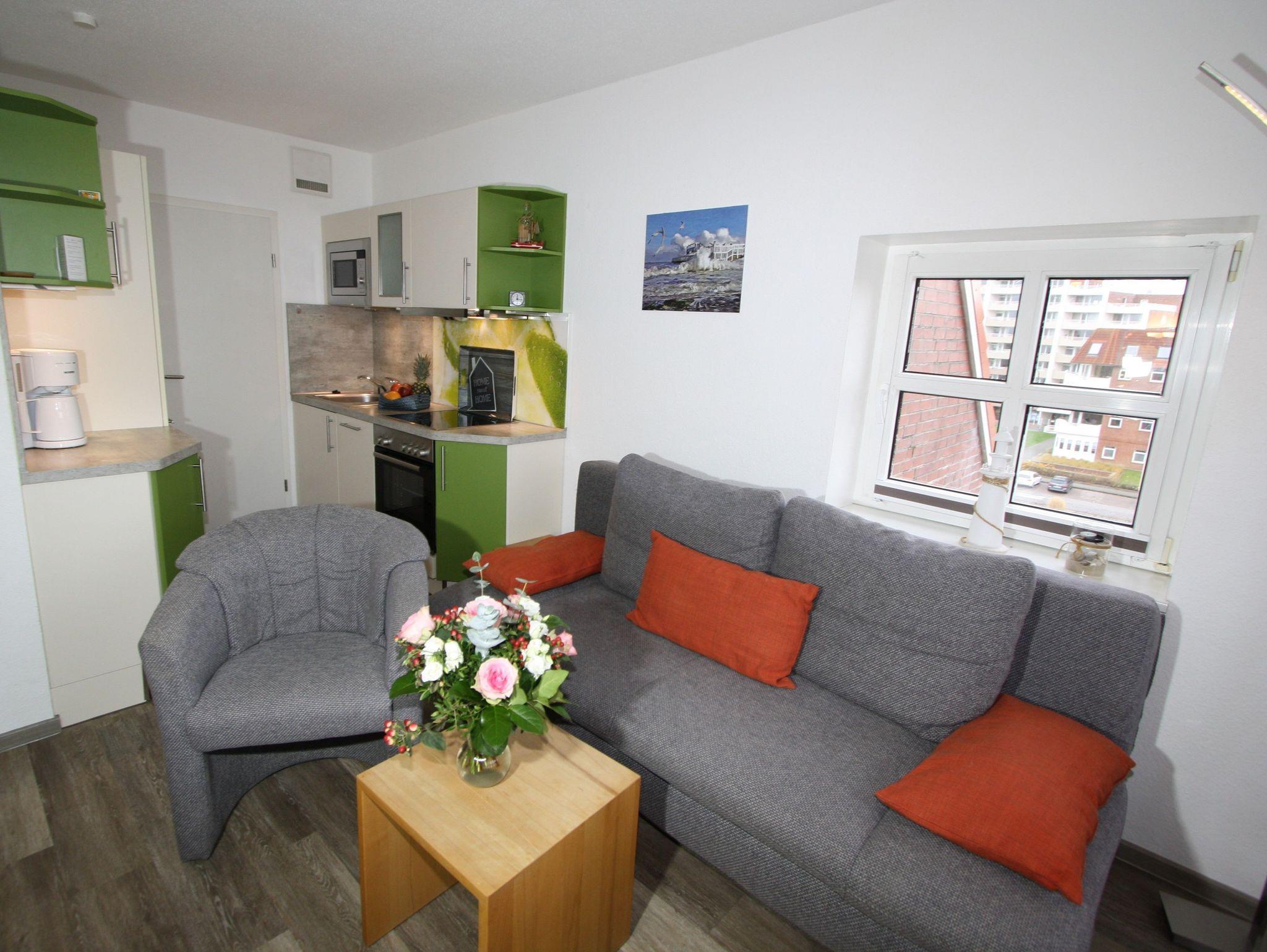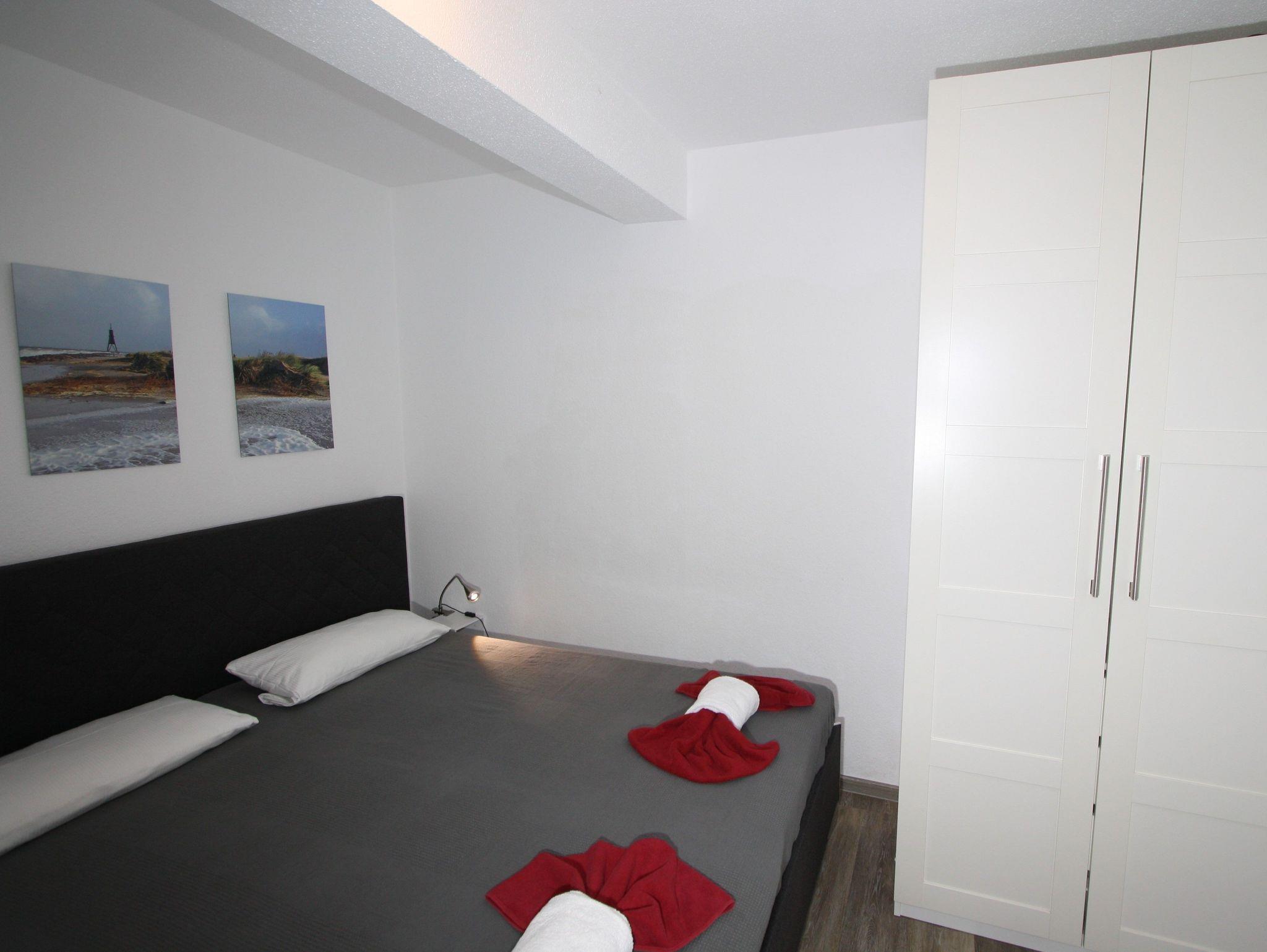 Sie wohnen in einem 2-Zimmer-Appartement mit ca. 41 m² im 4. OG. Diele mit Sitzbank und Garderobe, Wohnraum mit Schlafcouchund Kabel-Flachbild-TV, Stereo-Anlage und Blu-ray-Player, separater Essplatz, voll ausgestatteter Küchenbereich mit Ceranfeld, Backofen, Geschirrspüler und Mikrowelle mit Backofenfunktion, Schlafraum mit Doppelbett, 2. Flachbild-TV, modernes Bad mit Dusche/WC, überdachter Balkon mit Südausrichtung. In der Wohnung befindet sich ebenfalls ein großer Abstellraum. Kostenloser Parkplatz vorhanden vor demParkdeck.