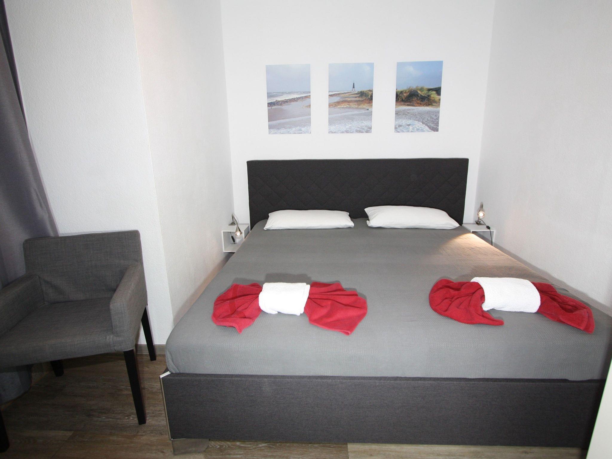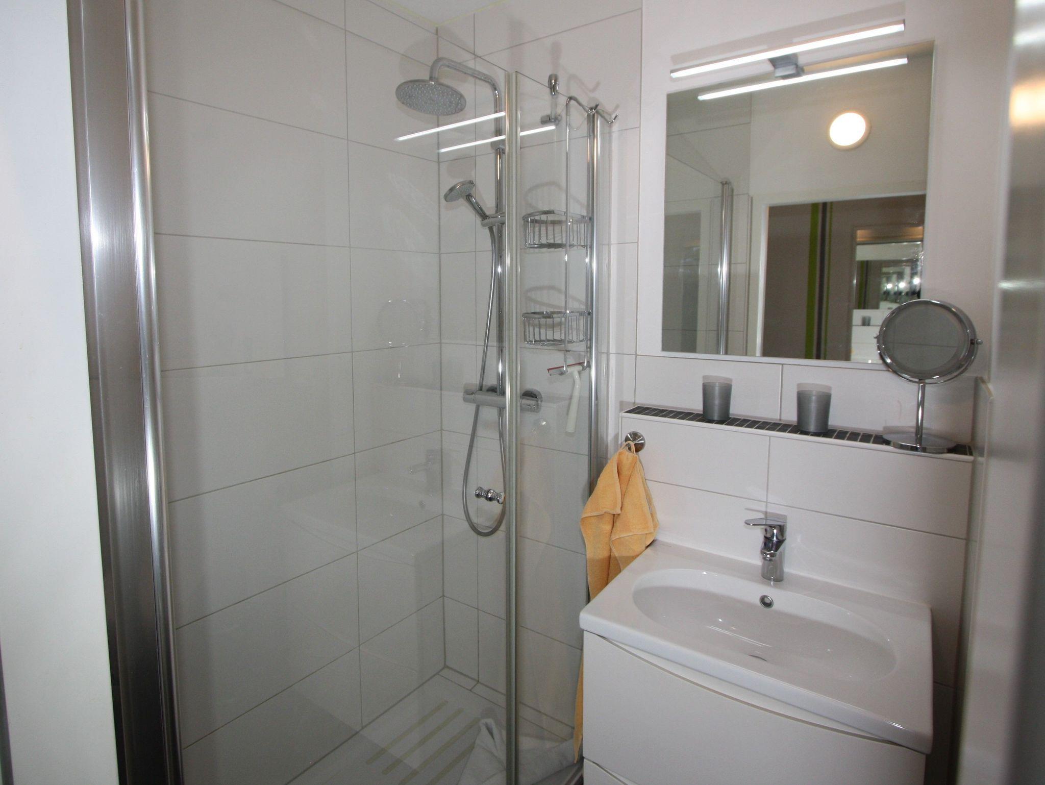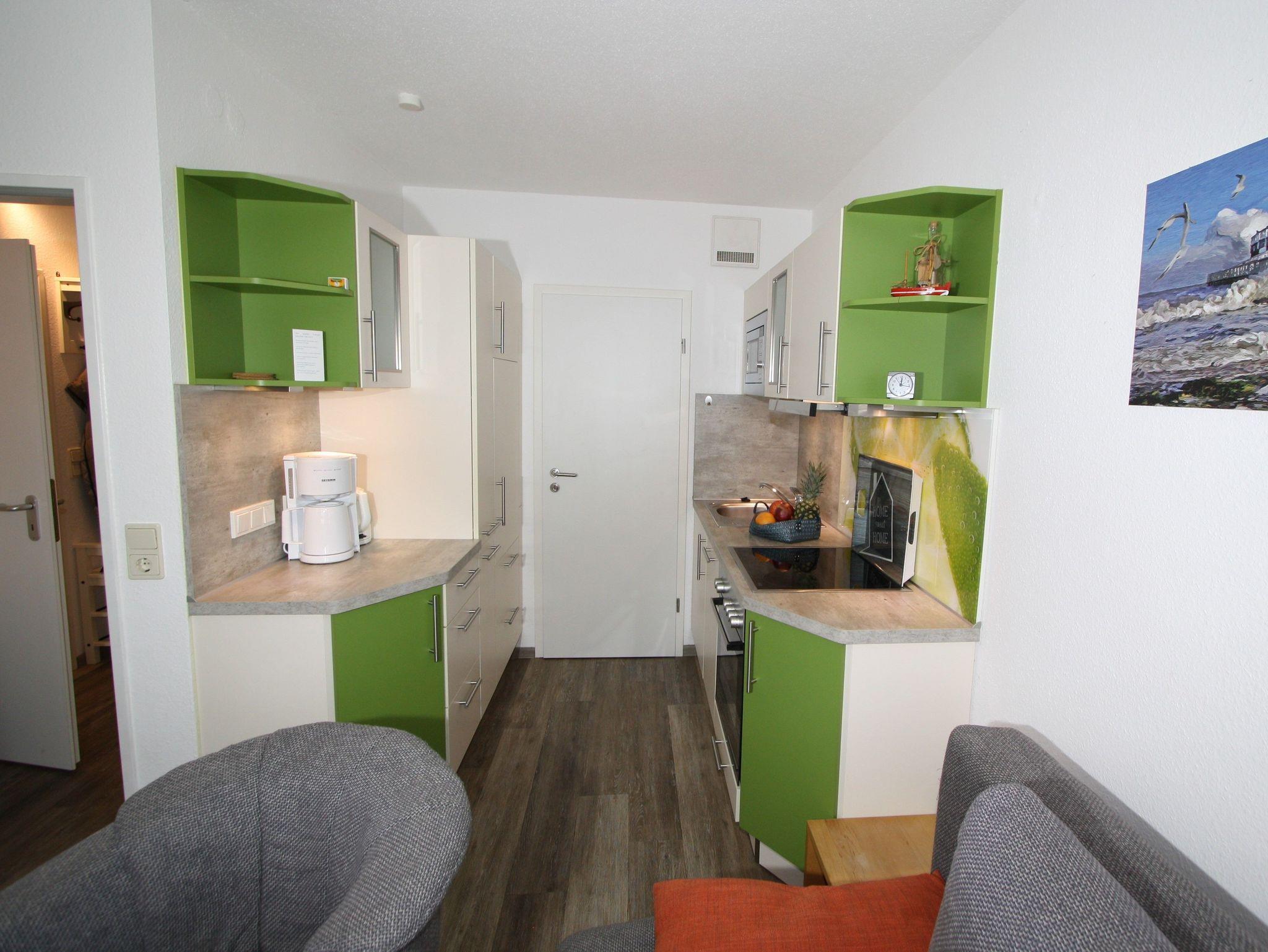 Sie wohnen in einem 2-Zimmer-Appartement mit ca. 41 m² im 4. OG. Diele mit Sitzbank und Garderobe, Wohnraum mit Schlafcouchund Kabel-Flachbild-TV, Stereo-Anlage und Blu-ray-Player, separater Essplatz, voll ausgestatteter Küchenbereich mit Ceranfeld, Backofen, Geschirrspüler und Mikrowelle mit Backofenfunktion, Schlafraum mit Doppelbett, 2. Flachbild-TV, modernes Bad mit Dusche/WC, überdachter Balkon mit Südausrichtung. In der Wohnung befindet sich ebenfalls ein großer Abstellraum. Kostenloser Parkplatz vorhanden vor demParkdeck.