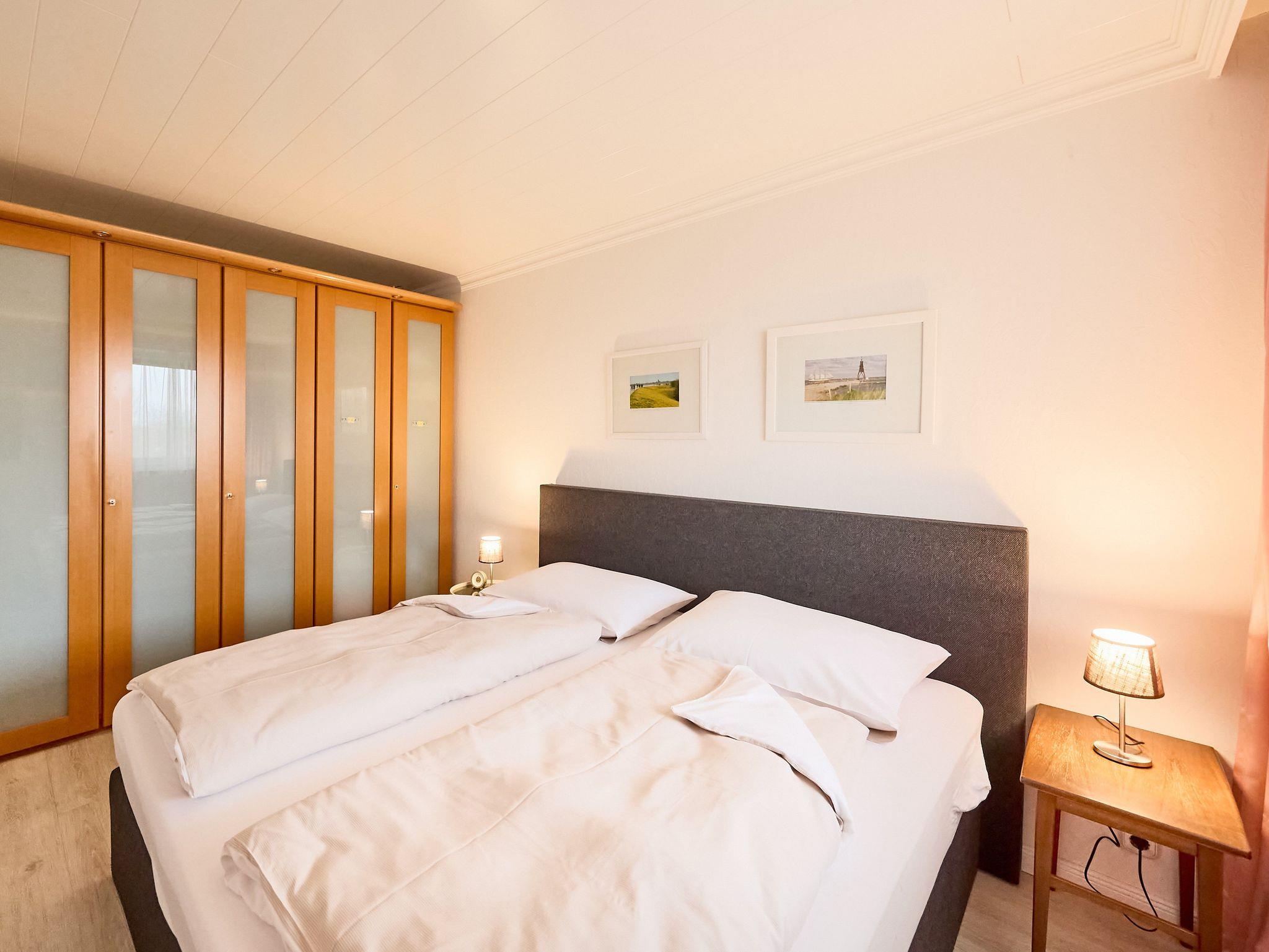 In der separaten Küche finden Sie eine komfortable Ausstattung, inklusive Kühlschrank mit Gefrierfach perfekt, um sich auf das erste Urlaubsmenü zu freuen. Ob Sie am Esstisch, mit direkter Seesicht im Wohnbereich speisen oder aber in der großen Diele am zweiten Essplatz, Sie werden in der Wohnung viel Platz vorfinden. Auch auf dem Balkon mit Meerblick können Sie eine Kaffeepause einlegen, die Möglichkeiten sind vielfältig. Im angrenzenden Schlafbereich erwartet Sie ein gemütliches Doppelbett und ein großzügiger Kleiderschrank. Die Fenster sind verdunkelbar, sodass Sie jederzeit in Ruhe schlafen können. Damit Sie die Wohnung auch komfortabel mit 3 Personen bewohnen können, steht Ihnen im Wohnbereich noch ein seitlich auszuklappendes Schrankbett mit einer hochwertigen Matratze zur Verfügung. Alle Betten sind bereits für Sie mit Wäsche bezogen. Ein Duschbad mit WC rundet den Komfort, neben einem Garderobenbereich im Eingangsbereich dieser Ferienwohnung ab.
