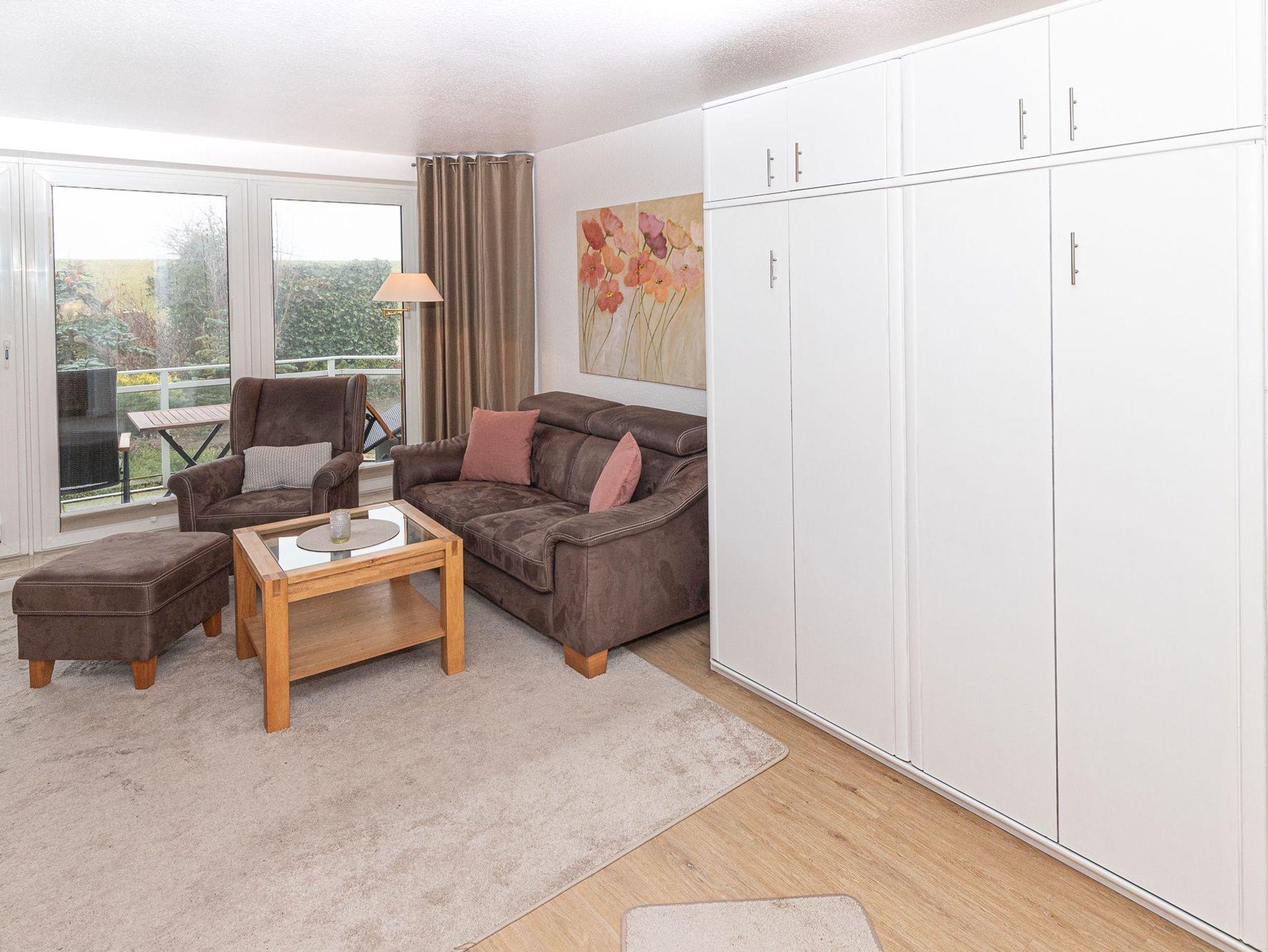 Direkt hinter dem Deich in Duhnen erwartet Sie eine komfortable Ferienwohnung auf ca. 40 m², die sich direkt am Dünenweg befindet. Diese gemütliche Unterkunft bietet Platz für maximal 2 Personen und verfügt über einen ansprechenden Wohnbereich.