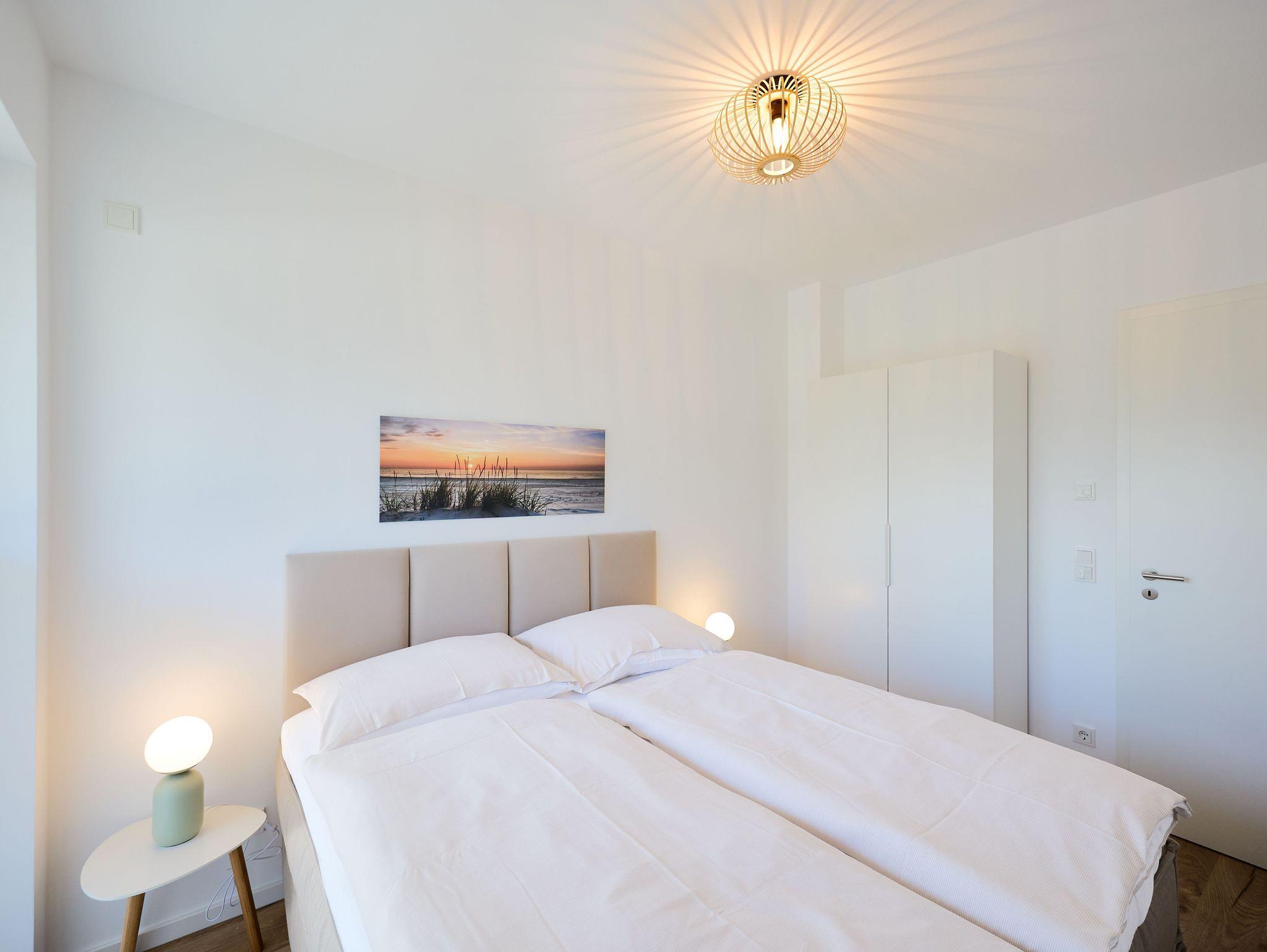 Zwei liebevoll eingerichtete Schlafzimmer sorgen für erholsamen Schlaf. Das erste Schlafzimmer ist mit einem komfortablen Boxspringbett (180 x 200 cm) und einem 50?? Flachbild-TV ausgestattet. Im zweiten Schlafzimmer erwartet Sie ein weiteres Boxspringbett (160 x 200 cm) sowie ein 43?? Flachbild-TV. Beide Räume bieten ausreichend Stauraum und sind in harmonischen, nordischen Farbtönen gestaltet.
