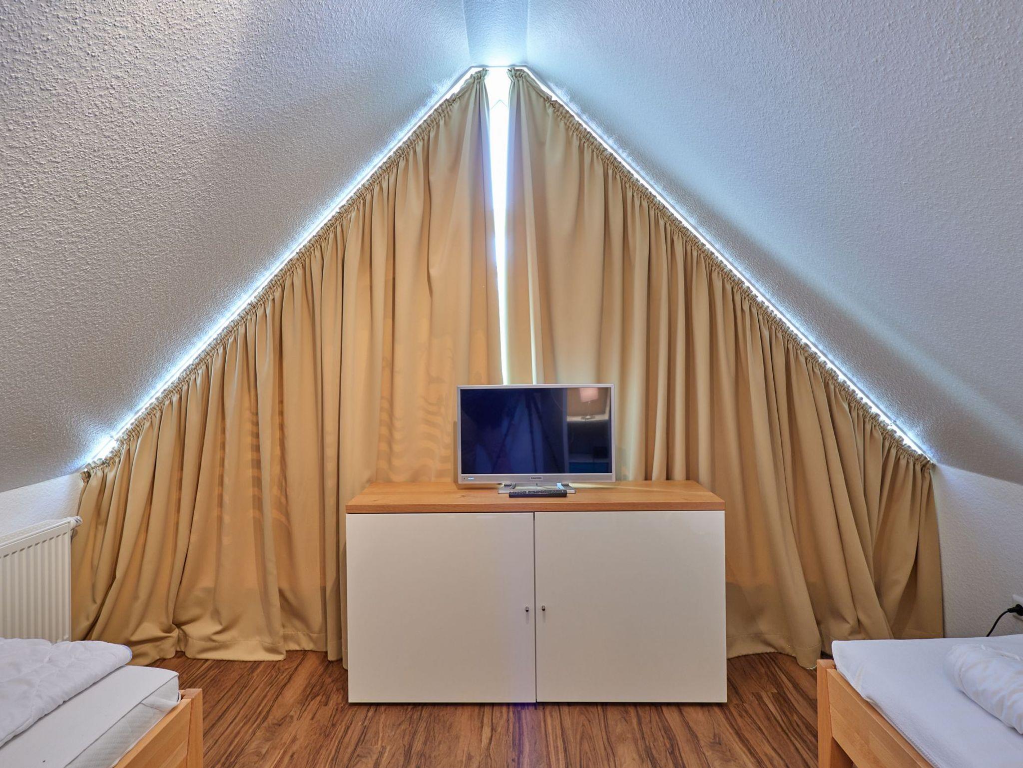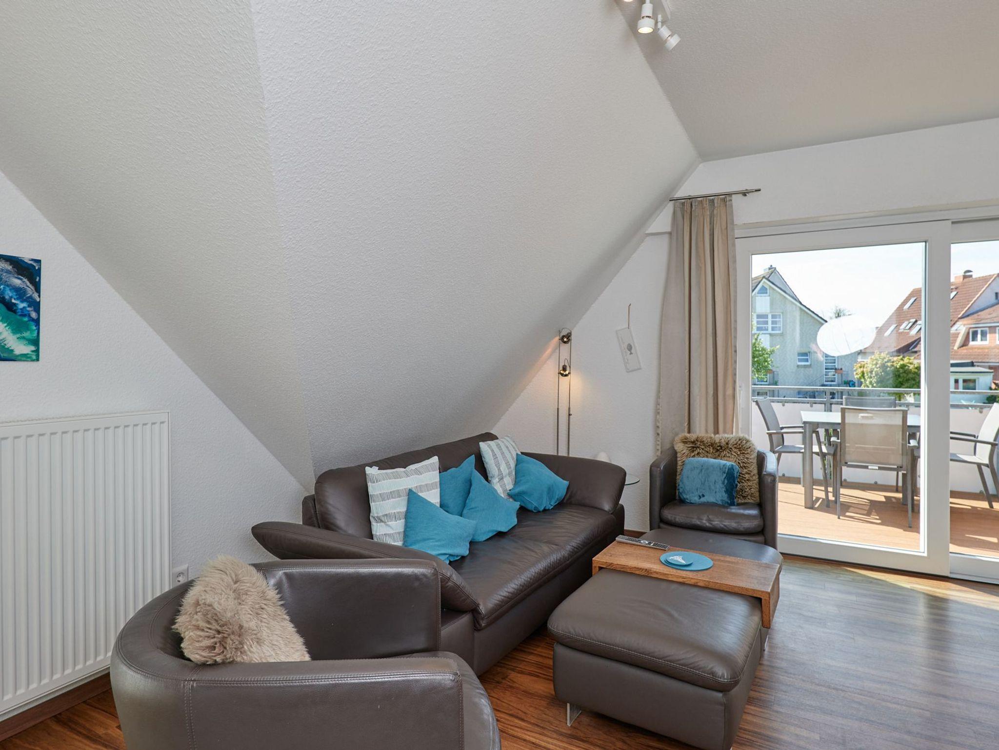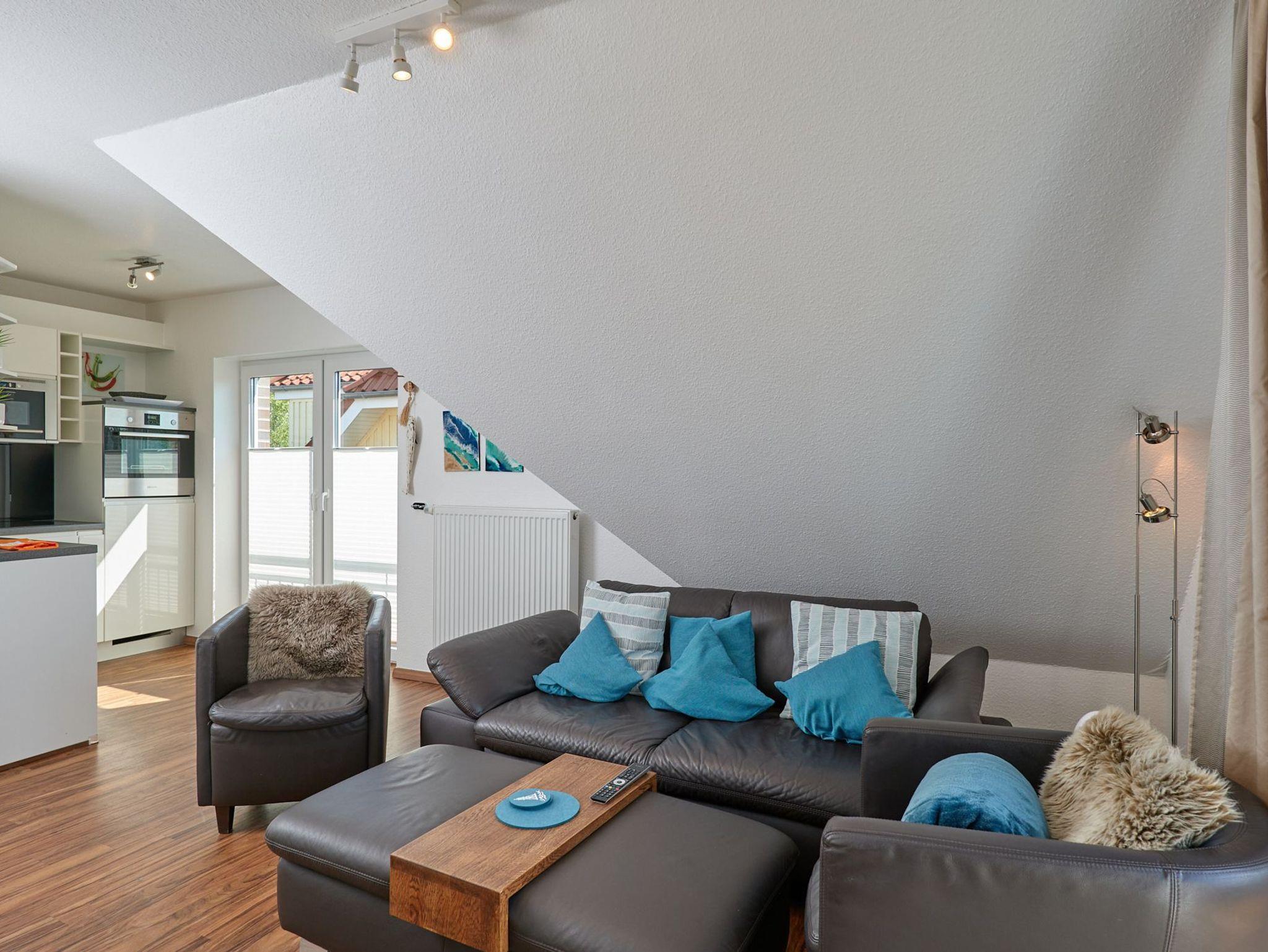 Sehr schöne, helle 3-Raum-Maisonette-Wohnung (57m²) bis 4 Pers., 1.Etage, 1 Schlafzimmer mit Doppelb., 1 Schlafzimmer im Dachgeschoss mit Einzelbetten, 2xDu/Wc, Wohnzimmer mit vollständiger Küchenzeile (Back., Mikrow., Senseo, Geschirrspüler) 3xSAT-TV,DVD-Player, Stereo, W-LAN kostenlos, großer Balkon (süd), Rollläden, Pkw-Stellplatz #5, keine Haustiere erlaubt, Nichtraucher.