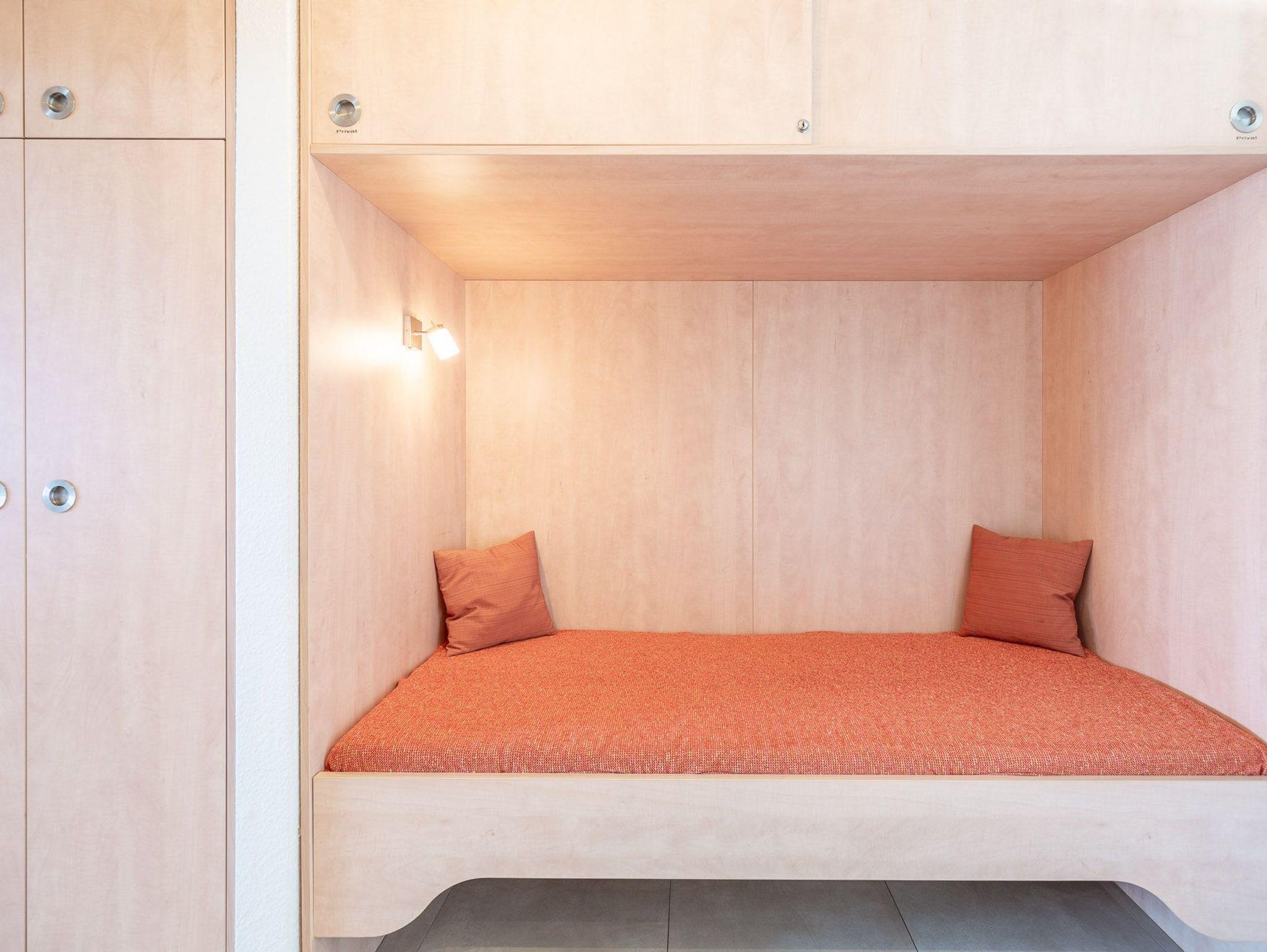 In der 5. Etage gelegen bietet unsere 35 m² große Ferienwohnung einen traumhaften Meerblick für bis zu 2 Personen. Alle Materialien sind sorgfältig aufeinander abgestimmt. Weiße Hochglanzfronten und warme Holztöne sorgen für ein einladendes Ambiente. Die gesamte Ferienwohnung wurde hochwertig von einer Möbeltischlerei ausgestattet.