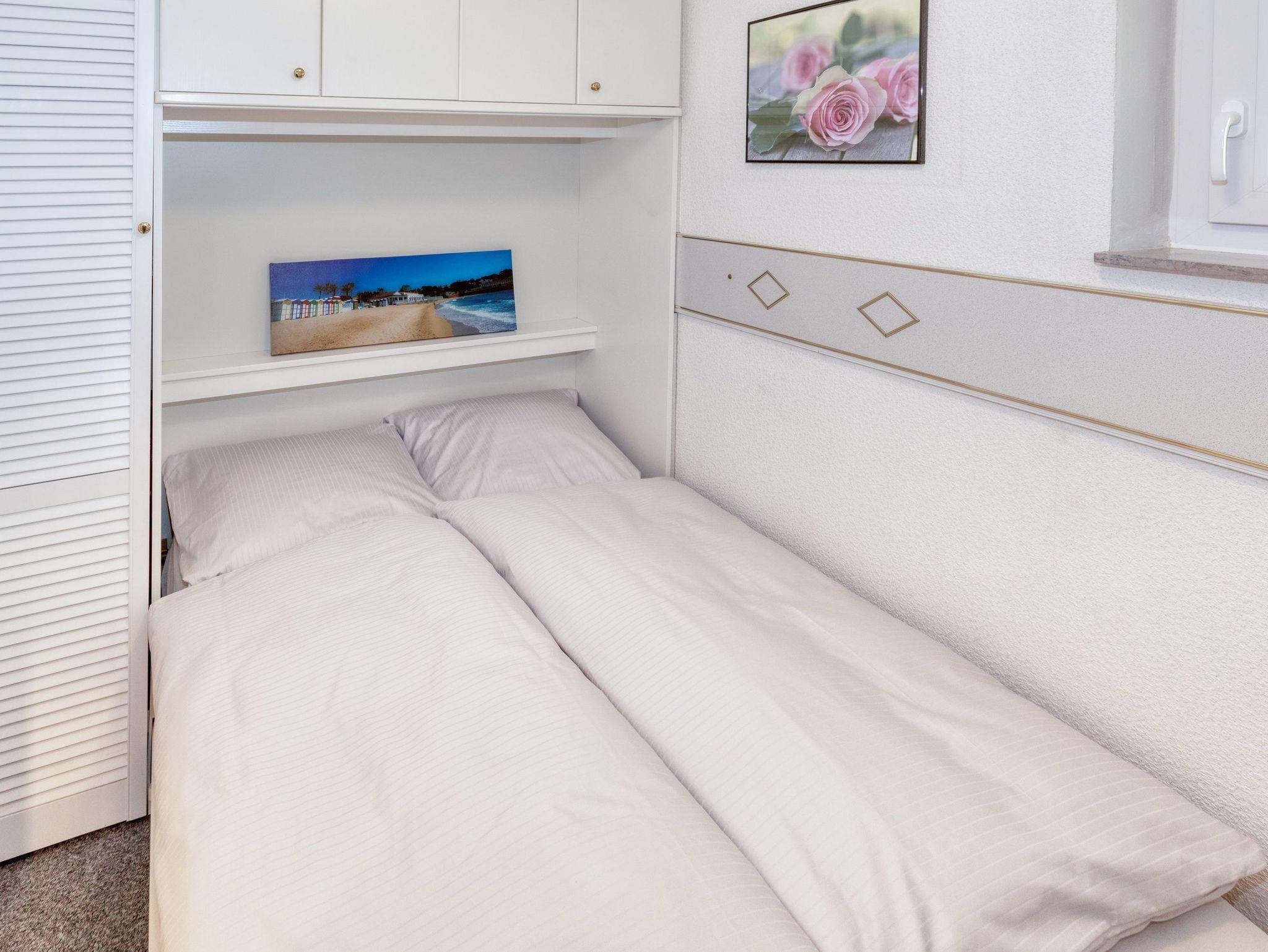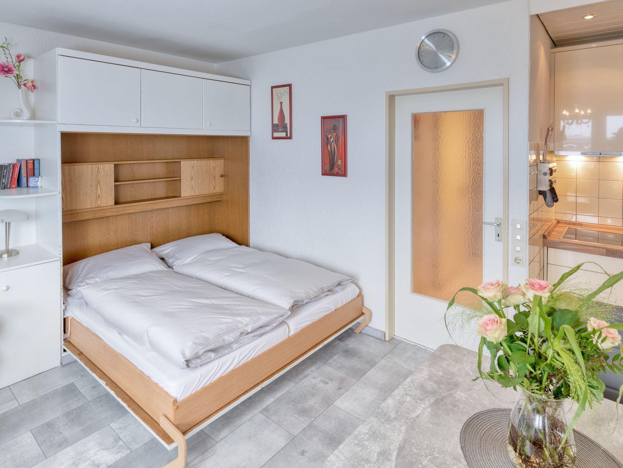 Das Apartment besteht aus einem Schlafzimmer mit Schrankbett, einem Wohnbereich mit Schrankbett, eine voll ausgestattete integrierter Küche, einem Badezimmer mit Dusche sowie WC.