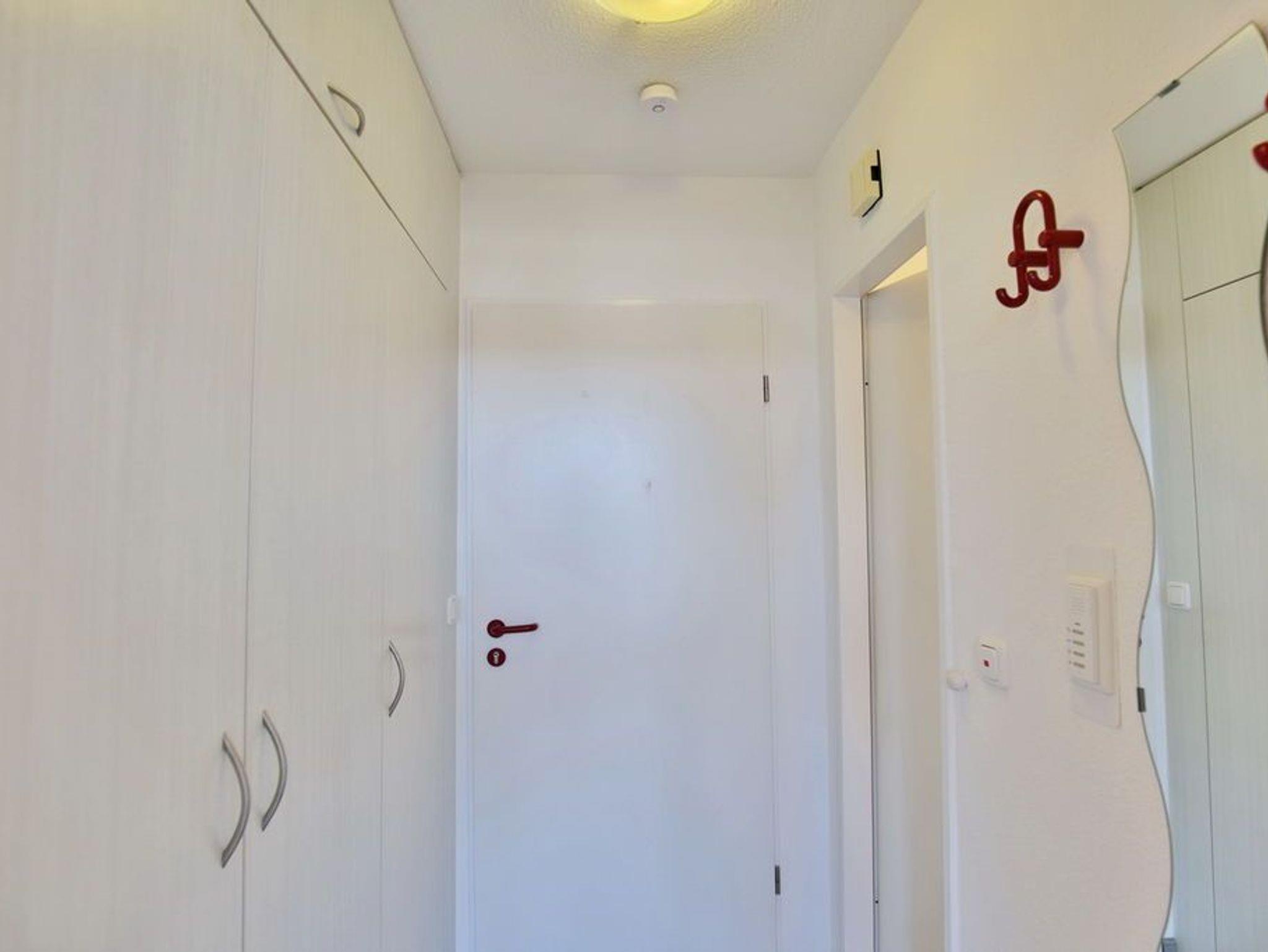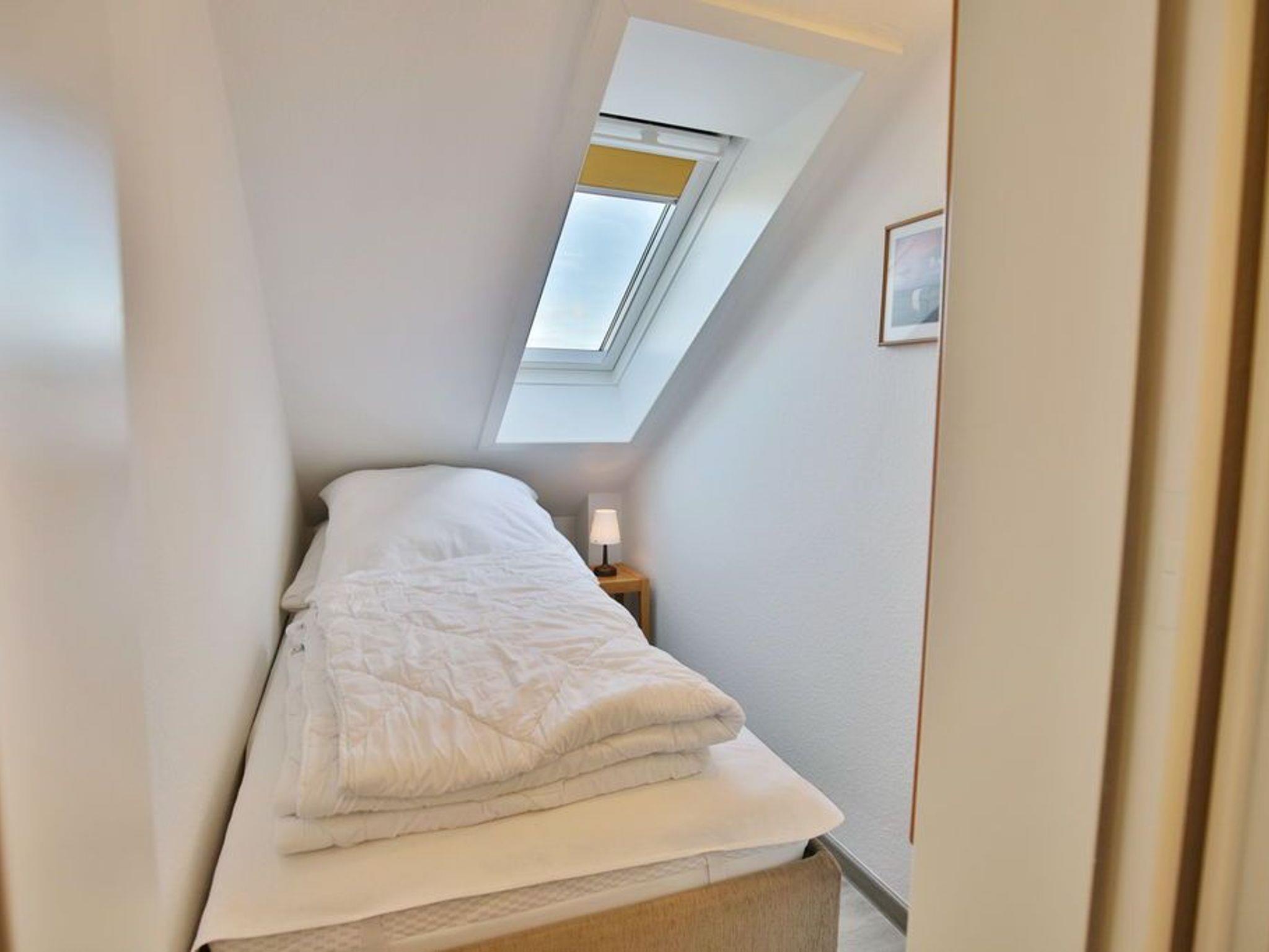1-Raum-Appartement auf ca. 28m², 4. Etage, Nichtraucher, modern eingerichtet und komplett ausgestattet bis 2 Pers.,1 kombiniertes Wohn/Schlafzimmer mit Schlafsofa (Liegefläche 1,60m x 2,00m), SAT-TV, Stereoanlage mit Bluetooth, kostenloses W-Lan, neue Küchenzeile mit Mikrowelle, Senseo-Kaffeepadmaschine, Eierkocher;[nbsp] Dusche/WC, Flur, schöne Dachterrasse (ost) mit Sonnenschirm u. Seesicht, keine Haustiere, nummerierter Pkw-Stellplatz #411 auf dem Außengelände.