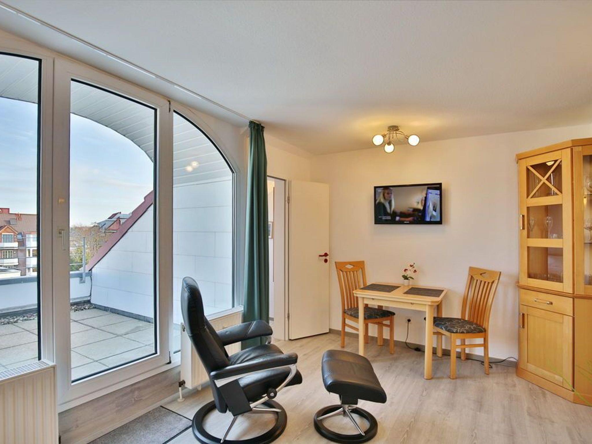 Modernes 1-Zimmer-Appartement in Cuxhaven mit Meerblick, Dachterrasse und WLAN, ideal für bis zu 2 Personen.
