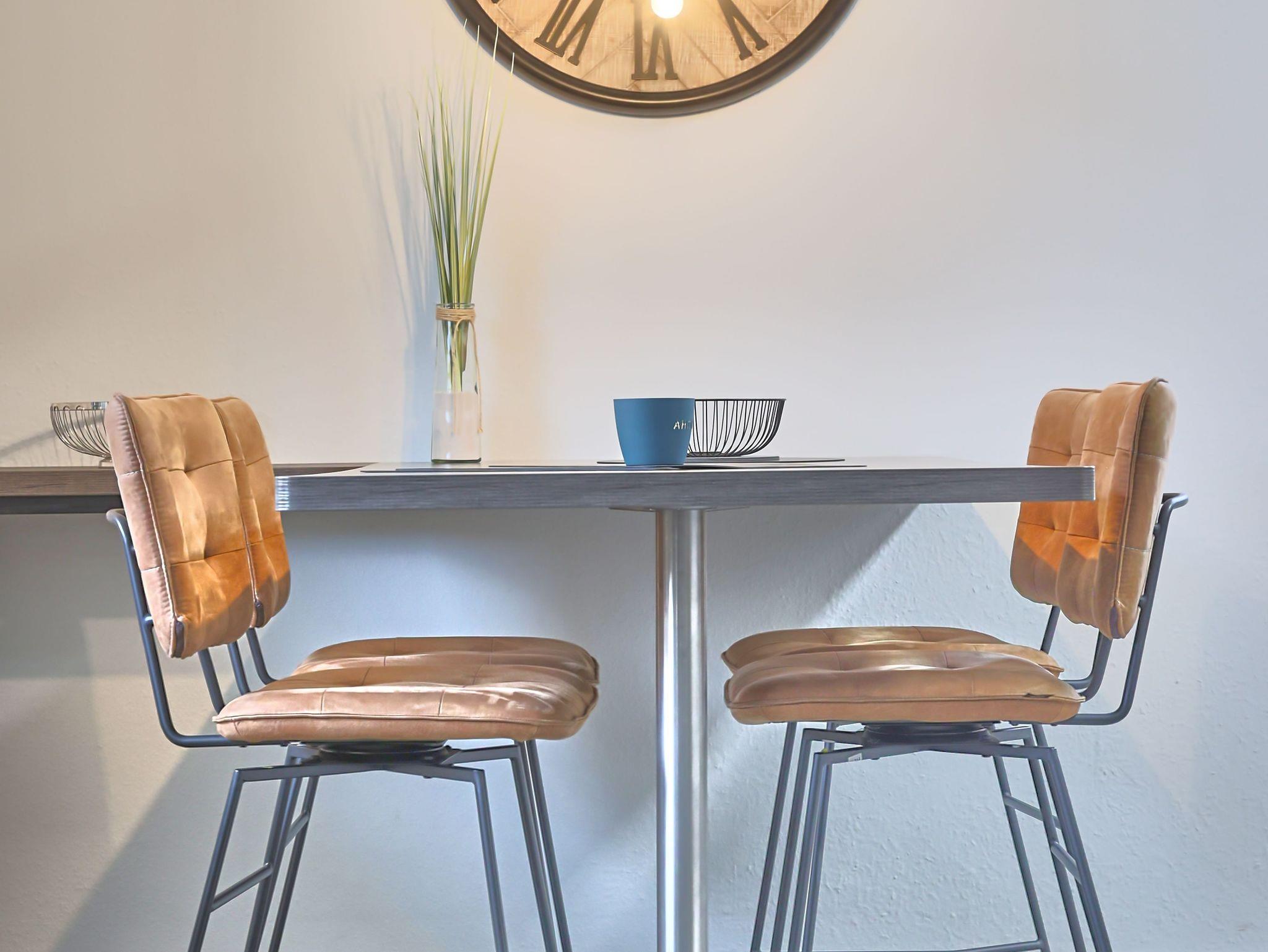 Der Wohnbereich, gestaltet mit einer stylischen Ledercouch und einem wandhängenden Flat-TV, öffnet sich zur westlich gelegenen Terrasse. Einladend für entspannte Momente und abendliches Relaxen. Ein großer Esstisch und die komplett ausgestattete Einbauküche mit Geschirrspüler lassen keine Wünsche offen. Der Abstellraum mit Waschmaschine komplettiert das Rundum-sorglos-Paket.