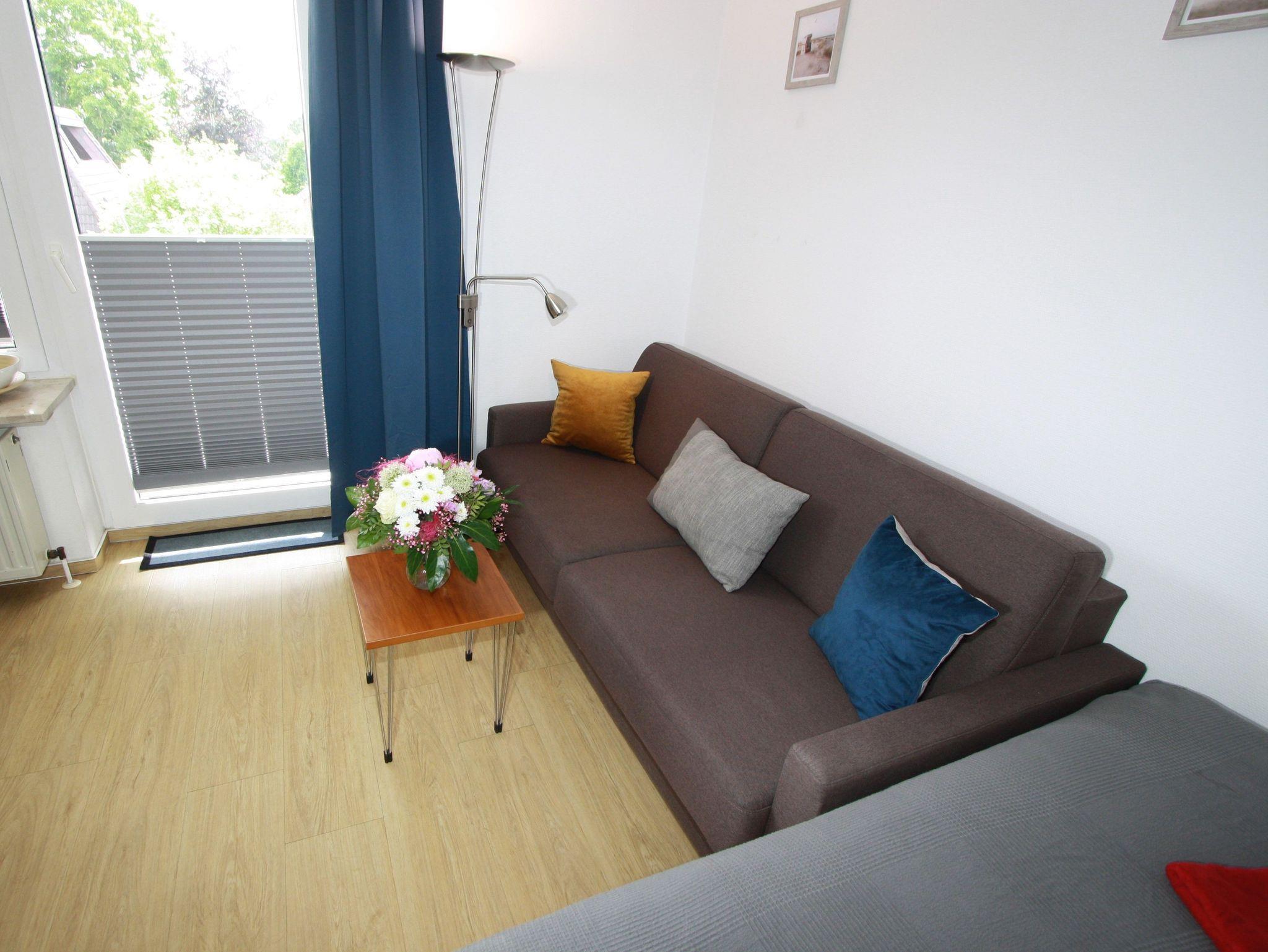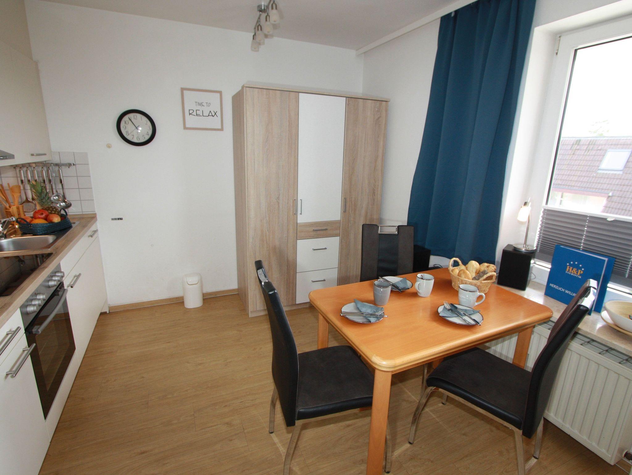 Sie wohnen in einem 1-Zimmer-Appartement für bis zu 2 Personen auf ca. 30 m² Wohnfläche. Die Ferienwohnung verfügt über einen Wohn-/Schlafraum mit hochwertiger Schlafcouch, LCD-TV, Mini-Hifi-Anlage, Internetzugang, voll ausgestattetem Küchenbereich mit Essplatz, Dusche/WC, ostseitigem Balkon (Morgensonne!) und Tiefgaragenplatz.