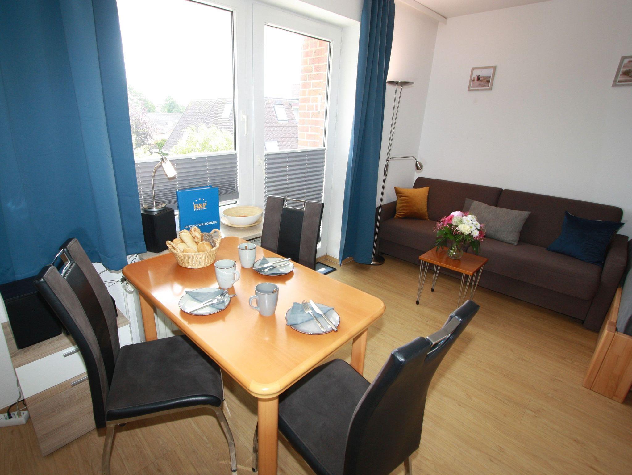 Moderne Ferienwohnung in der Residenz Kormoran nahe dem Strand in Cuxhaven-Döse mit Balkon und Tiefgarage.