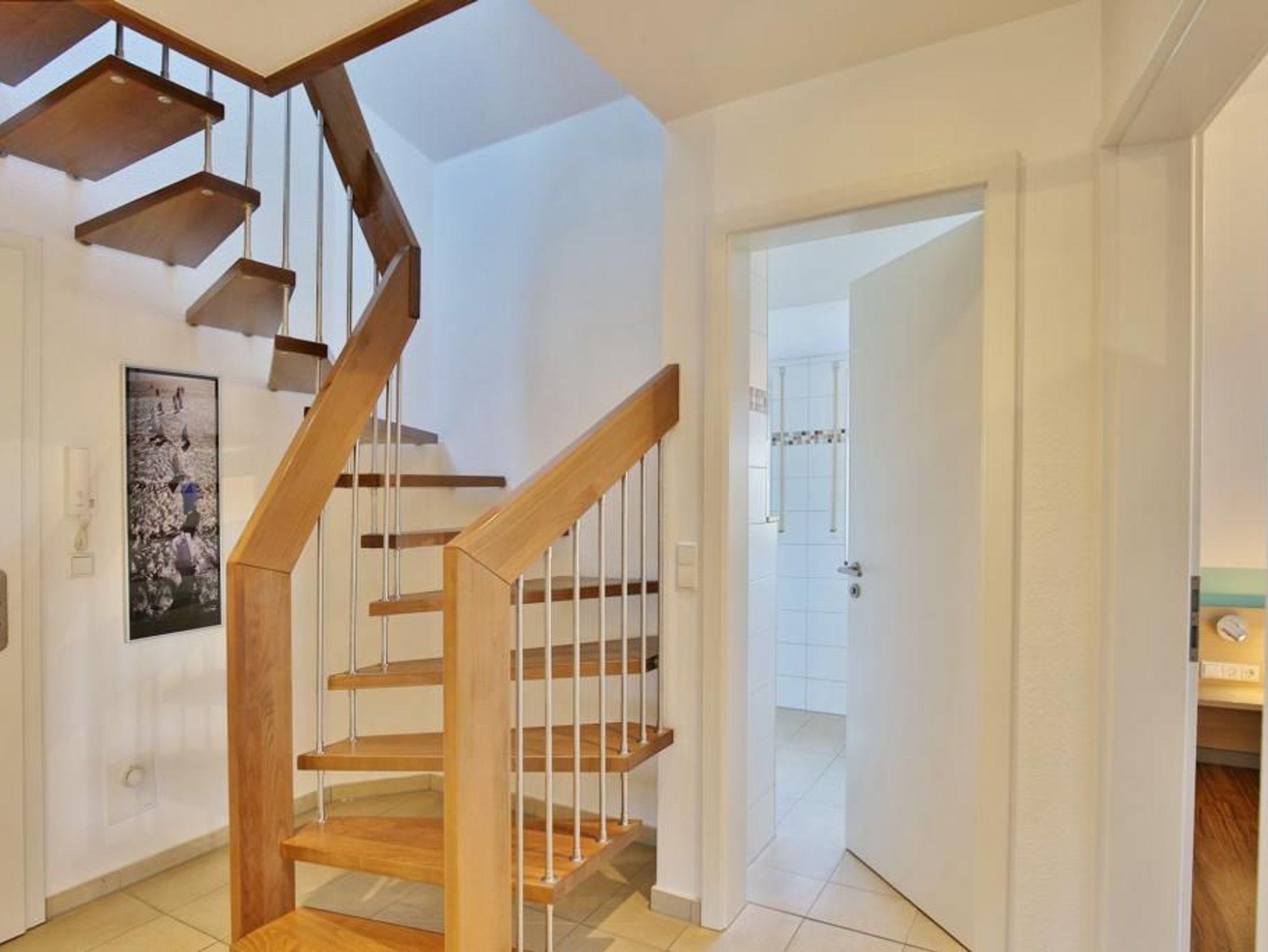 Sehr schöne, helle 3-Raum-Maisonette-Wohnung, 1.Etage, 1 Schlafzimmer mit Doppelb., 1 Schlafzimmer im Dachgeschoss mit Doppelbett und separaten WC, Wohnzimmer mit Küchenzeile (Backofen, Mikrowelle, Geschirrspüler) 2x SAT-TV, CD, DVD, kostenloses W-LAN Internet, Du/Wc, großer Balkon (süd) mit Balkonmöbeln und Sonnenschirm (saisonabhängig), Rollladen, reservierter Pkw-Stellplatz vor dem Haus, keine Haustiere erlaubt, Nichtraucher.