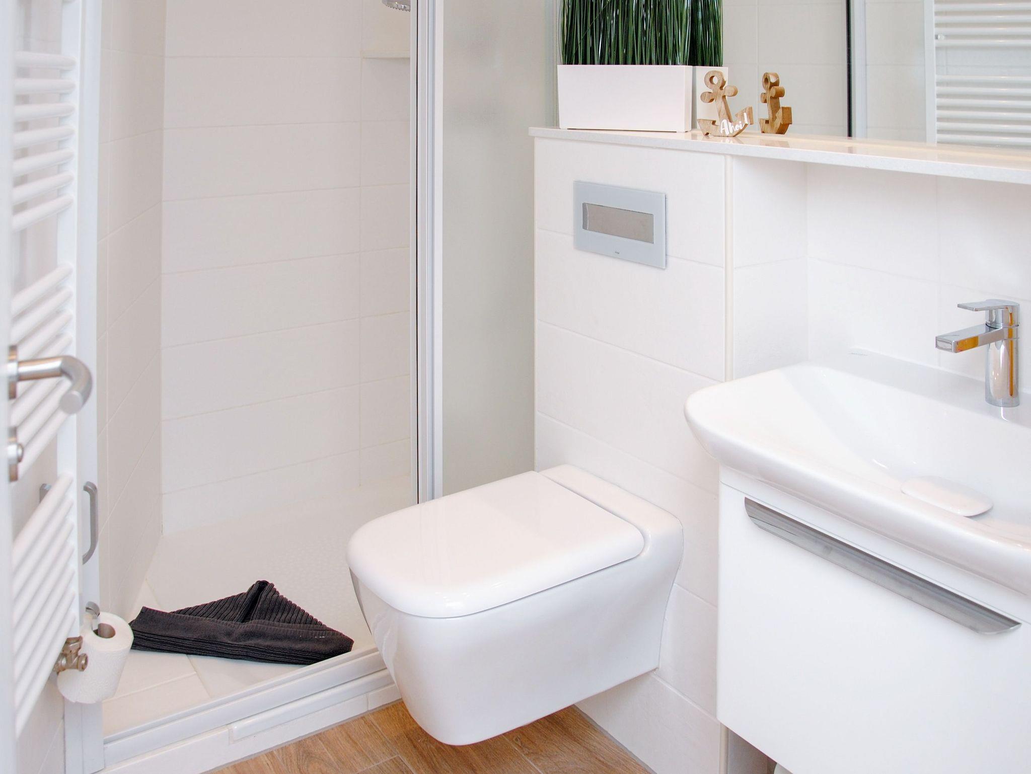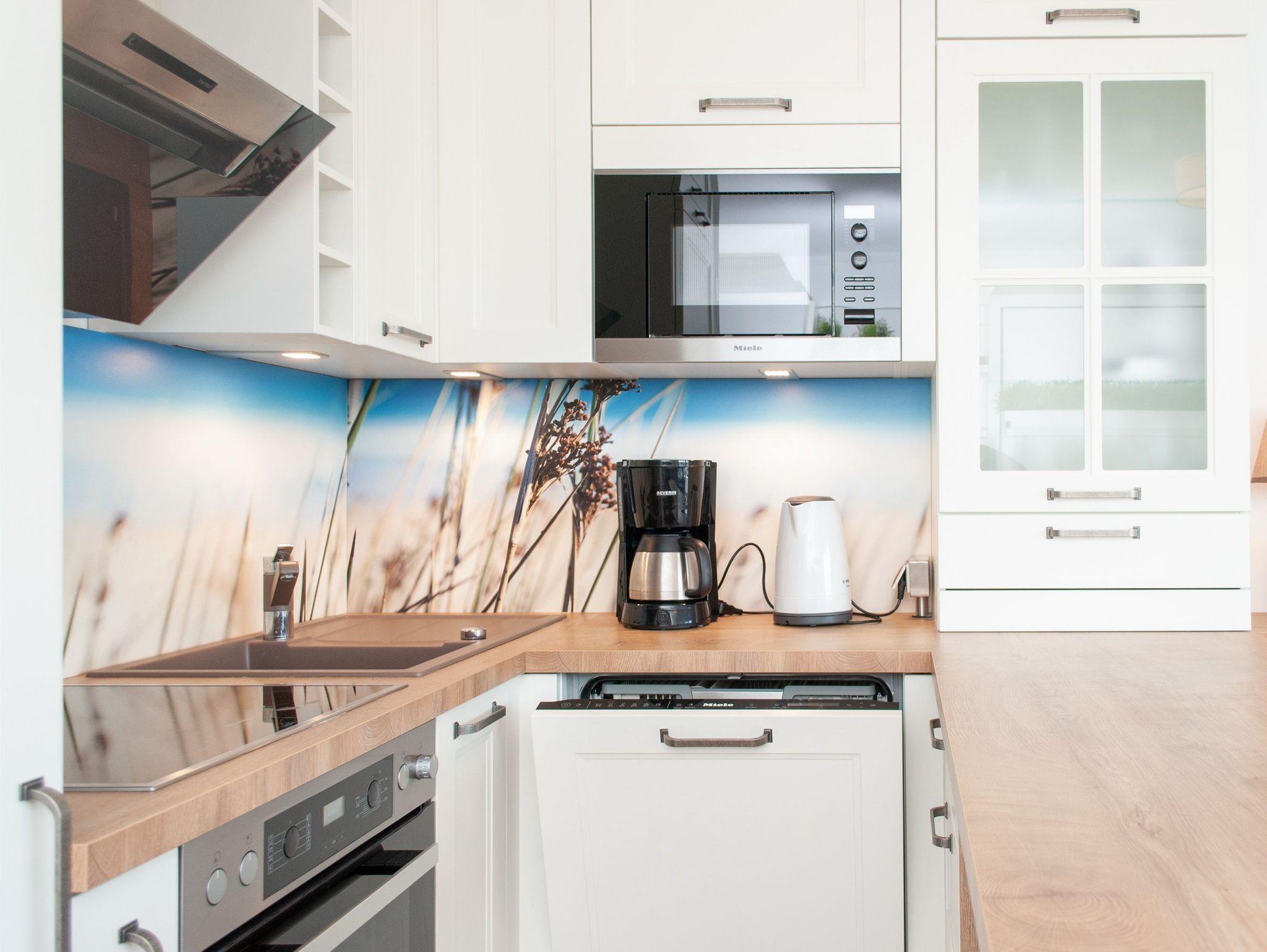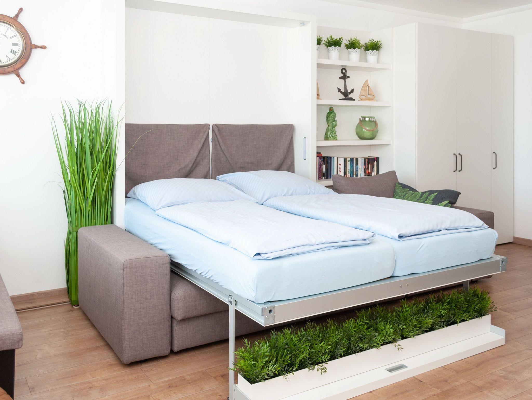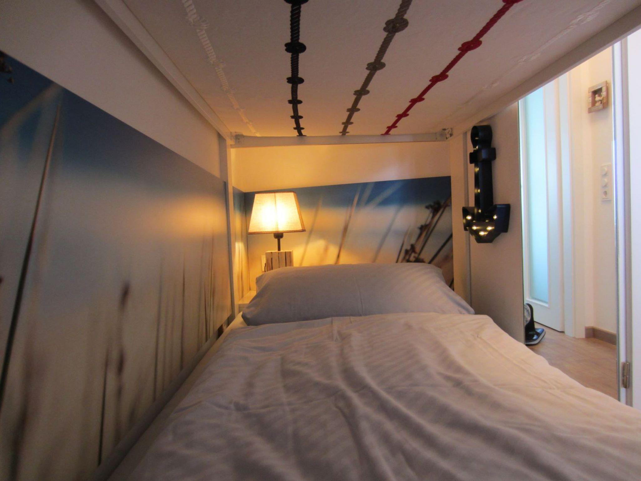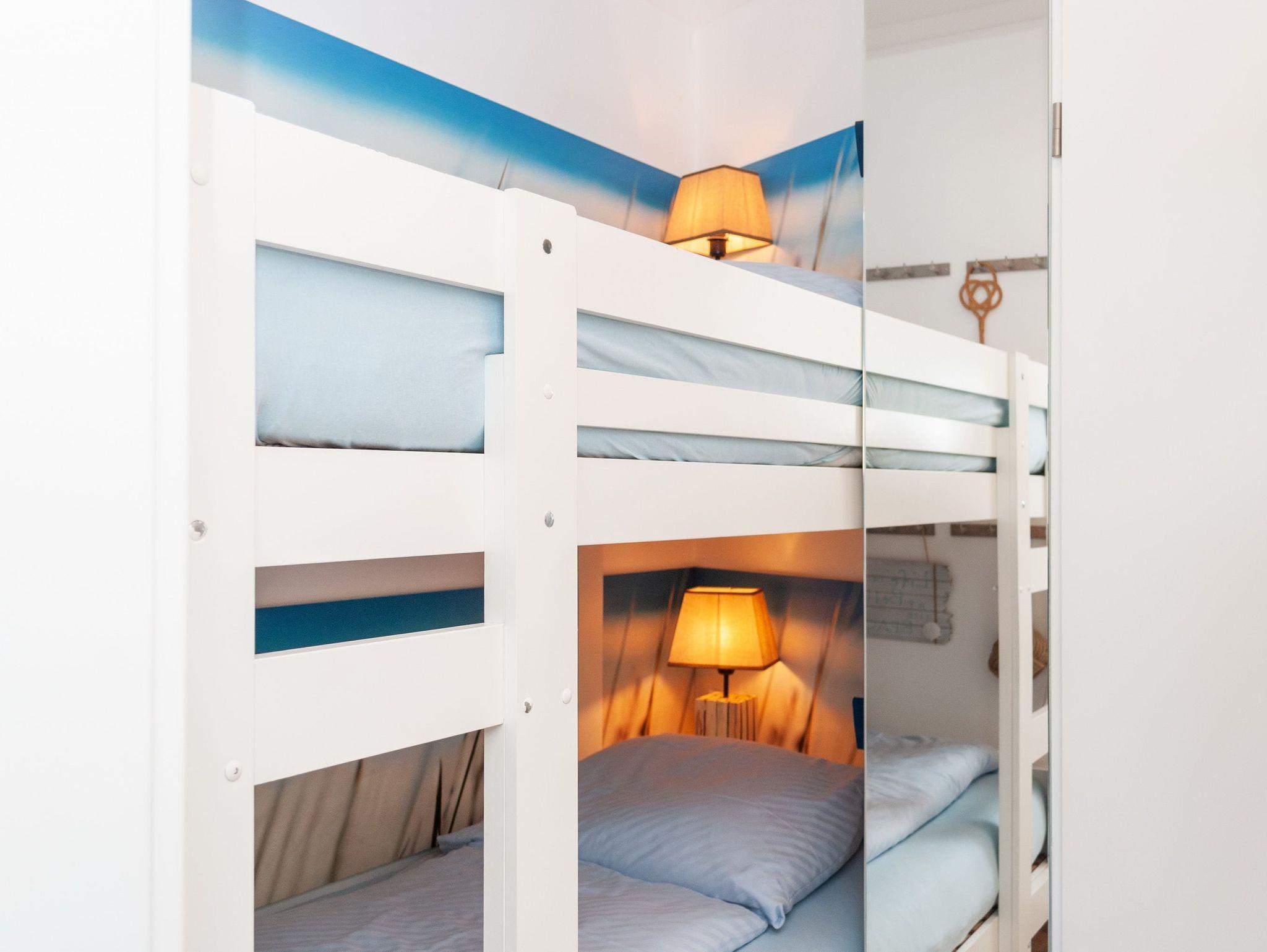 Das Apartment besteht aus Wohnbereich mit Schrankbett für 2 Personen, aus einem zusätzlichem Etagenbett in einer Nische im Flur und einem Badezimmer mit Dusche sowie WC. Die Ferienwohnung beinhaltet eine voll ausgestattete offene Küche.