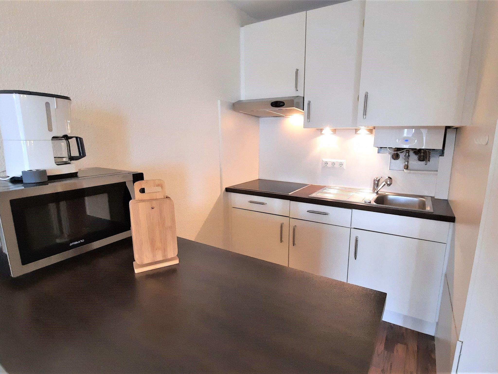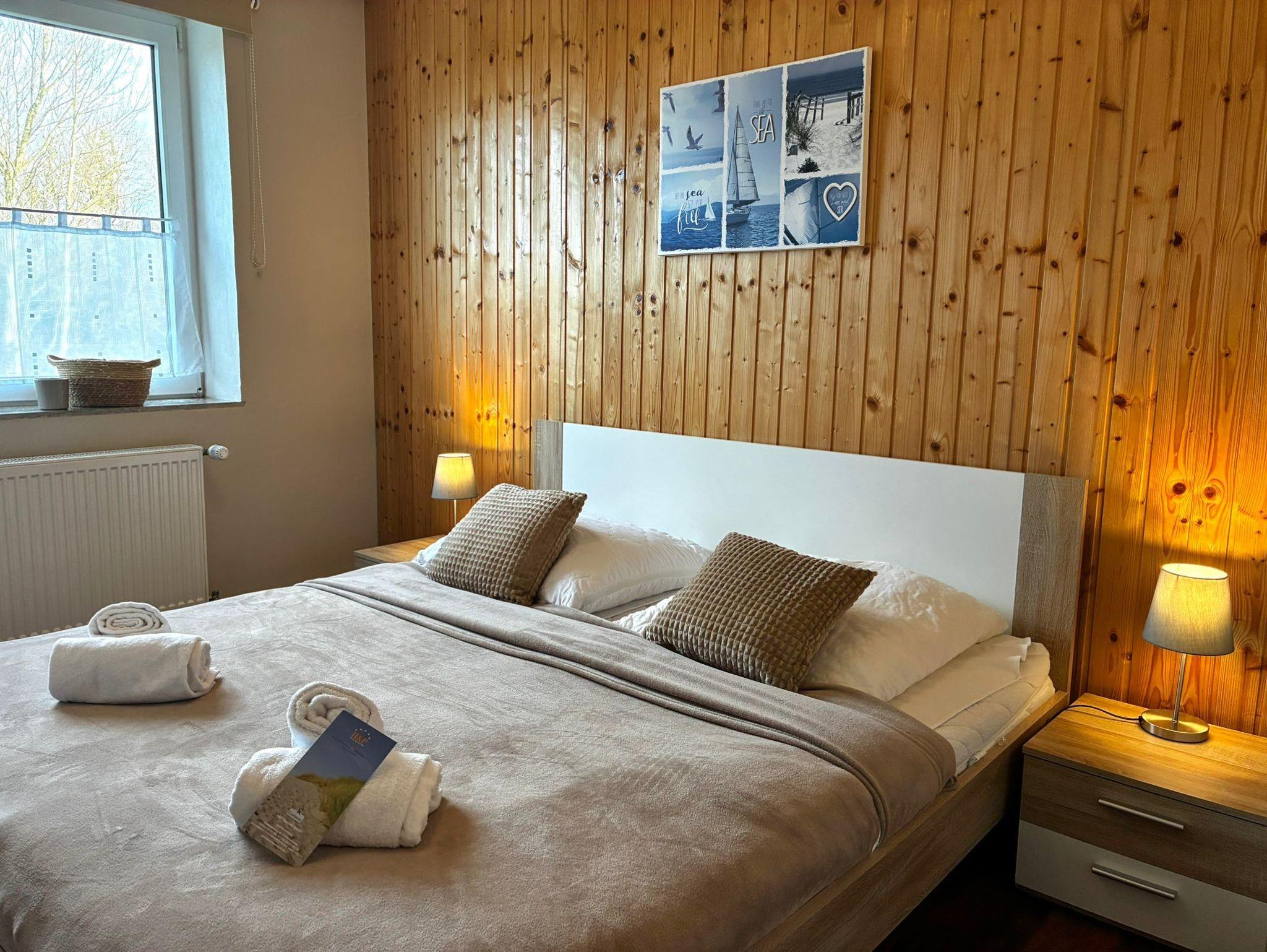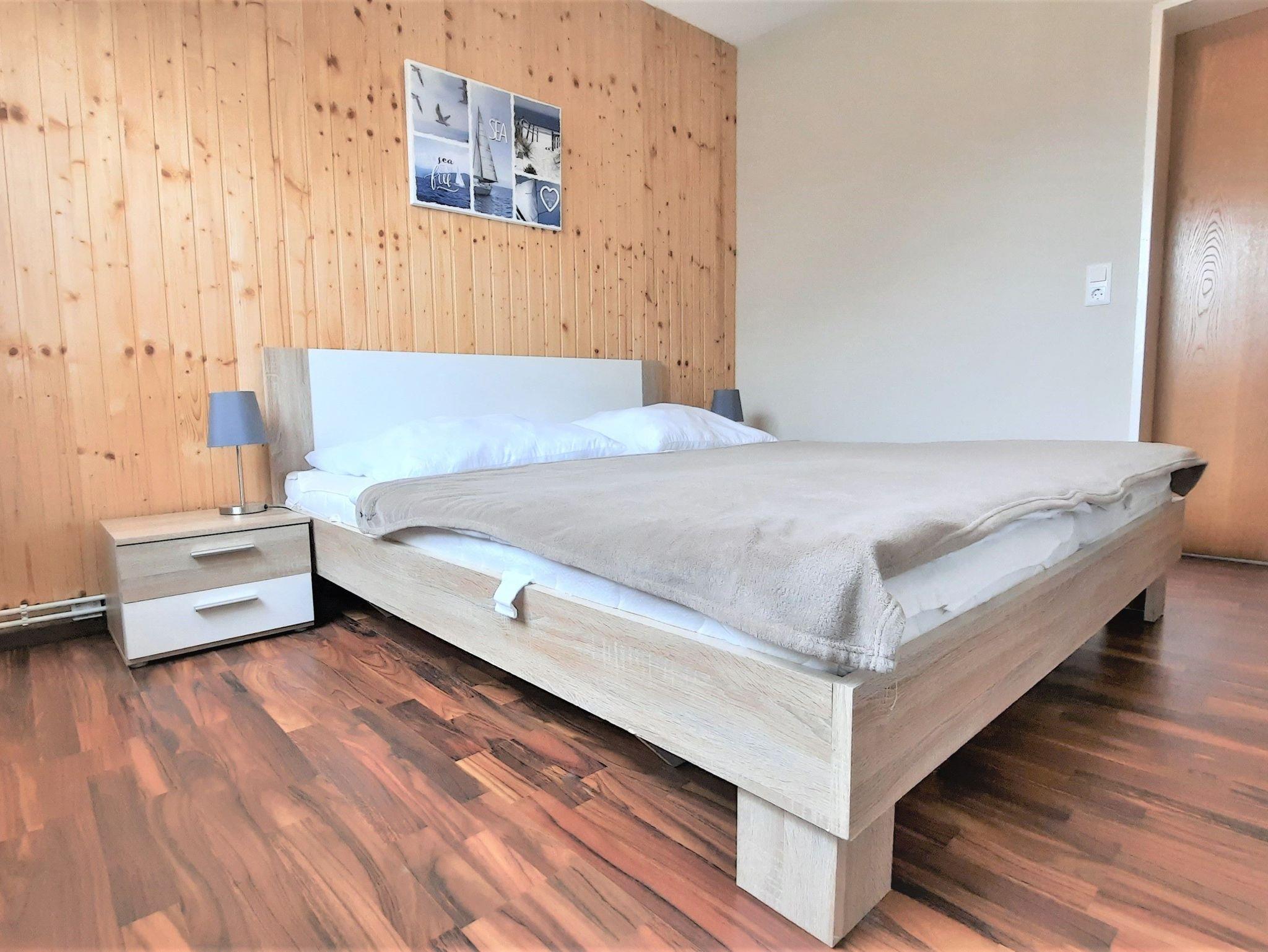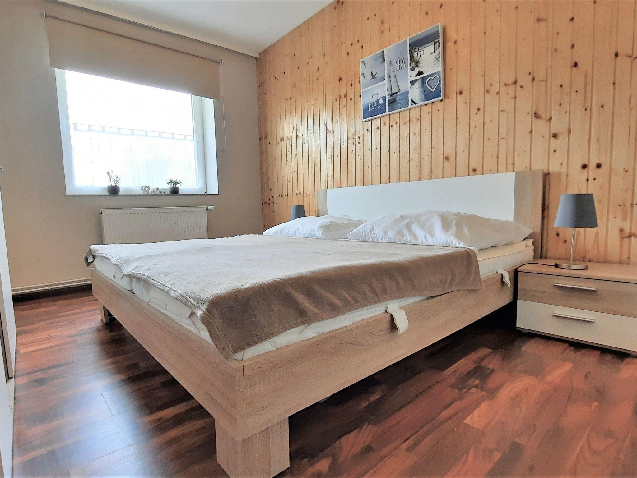 Sie wohnen in einem 3-Zimmer-Appartement im Erdgeschoss auf ca. 60 m² Wohnfläche. Ein Schlafraum mit Doppelbett, ein Schlafraum mit Etagenbett, Wohnraum mit bequemer Couchgarnitur, separater Essplatz, moderne und voll ausgestattete Einbauküche (ohne Geschirrspüler, mit Mikrowelle mit Backfuntkion), Dusche/WC, eingefasste Terrasse (Balkon), SAT-Flachbild-TV, WLAN und ein PKW-Stellplatz 005 direkt der erste Platz an der Stirnseite des Hauses.