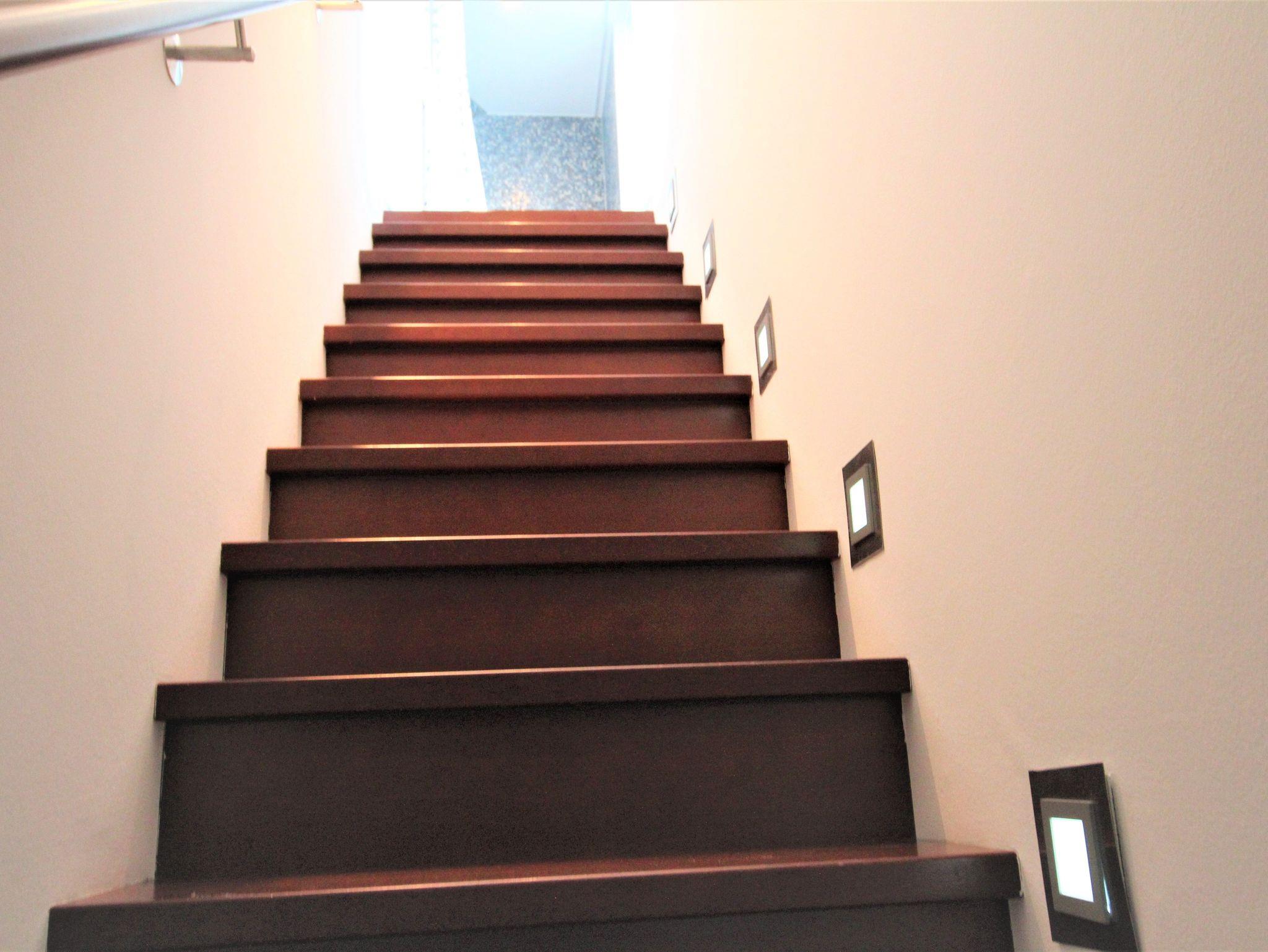 Alternativ können Sie nach einem schönen Urlaubstag in der gemütlichen Badewanne relaxen. Das moderne Bad verfügt zusätzlich über eine belebende Rainshower. Weiterhin gibt es ein separates Gäste-WC. Alle Bäder mit Fussbodenheizung.