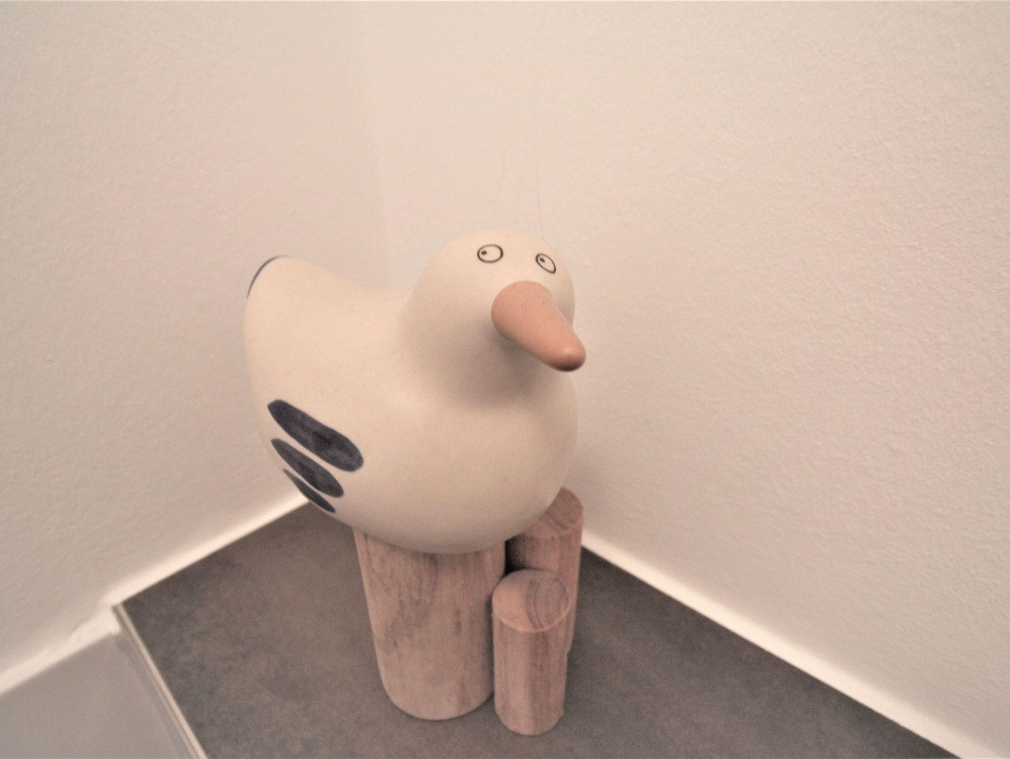 Die Wohnung verfügt über zwei separate Schlafräume auf der Eingangsetage mit jeweils zwei Betten (ein Doppelbett sowie zwei Einzelbetten), eine Schlafcouch im Wohnzimmer bietet zwei weitere Schlafgelegenheiten (Empfehlung: Belegung der Wohnung mit bis zu 4 Personen).