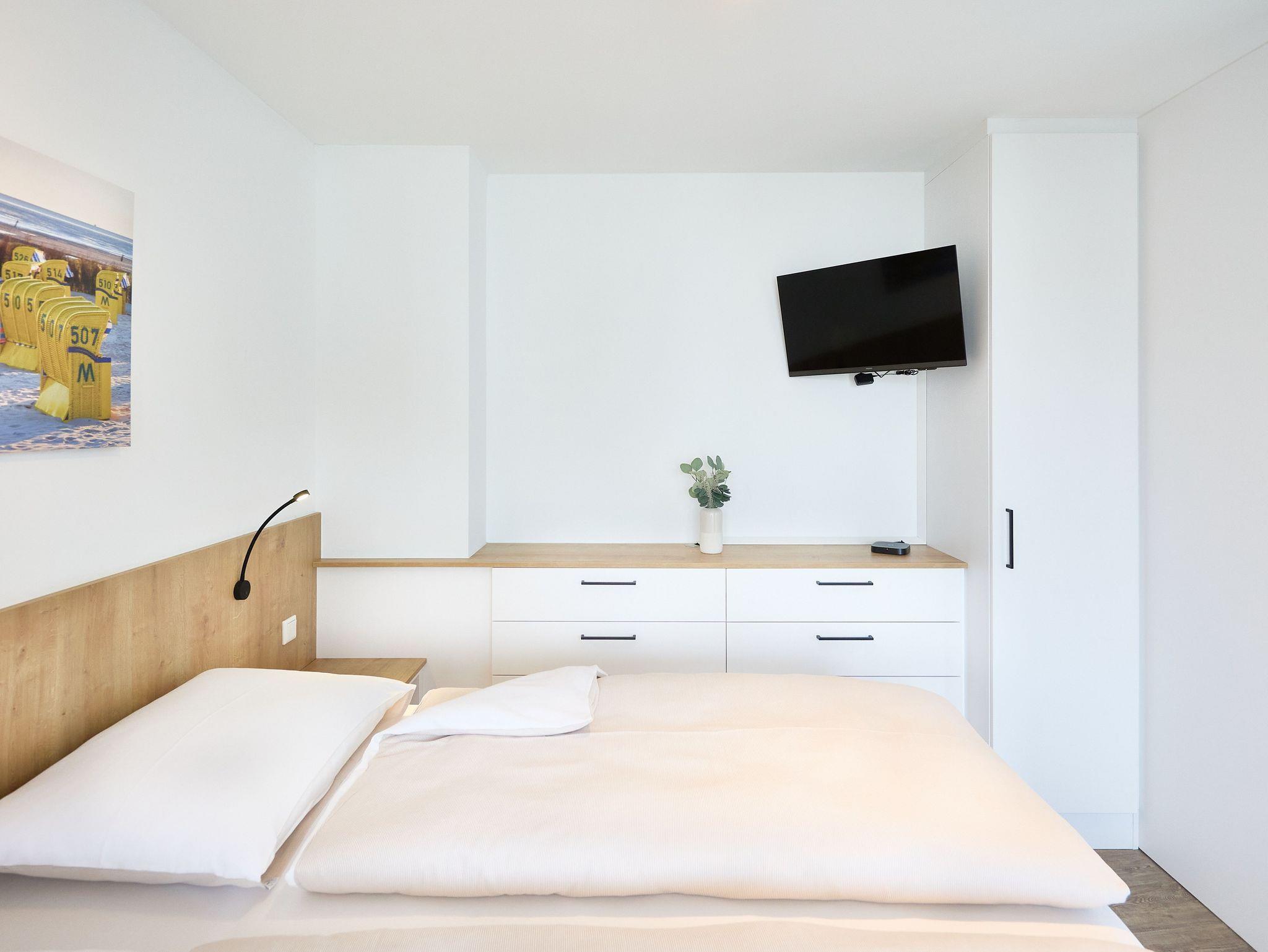 Die ca. 62 m² große Wohnung bietet komfortabel Platz für bis zu 3 Personen und überzeugt durch zwei sonnige Balkone mit Ausrichtung nach Süden und Westen jeweils mit seitlichem Meerblick. Genießen Sie morgens ein Frühstück in der Sonne und lassen Sie den Tag am Abend auf dem Westbalkon entspannt ausklingen.