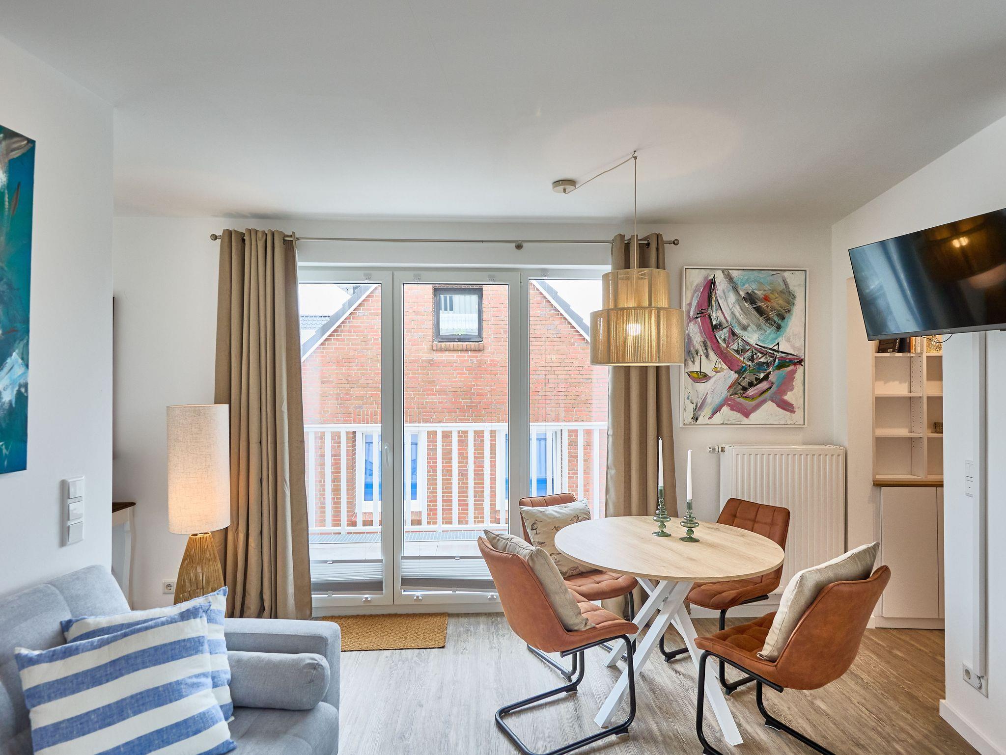 Die ca. 62 m² große Wohnung bietet komfortabel Platz für bis zu 3 Personen und überzeugt durch zwei sonnige Balkone mit Ausrichtung nach Süden und Westen ? jeweils mit seitlichem Meerblick. Genießen Sie morgens ein Frühstück in der Sonne und lassen Sie den Tag am Abend auf dem Westbalkon entspannt ausklingen.
