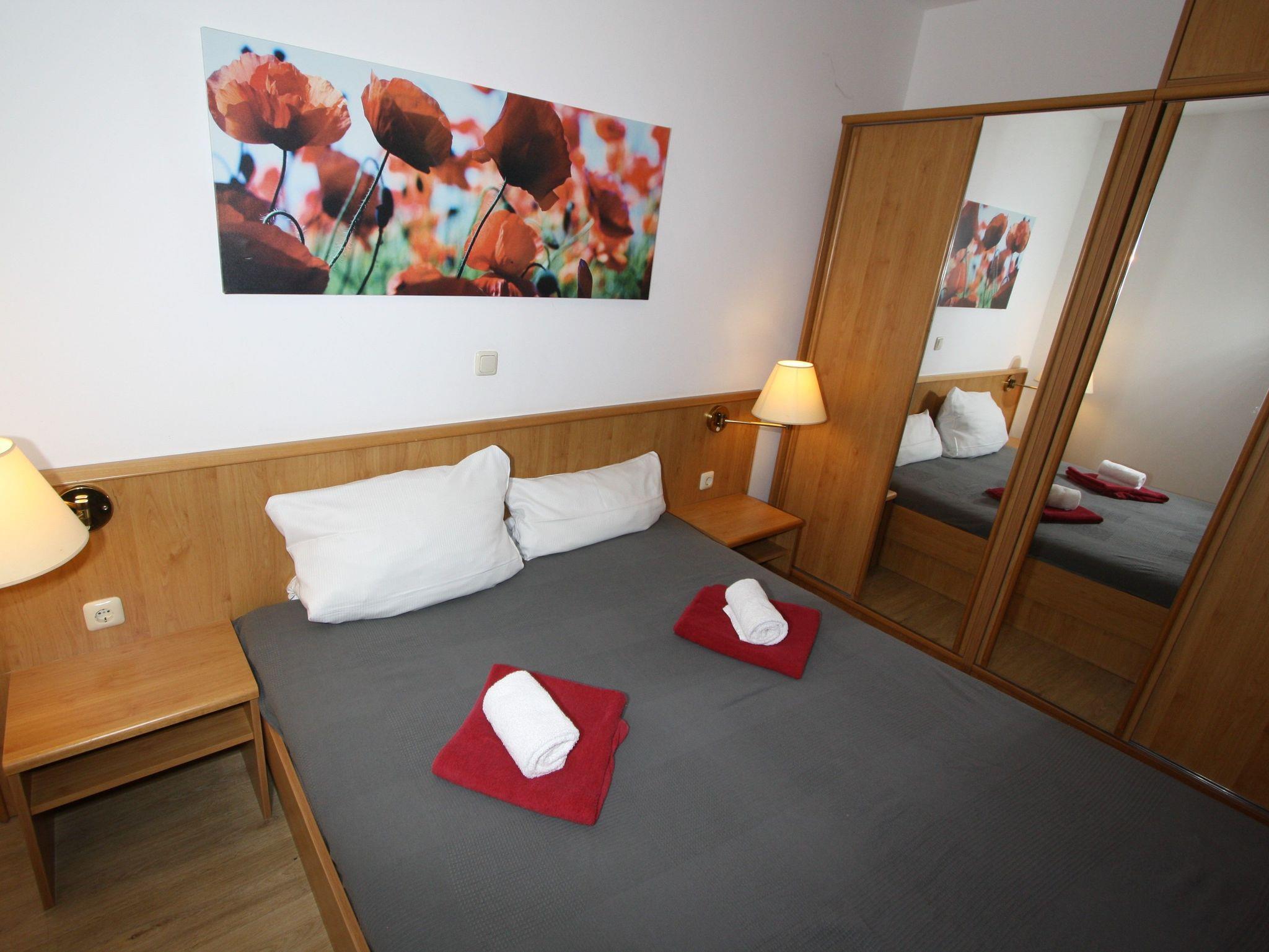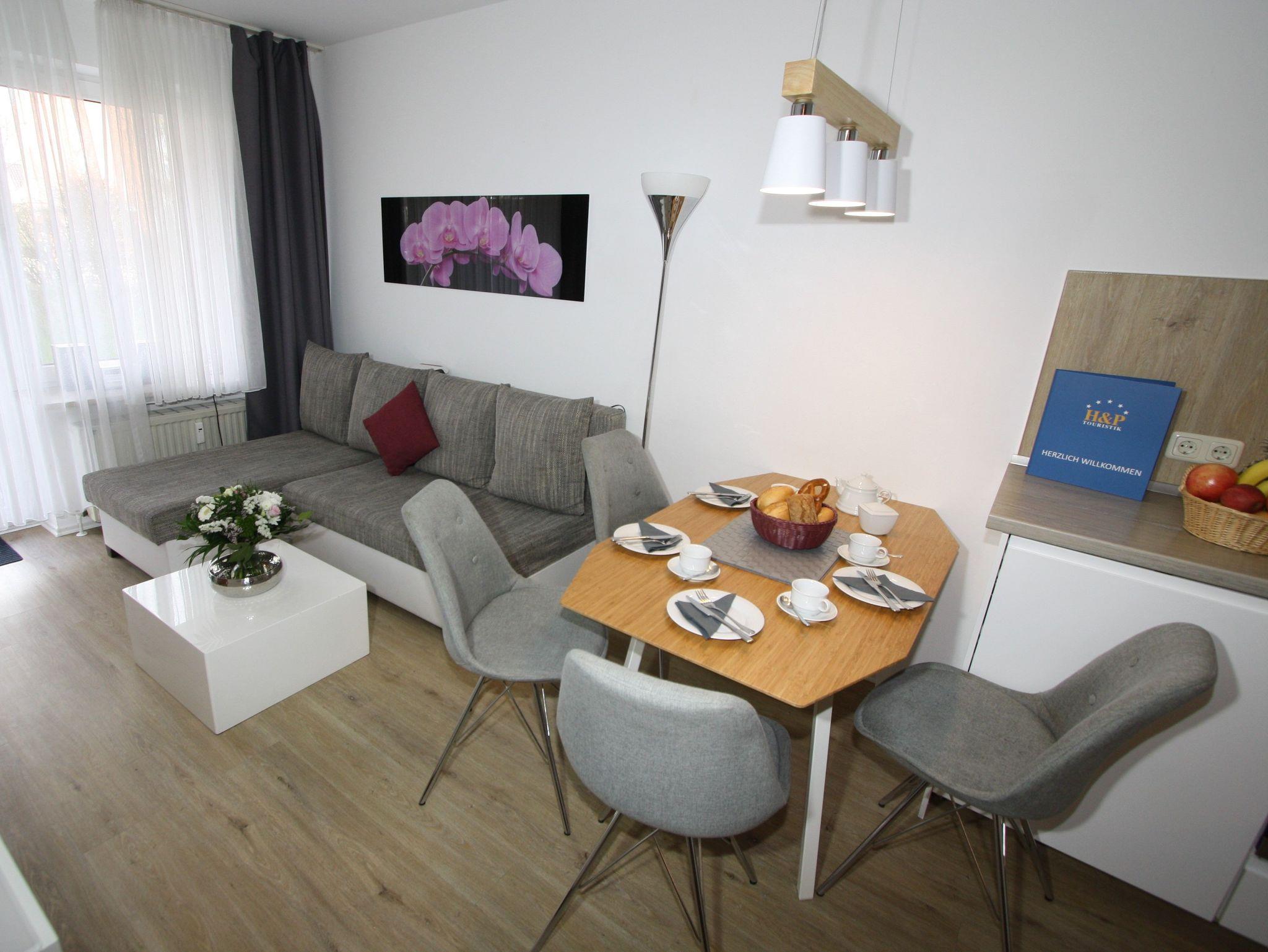 2-Zimmer-Appartement für bis zu 4 Personen auf ca.42 m². Schlafzimmer mit Doppelbett oder zwei Einzelbetten, Wohn-Schlafraum mit Doppelbettcouch, TV, separatem Essplatz, voll ausgestattetem Küchenbereich, Balkon oder Terrasse, Bad mit Dusche/WC. teilweise WLAN und PKW-Stellplatz vorhanden.